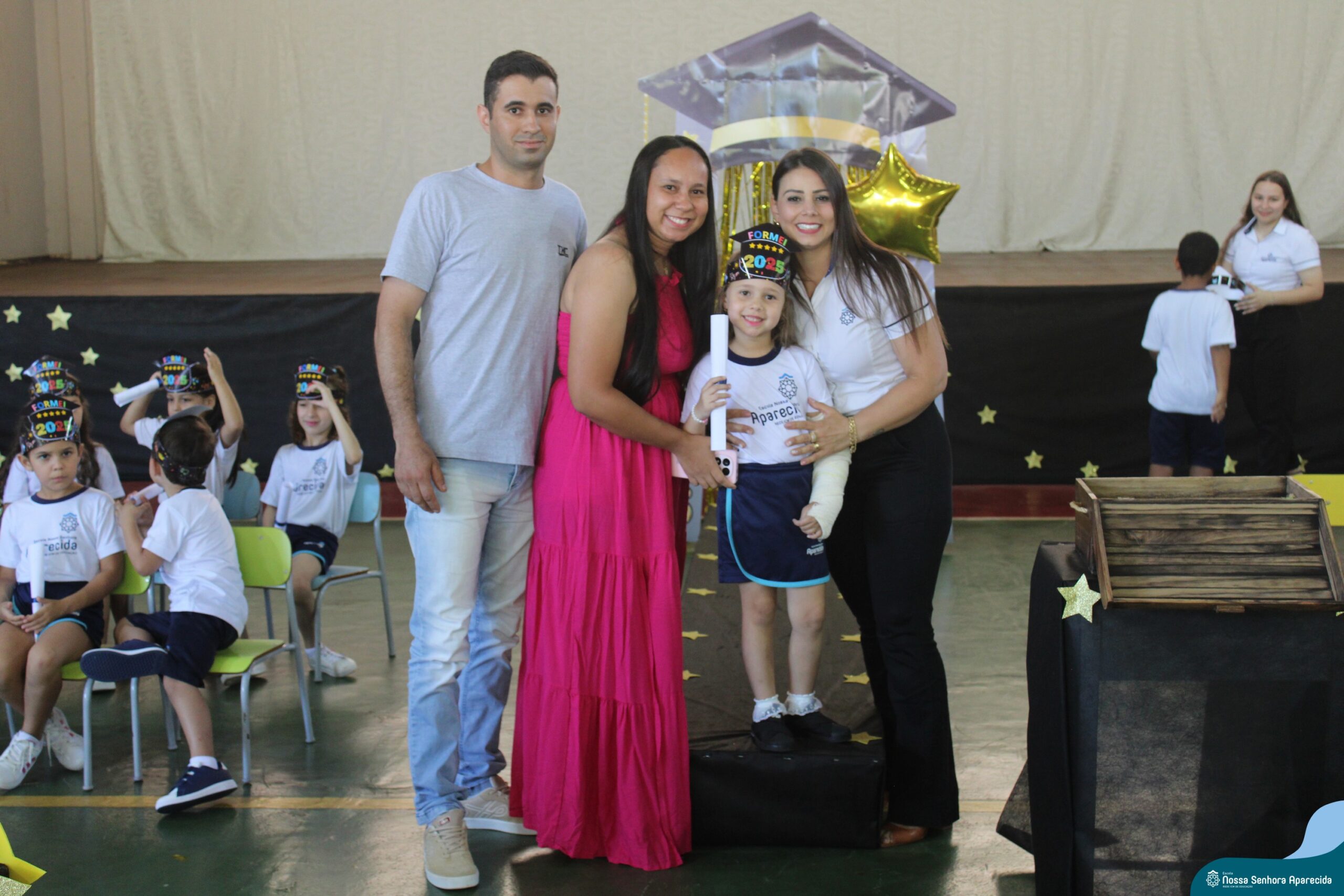 Na tarde do dia 12 de dezembro, aconteceu, na quadra da Escola Nossa Senhora Aparecida, mais uma solenidade de formatura dos estudantes do Jardim III. Em clima festivo, participaram do evento a Direção, professores, alunos e seus familiares. A cerimônia foi organizada em dois momentos, para atender as quatro turmas e seus convidados:
