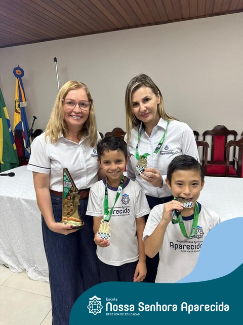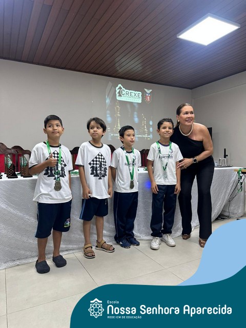 Em seu primeiro ano de participação no CREXE- Circuito Regional de Xadrez do Núcleo Regional de Umuarama, a Escola Nossa Senhora Aparecida se destaca e é premiada em três categorias, pela sua participação geral, no ano de 2025. A escola ficou em primeiro lugar geral, na categoria “masculino” e teve também dois alunos premiados: 1° lugar: Enzo Gabriel Faganello de Oliva e 5° lugar: Yuri Sibim Kussuda.