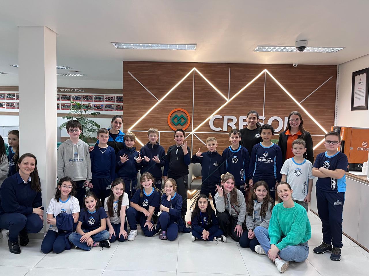 A visita à agência foi a primeira ação do projeto e proporcionou aos alunos momentos de aprendizado e troca de experiências. Eles foram recebidos pela equipe da Cresol, conheceram a estrutura, aprenderam sobre o funcionamento da agência e descobriram a importância da cooperação e da organização financeira desde cedo.