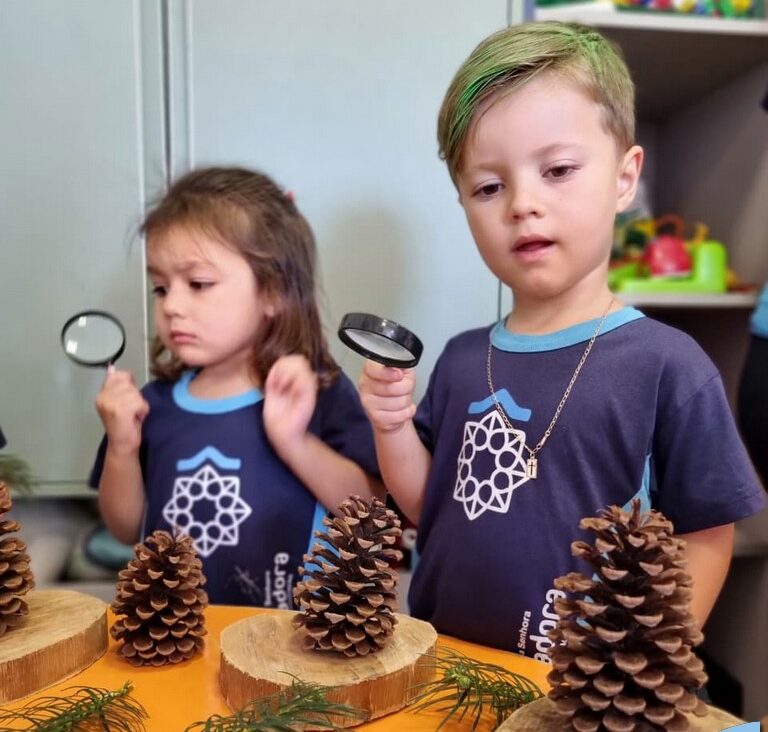 As crianças exploraram a pinha e o galho do pinheiro usando lupas 🔎, percebendo detalhes, texturas e curiosidades desses elementos da natureza. 🍂🌿 E para deixar tudo ainda mais emocionante, utilizamos nosso microscópio digital, aquele com telinha que mostra tudo bem de pertinho! As crianças ficaram encantadas ao observar um pedacinho da pinha e do […]