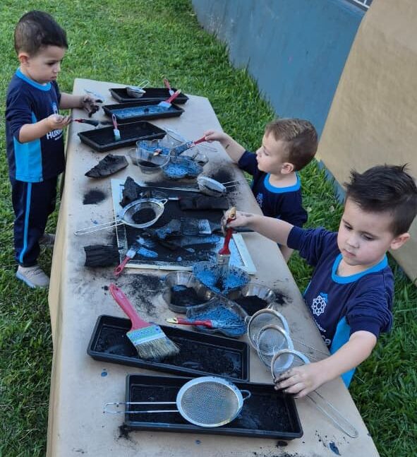 As crianças vivenciaram uma proposta de exploração com carvão, ampliando suas possibilidades sensoriais e investigativas. Por meio do toque, da observação e do uso de diferentes ferramentas, puderam perceber texturas, cores e transformações do material, construindo hipóteses e descobertas a partir da própria experiência. Momentos como esse favorecem a curiosidade, a autonomia e o desenvolvimento […]