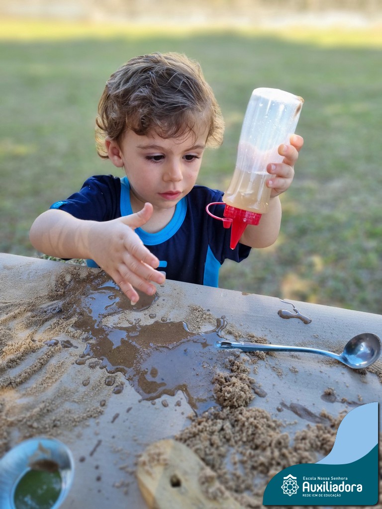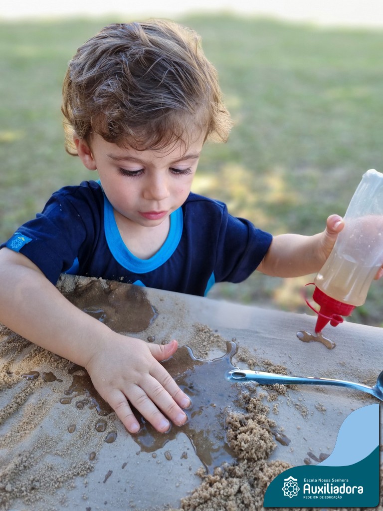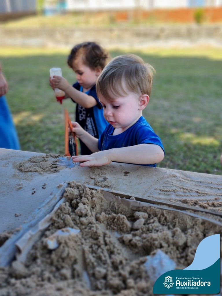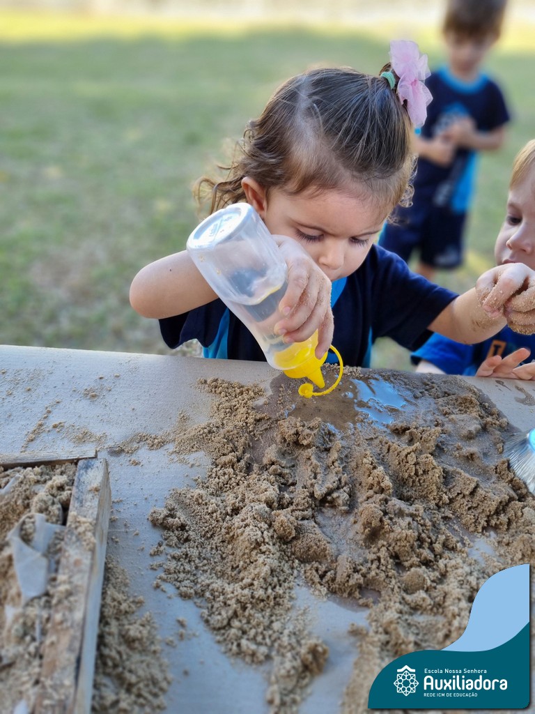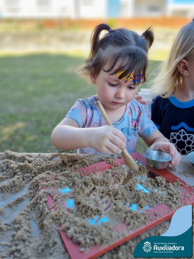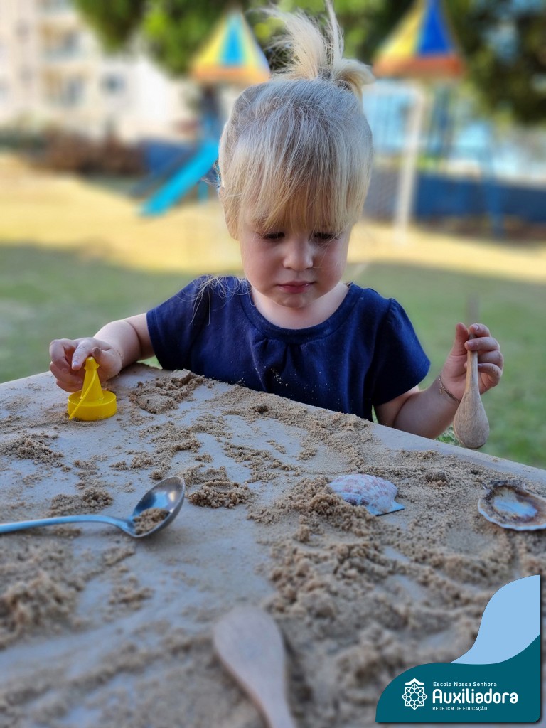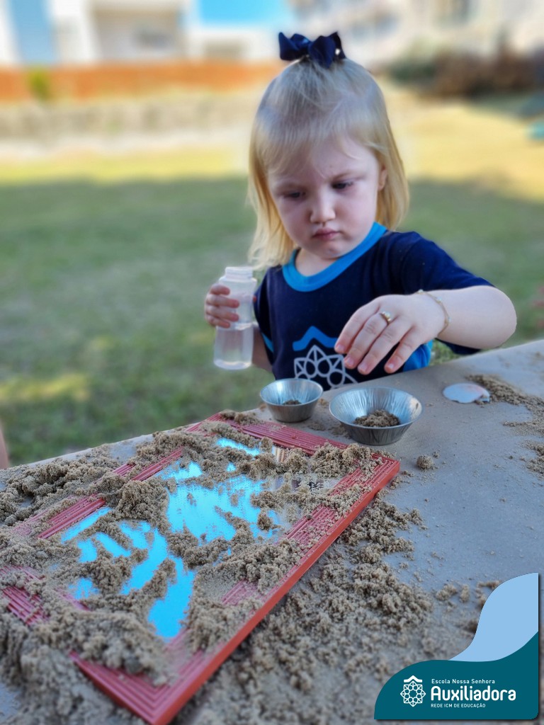 Nossa turma mergulhou em uma experiência sensorial incrível! Com areia, conchas, espelhos e diferentes ferramentas, exploramos texturas, formas e possibilidades de criação. O contato com elementos naturais desperta a curiosidade e amplia as descobertas.