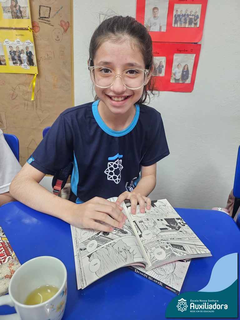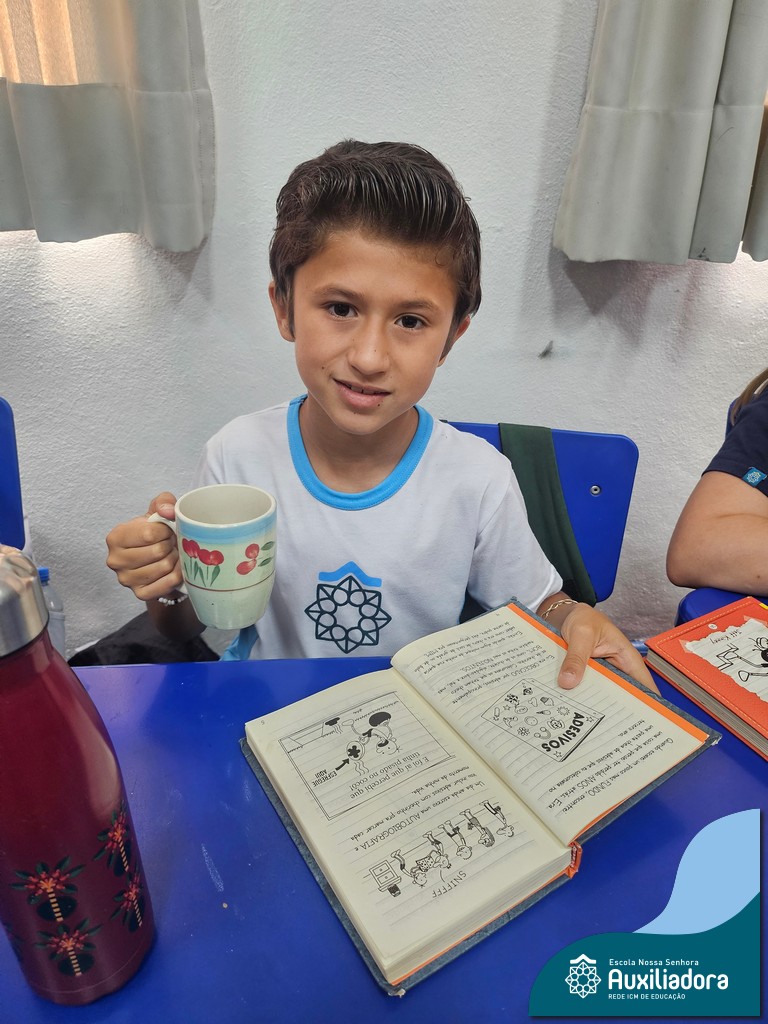 Uma manhã especial marcada por chás, boas conversas e muita troca de ideias. Os alunos trouxeram sugestões de livros que refletem seus gostos e curiosidades, enriquecendo ainda mais o momento.