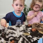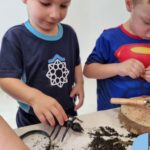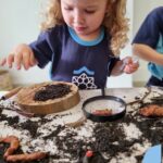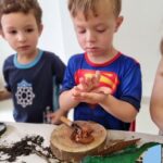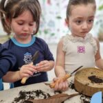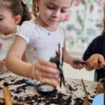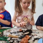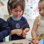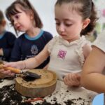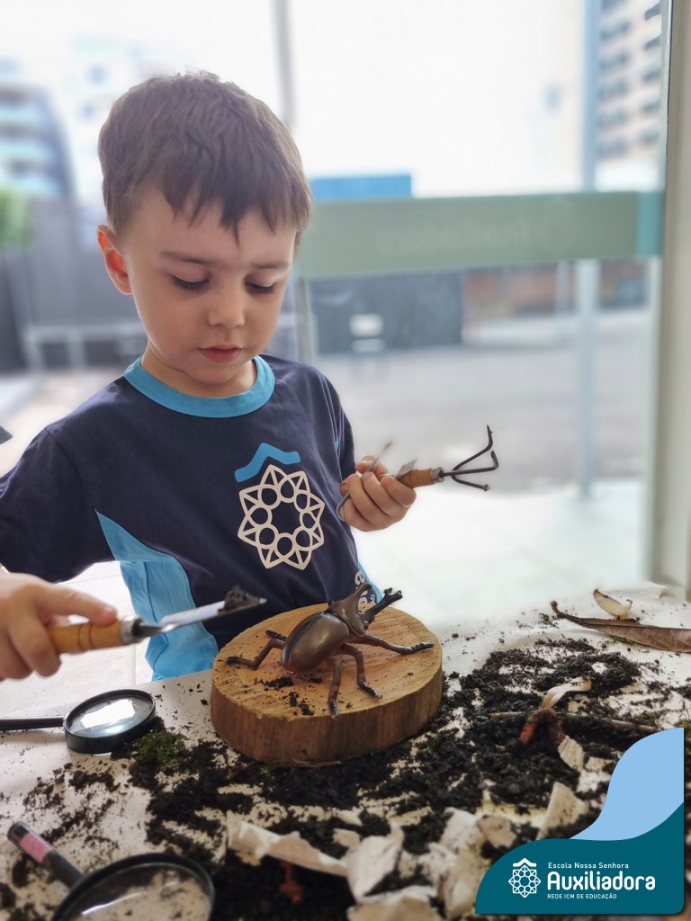 Entre lupas, pinças e muita imaginação, viveram uma experiência sensorial repleta de encantamento, aprendendo com a natureza através do brincar e da observação.