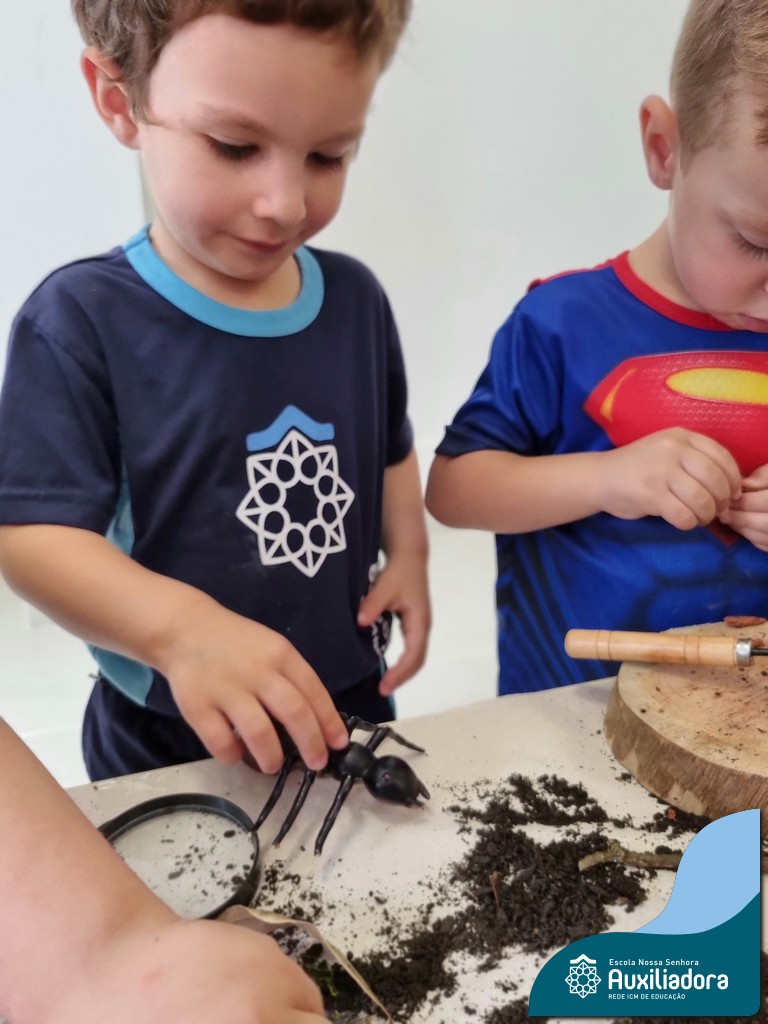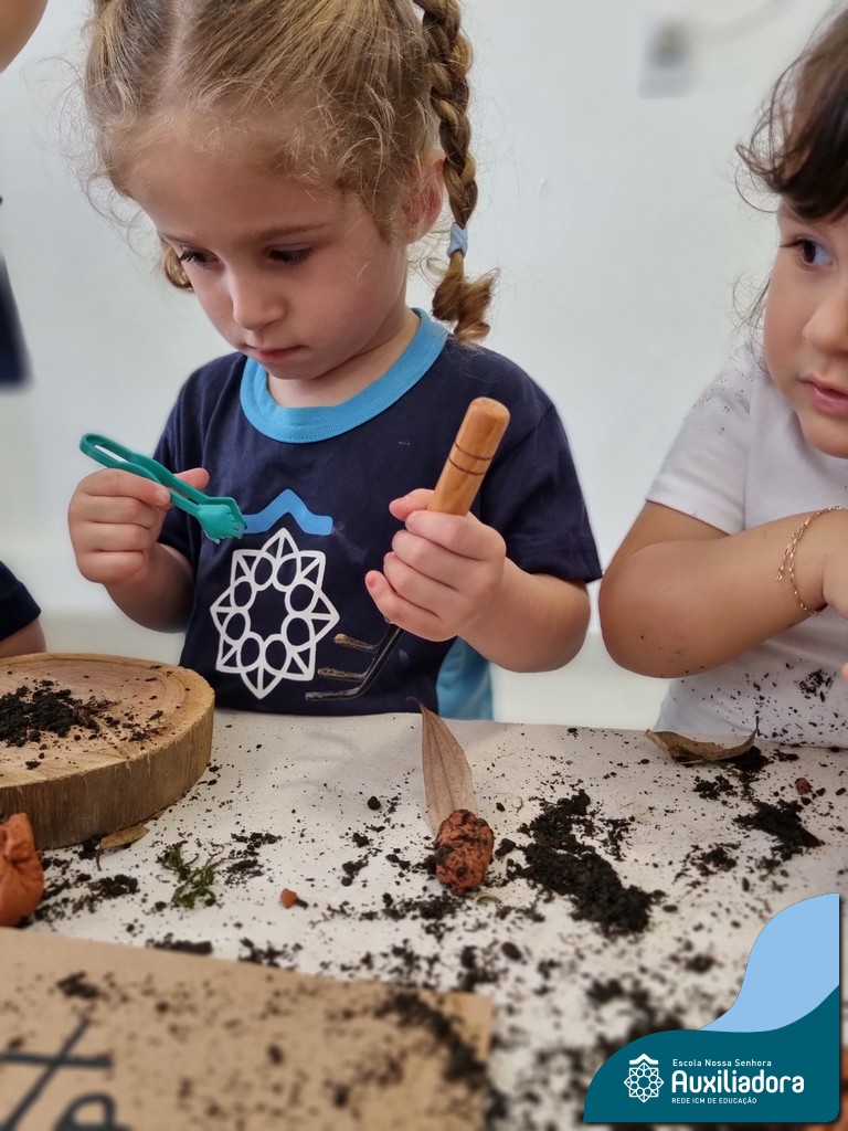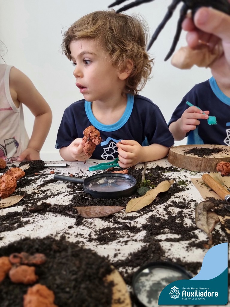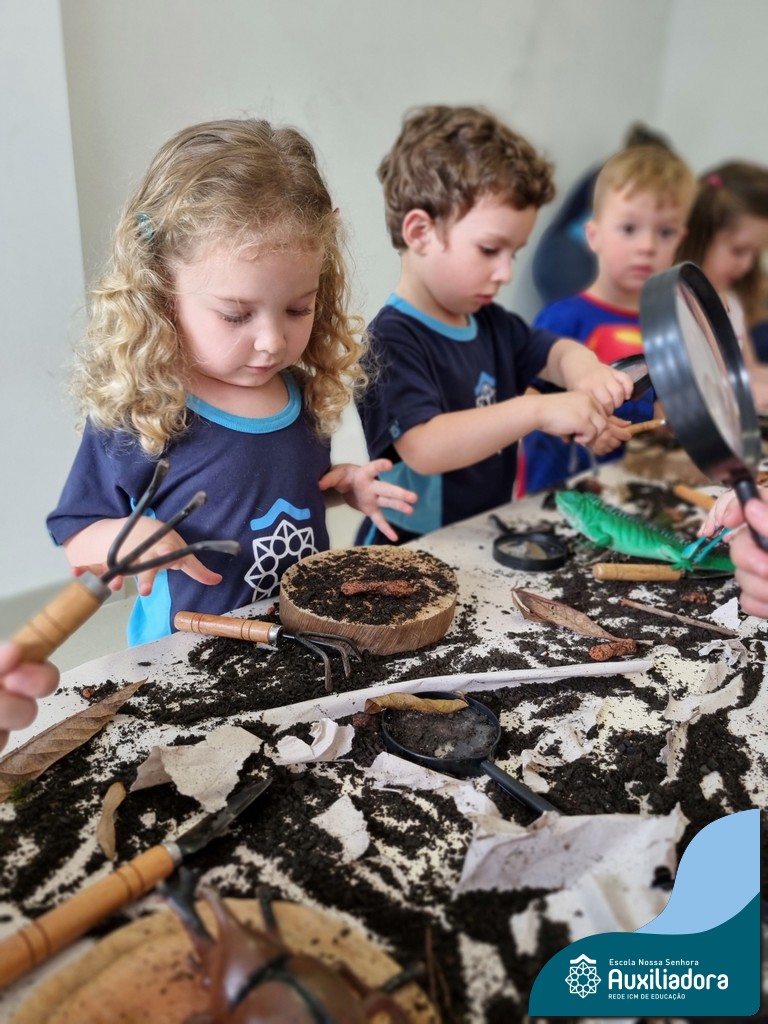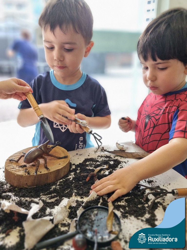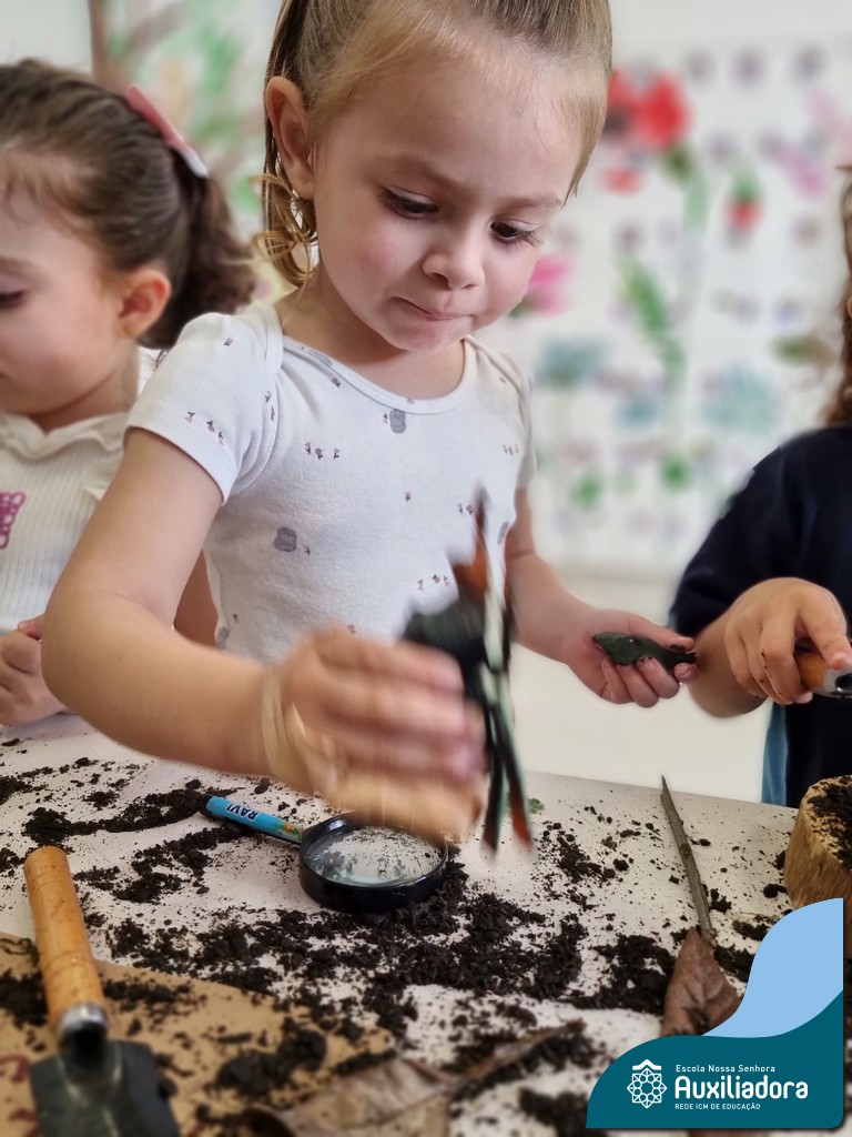 Em um convite à curiosidade e à descoberta, os pequenos exploradores investigaram a terra, as folhas e os pequenos animais que nela habitam.