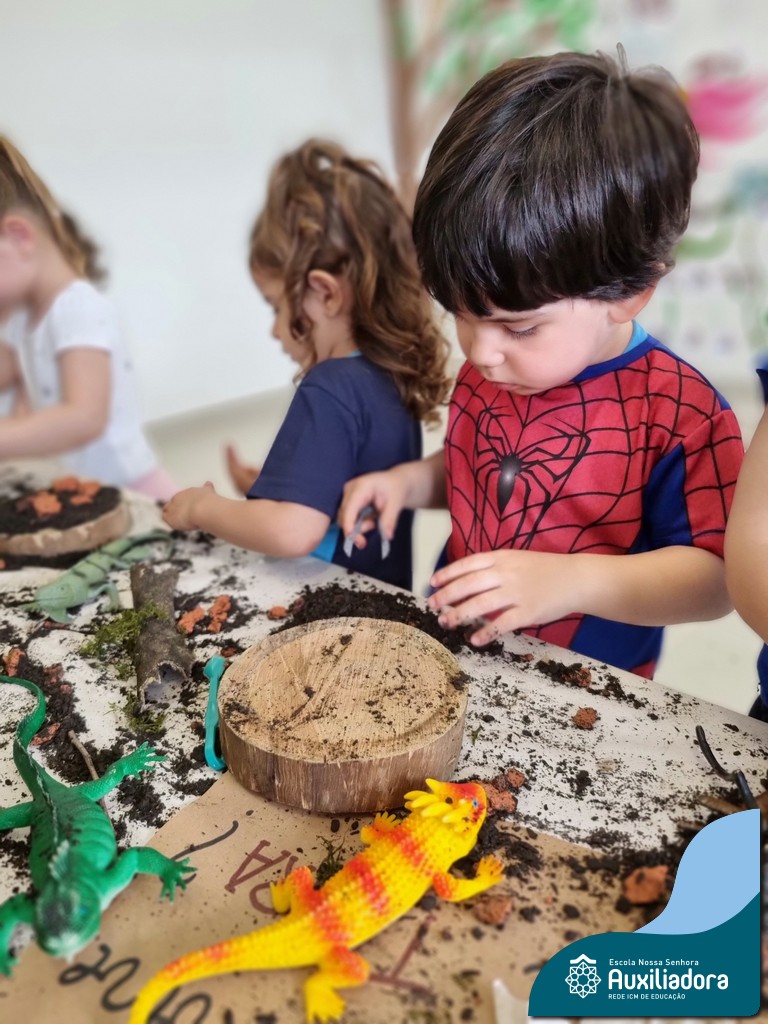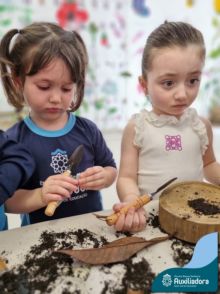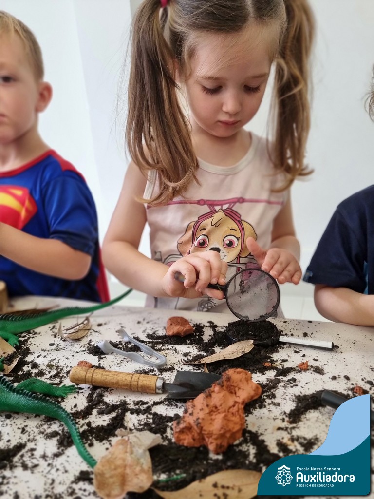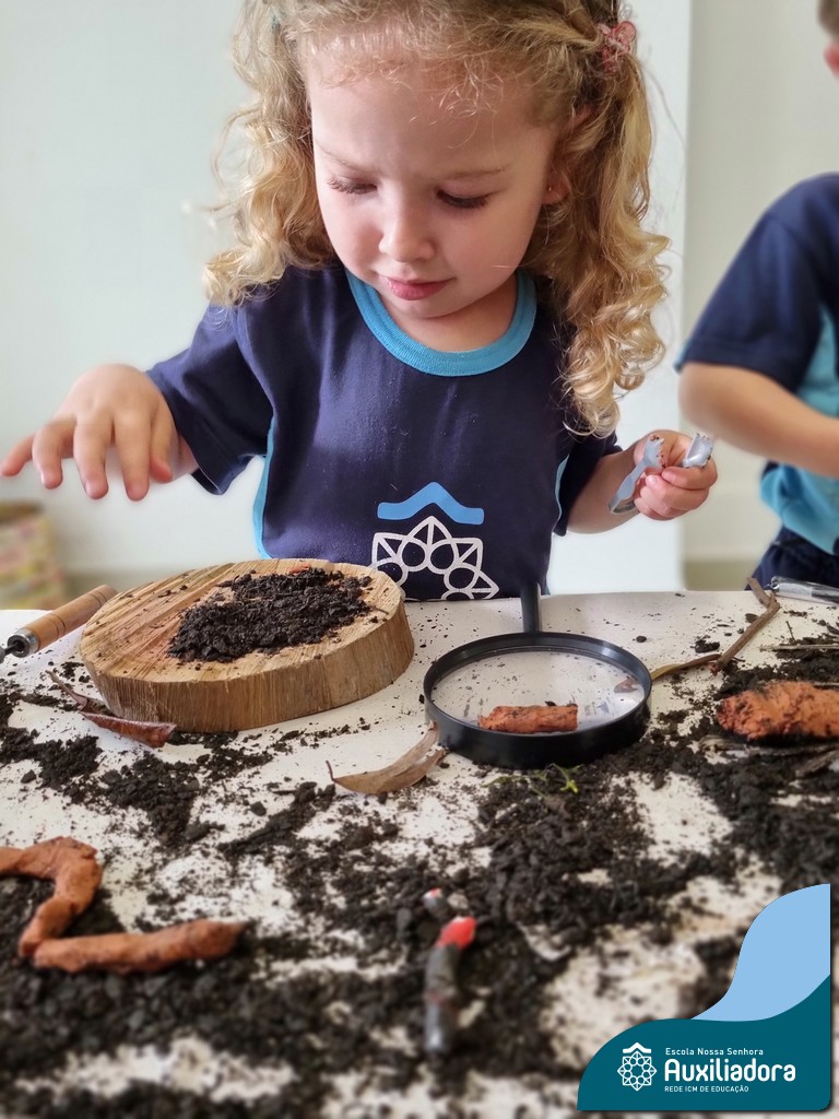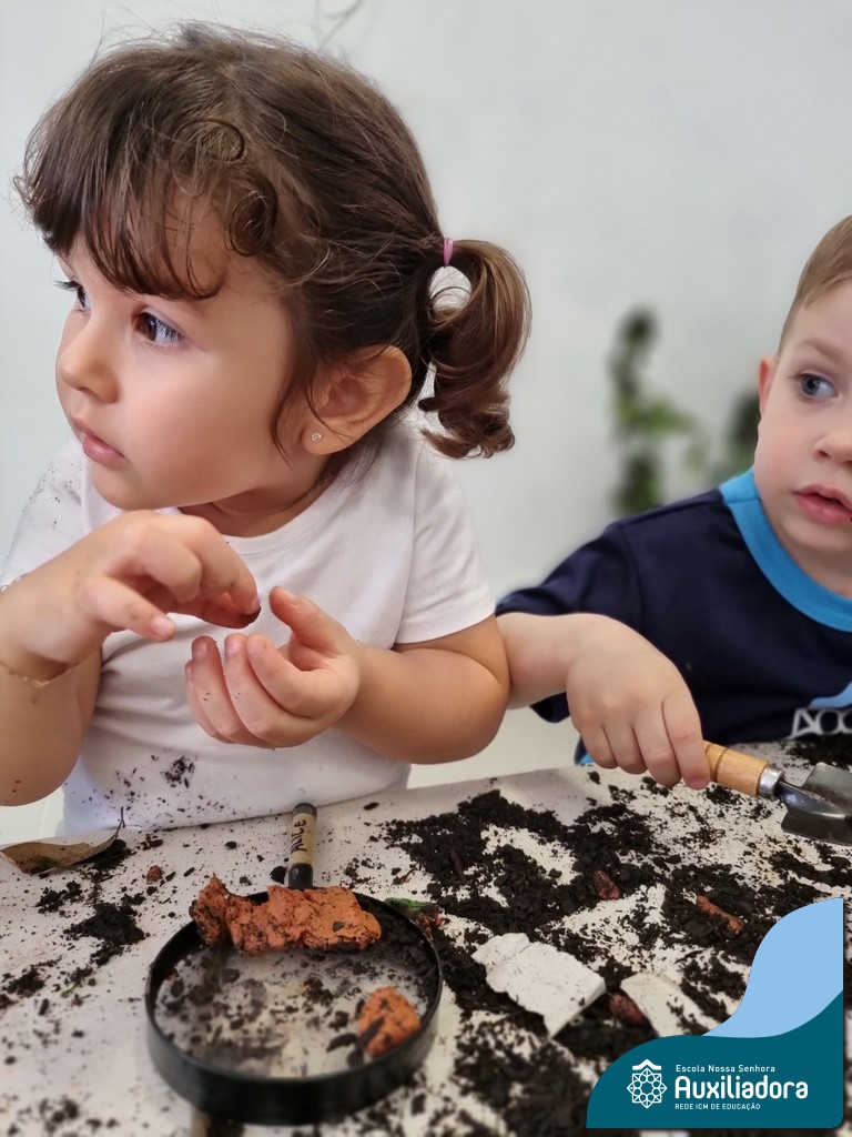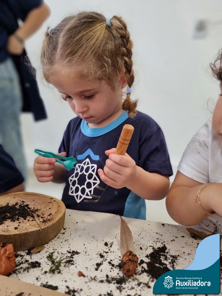 Em um convite à curiosidade e à descoberta, os pequenos exploradores investigaram a terra, as folhas e os pequenos animais que nela habitam.