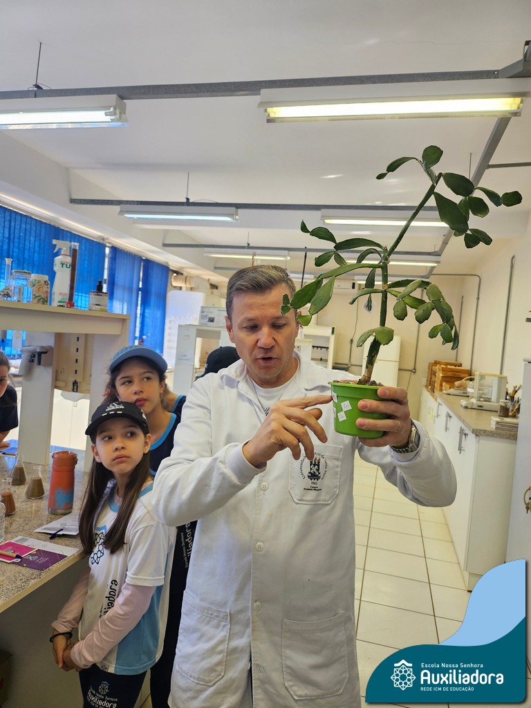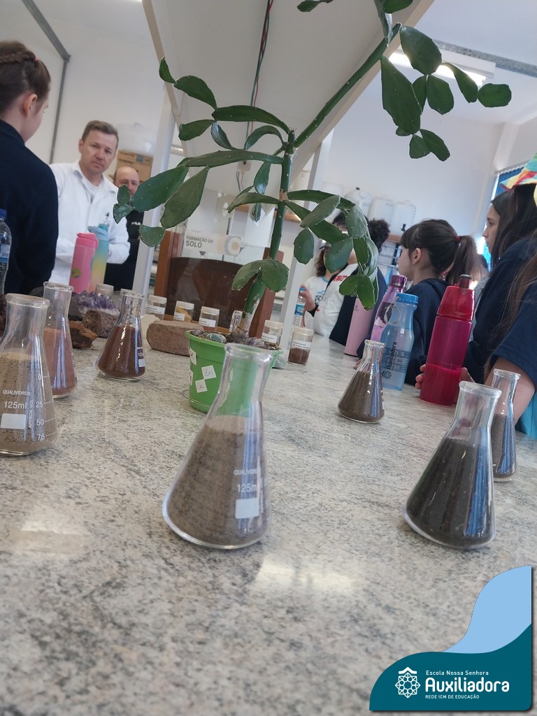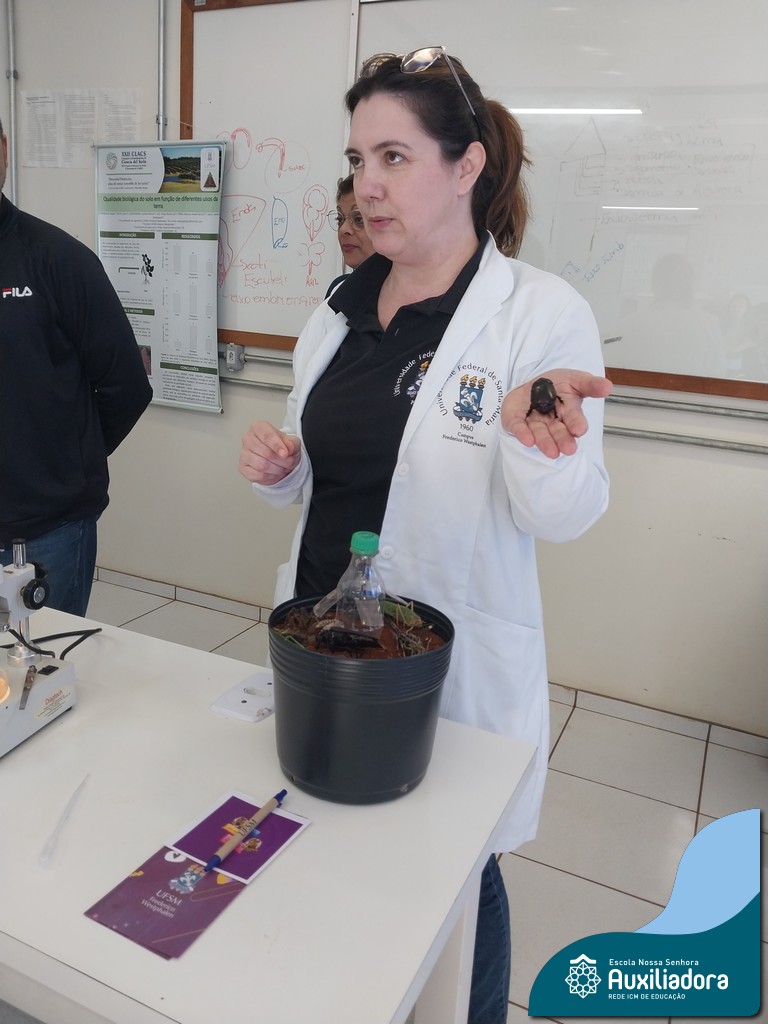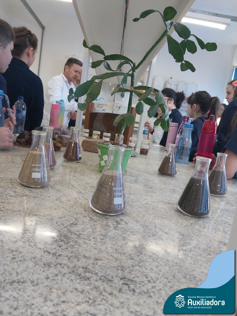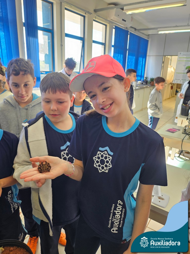 Acompanhados das professoras Claudia e Elisiane, eles colocaram em prática conteúdos estudados no trimestre durante a visita à UFSM/FW, com o apoio dos professores Edison Bisognin Cantarelli (Engenharia Florestal) e Vanderlei Rodrigues da Silva (Agronomia).