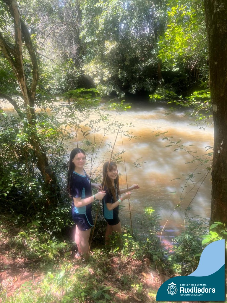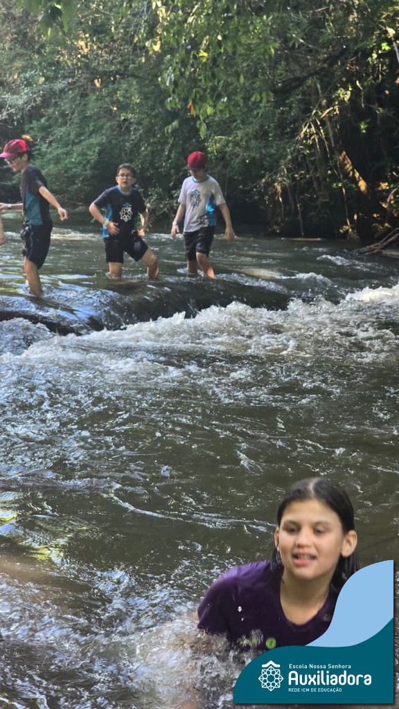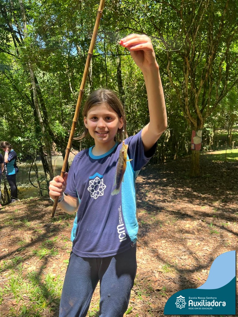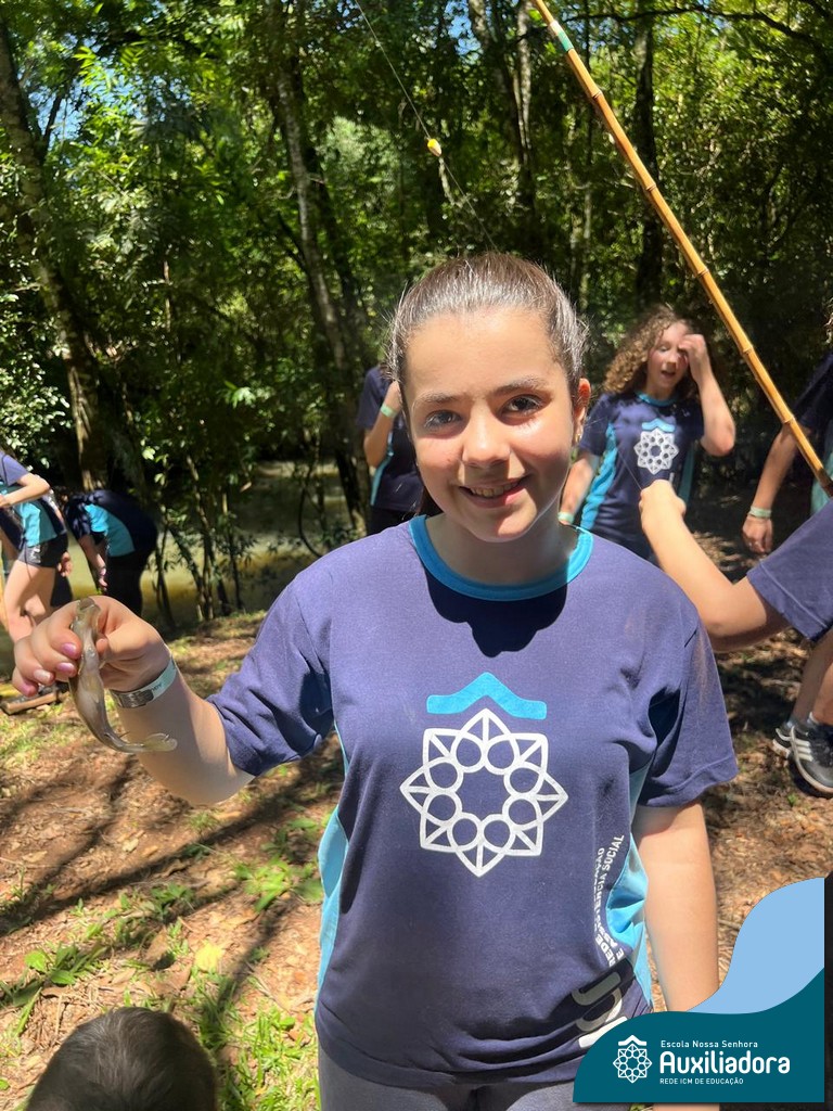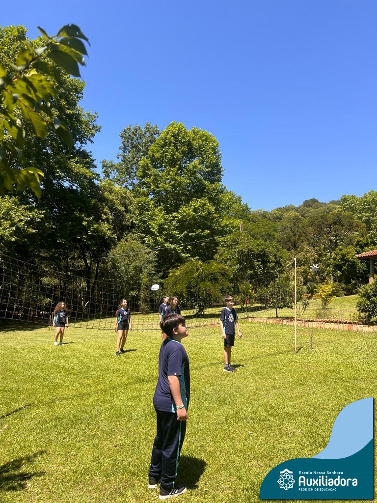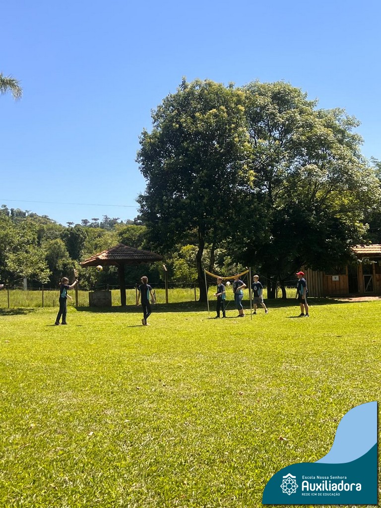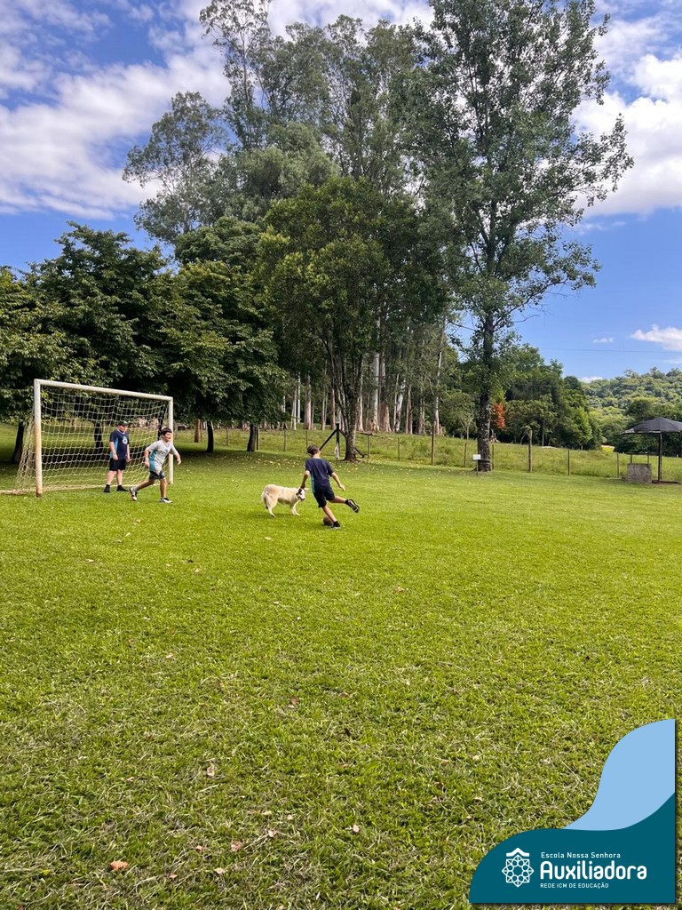 Logo na chegada, a turma foi recebida por uma ampla área verde, perfeita para brincar, explorar e aproveitar cada instante. E diversão foi o que não faltou! Teve futebol, vôlei, tirolesa, pescaria e até trilha molhada onde os alunos puderam se conectar com a natureza e com os colegas. ⚽🏐🎣