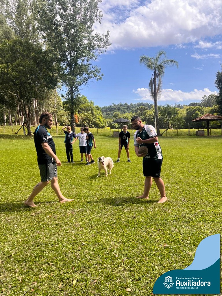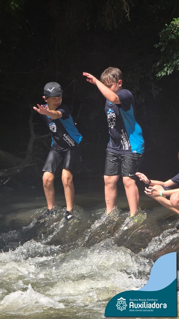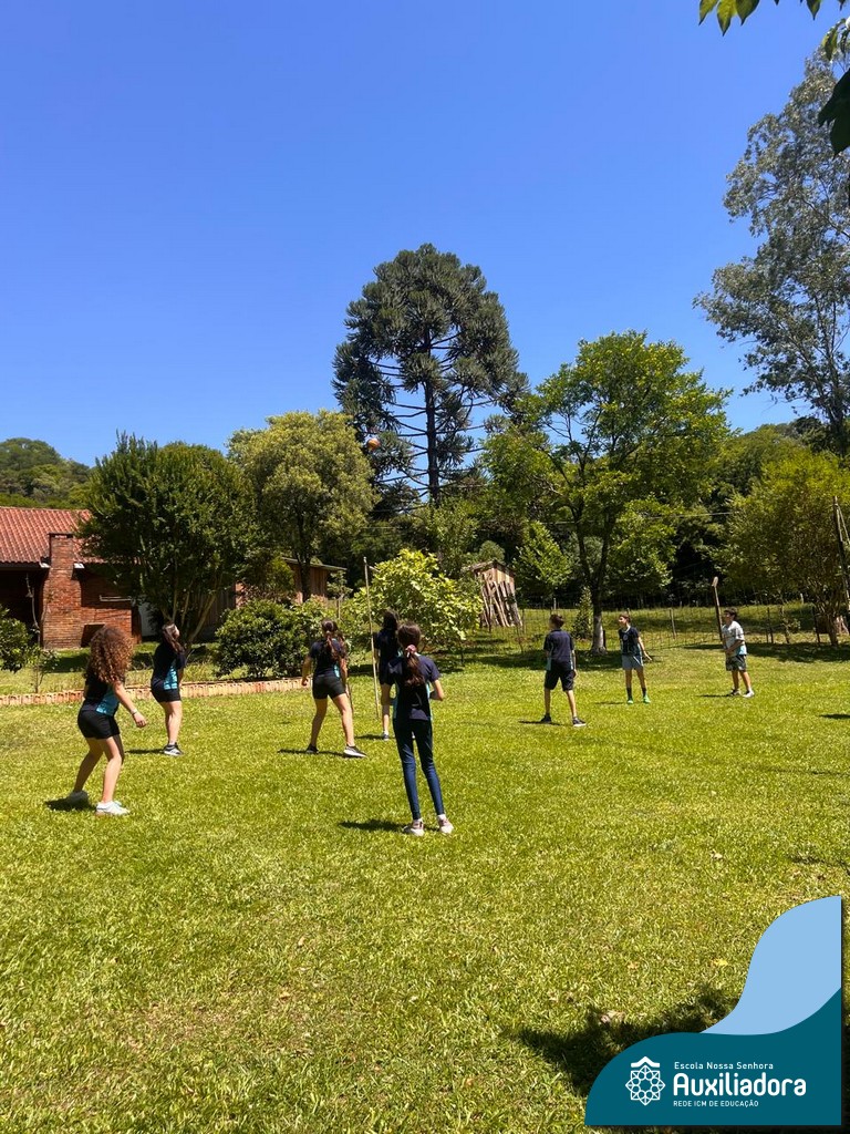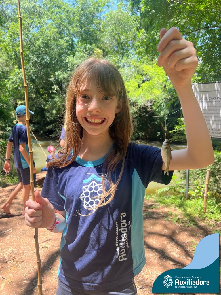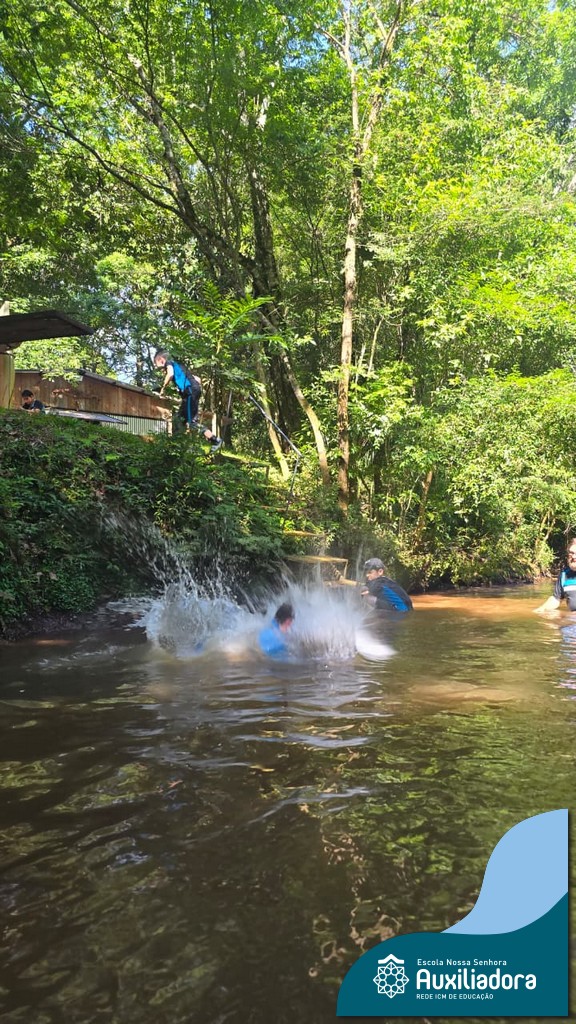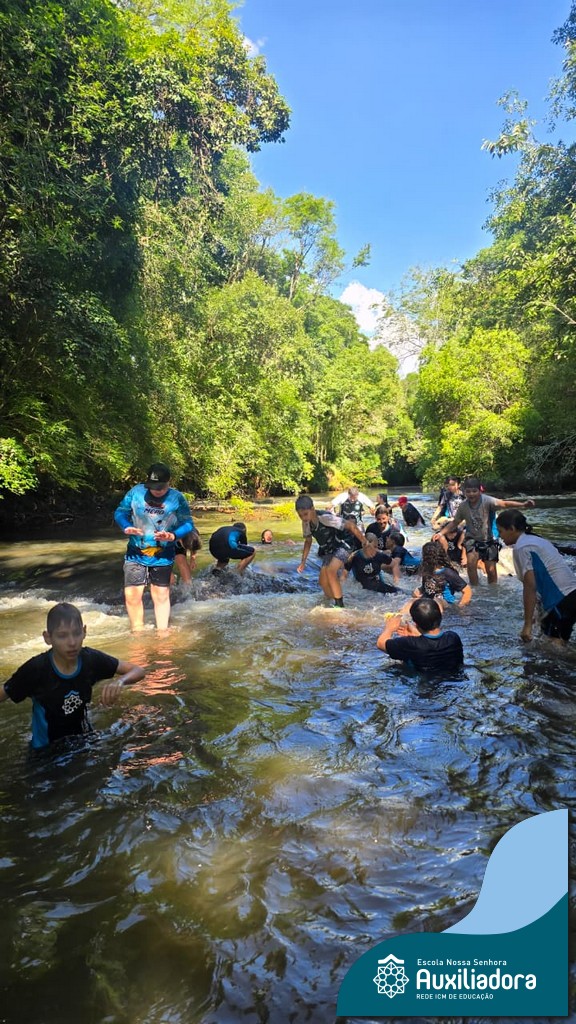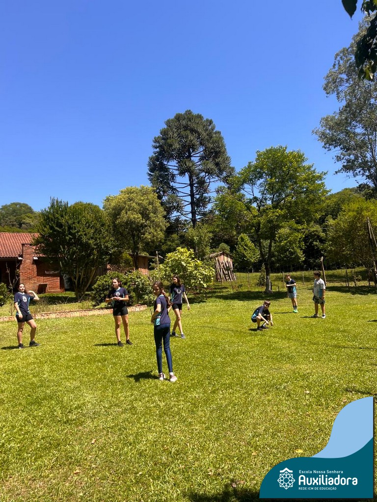 Logo na chegada, a turma foi recebida por uma ampla área verde, perfeita para brincar, explorar e aproveitar cada instante. E diversão foi o que não faltou! Teve futebol, vôlei, tirolesa, pescaria e até trilha molhada onde os alunos puderam se conectar com a natureza e com os colegas. ⚽🏐🎣