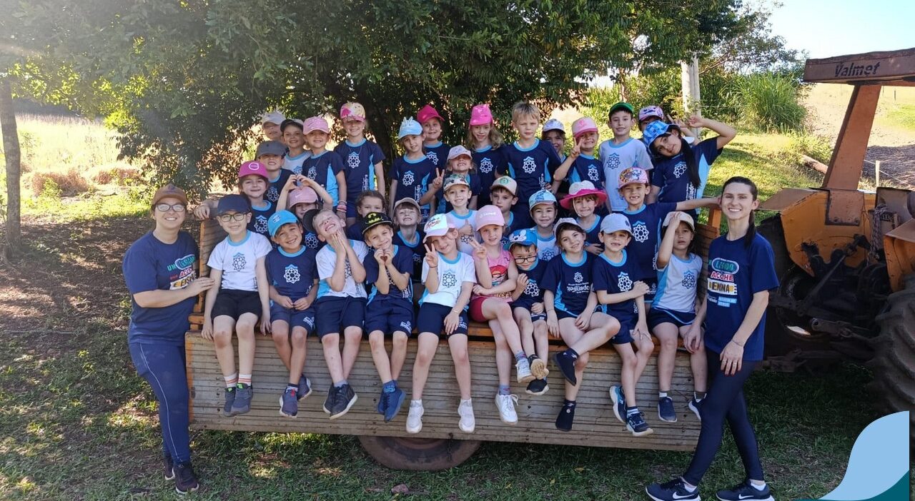 Aproveitamos o passeio para explorar a fazenda de verdade: andamos a cavalo, fizemos manejo dos animais, passeio de trator e muitas brincadeiras ao ar livre. As crianças puderam observar, tocar, sentir e vivenciar de perto tudo aquilo que desperta tanta curiosidade em sala de aula.