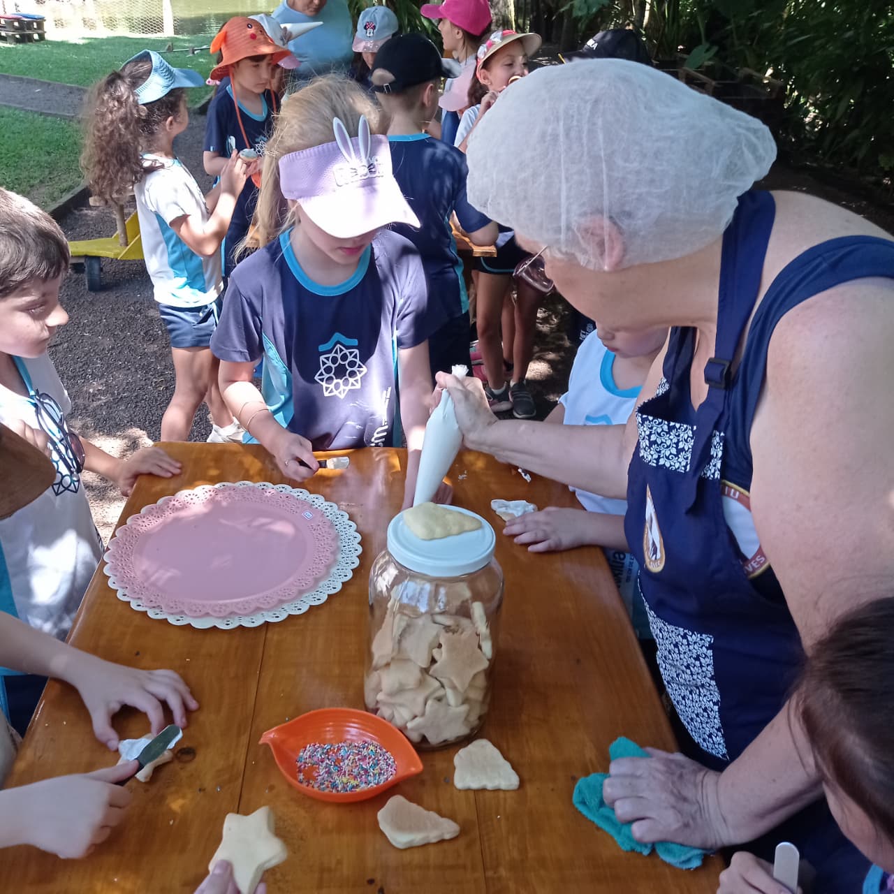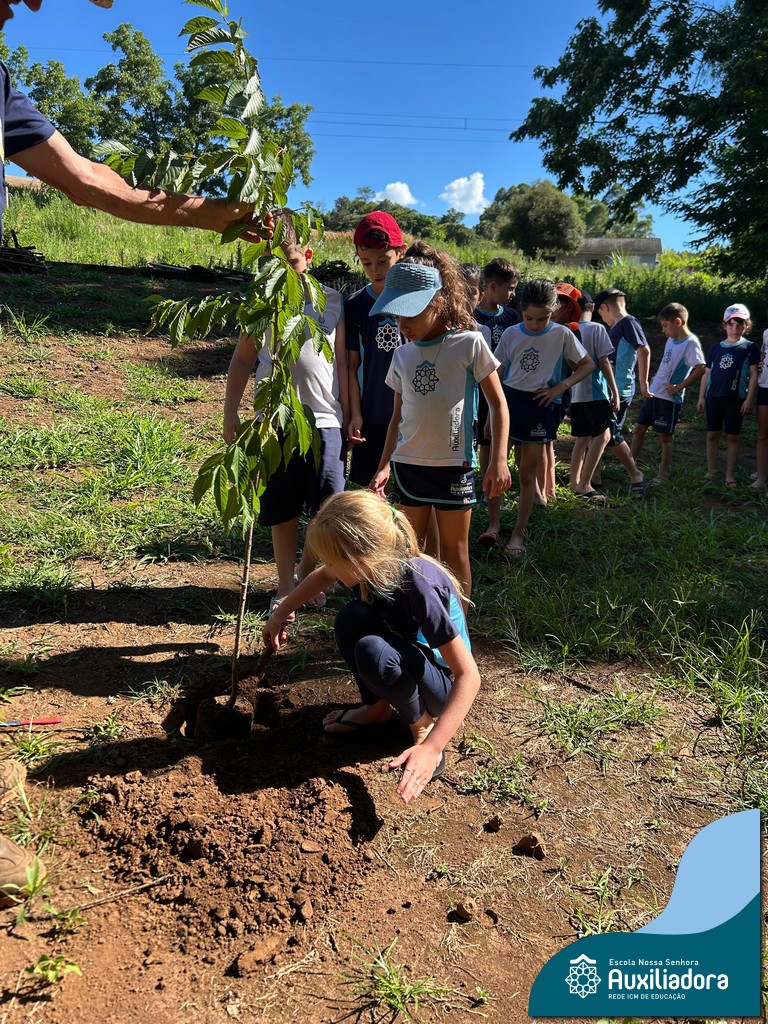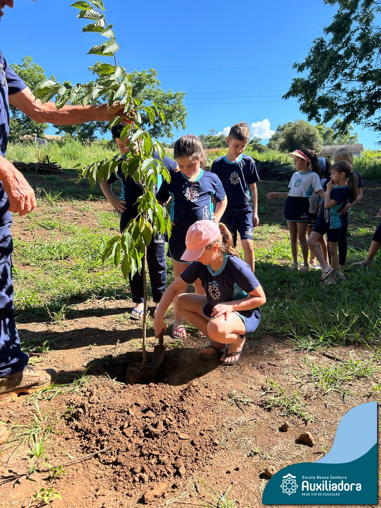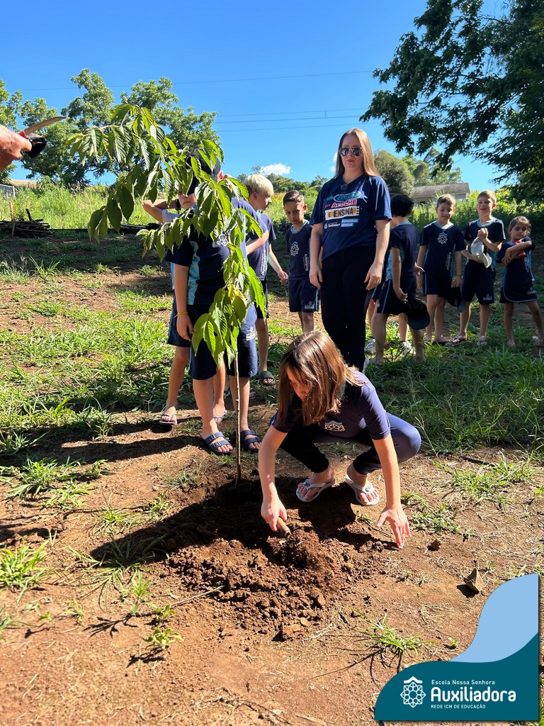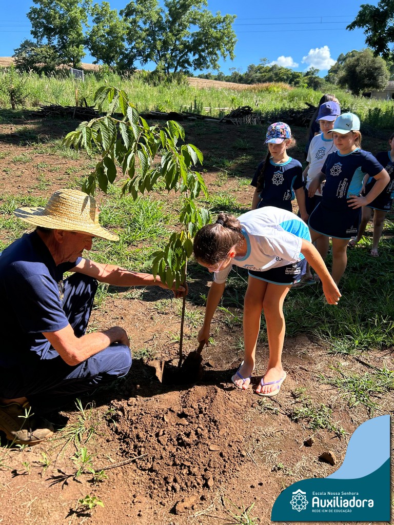 Teve também passeio de pedalinho no açude, pintura de bolachas de Natal, momentos de brincadeira, muita risada e animação e alegria que só as crianças têm. As turmas ainda mantiveram a tradição de plantar a árvore da turma, que fica registrada na propriedade como memória desse dia tão especial. 🌱✨