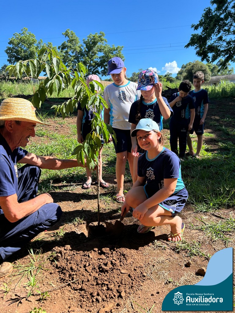 Recebidos com carinho pelo vô Ivo e pela vó Nilce, as crianças exploraram cada cantinho do sítio: conheceram o espaço, visitaram o recanto das Mimosas, alimentaram os coelhos e se aventuraram em uma trilha no meio da mata, em que receberam o superpoder de Guardiões da Natureza. 💚🌳