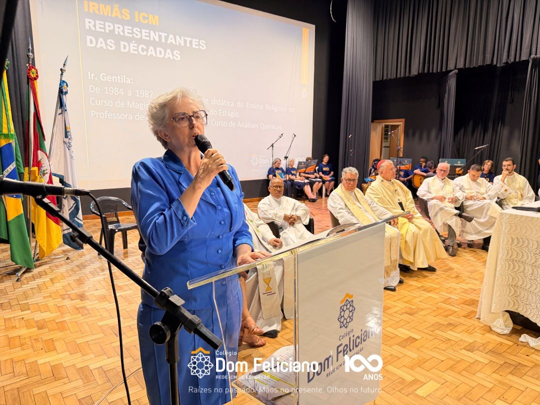 A solenidade foi encerrada com homenagens às Irmãs e o canto do Hino do Colégio, marcando o início das festividades que devem perdurar ao longo do ano centenário.