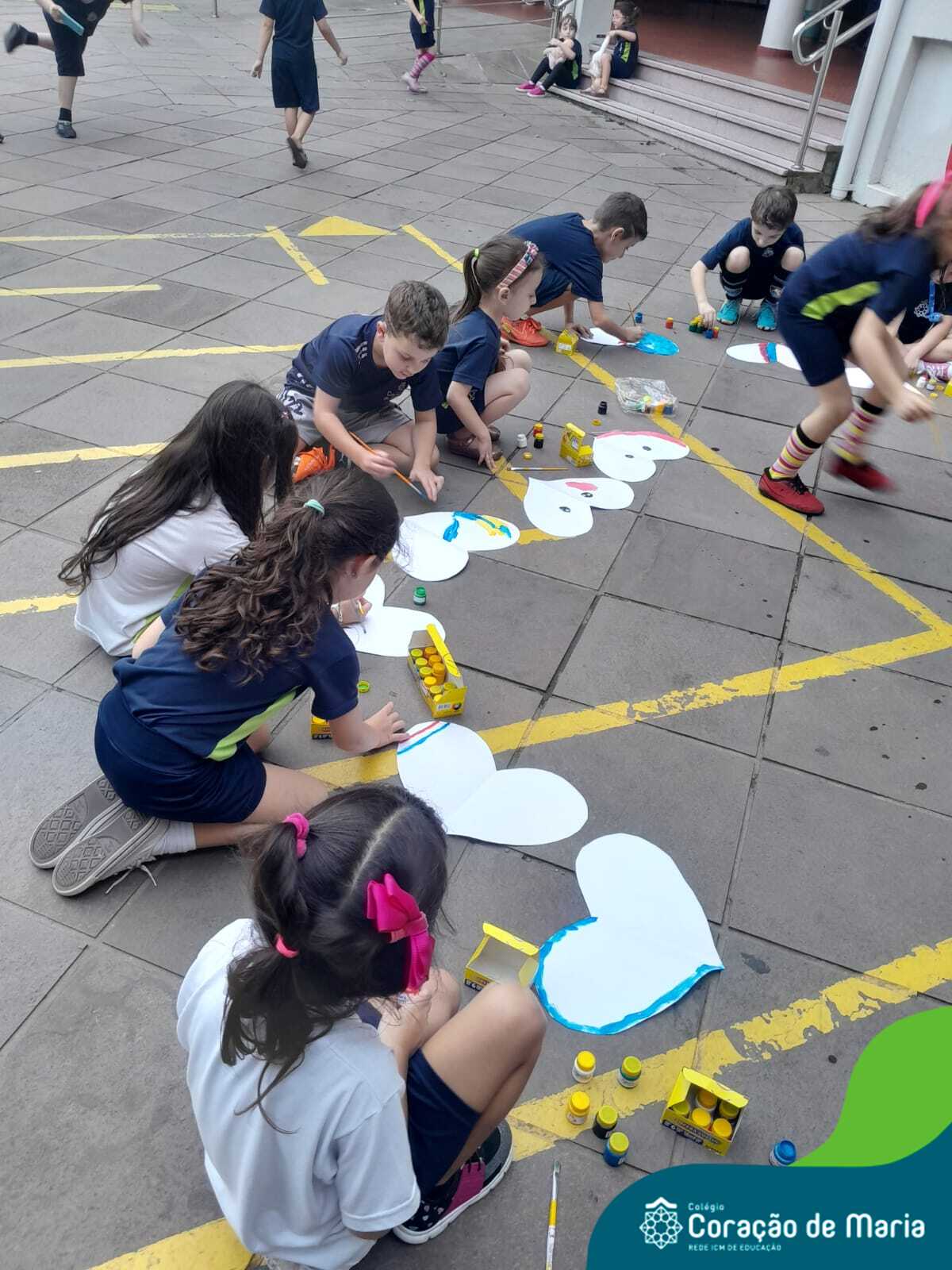 Os alunos da turma 12, do 1º ano do Ensino Fundamental, orientados pela professora Liamara, realizaram uma atividade de reflexão sobre o momento pelo qual o Rio Grande do Sul está passando. Tal como a promessa do arco-íris feita por Deus para Noé, como sinal do fim do dilúvio, as crianças pintaram enormes corações coloridos.