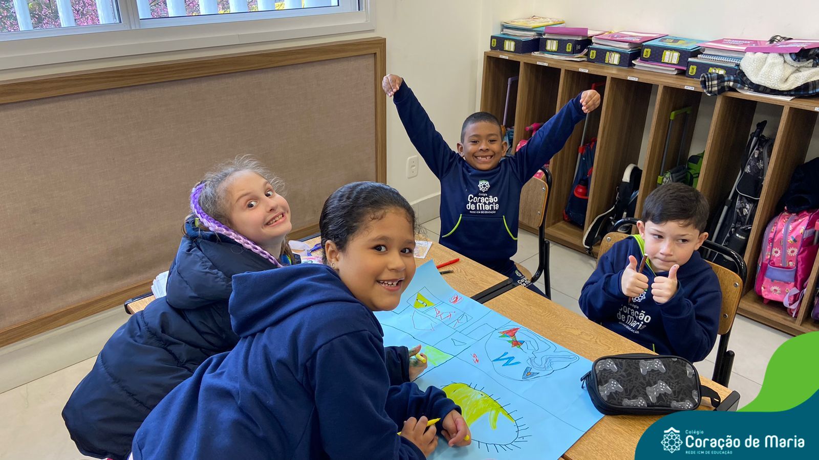 Além de compartilhar o espaço e os materiais, o trabalho em grupo permite que os alunos apreciem as contribuições de cada um e acrescente as suas.