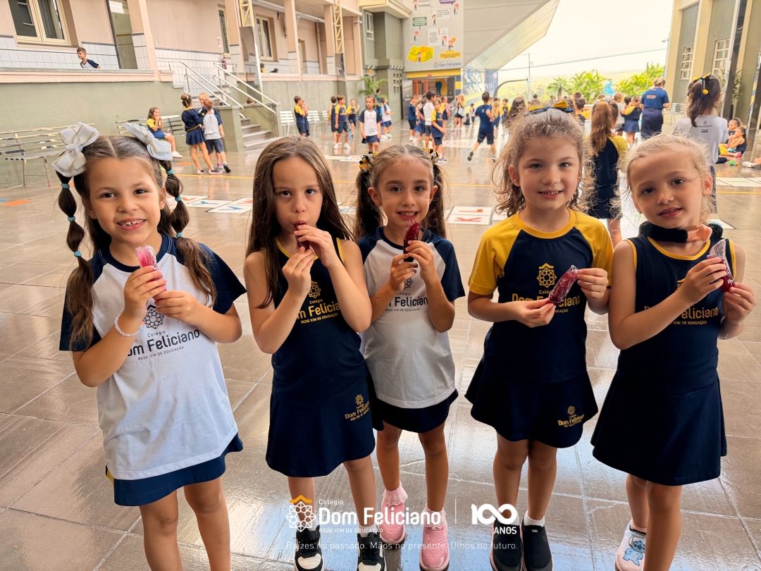 Pode parecer apenas um mimo geladinho no intervalo, mas, no Dom Feliciano, acreditamos que o acolhimento se manifesta nos pequenos gestos. Oferecer um sacolé de fruta aos nossos alunos da Educação Infantil ao 5º ano é uma forma de dizer: “Estamos felizes por você estar aqui e cuidamos de você em cada detalhe”.