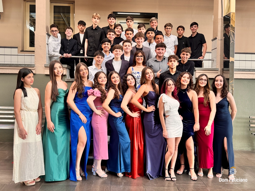 Na noite de 19 de dezembro de 2025, o Colégio Dom Feliciano realizou a Formatura do 9º Ano, evento que marcou oficialmente a conclusão do Ensino Fundamental para seus estudantes. A cerimônia aconteceu no Auditório do Colégio e reuniu alunos, familiares e a comunidade escolar.