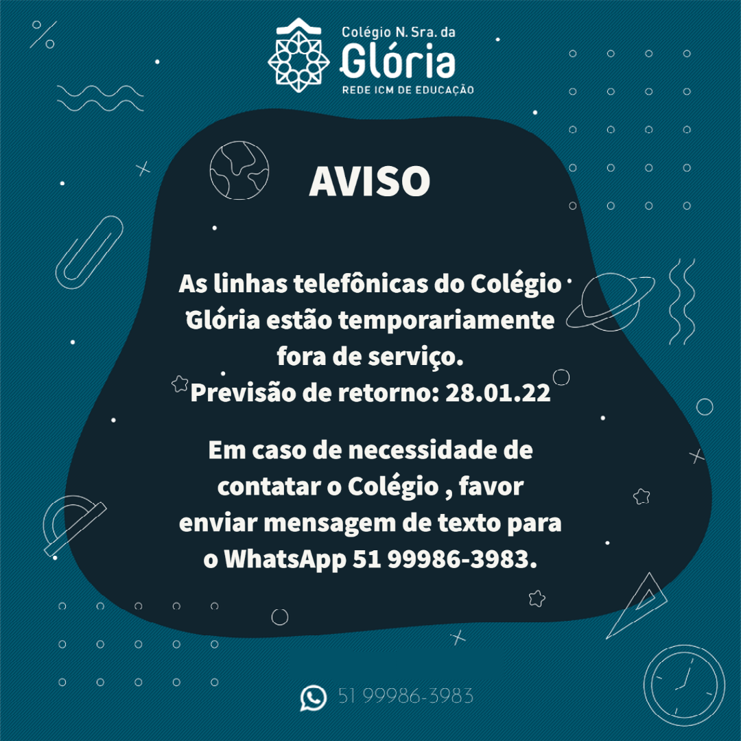 As linhas telefônicas do Colégio Glória estão temporariamente fora de serviço.