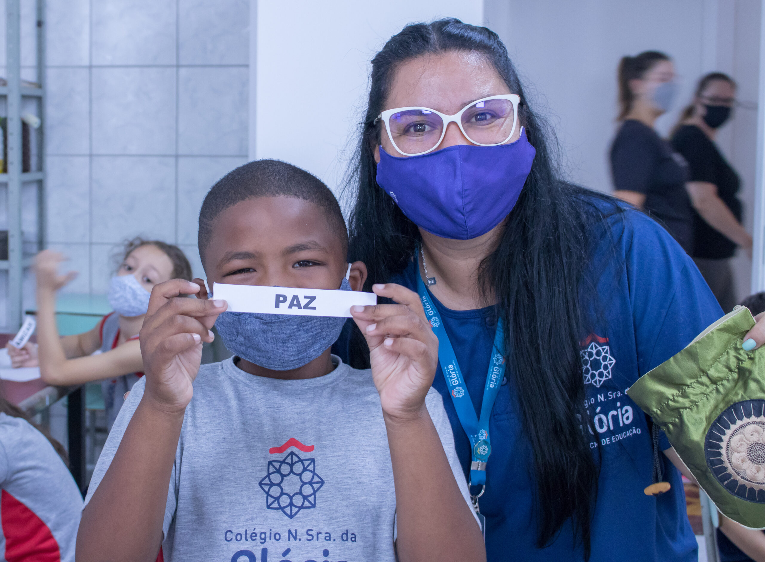 Com inspiração no tema, a professora Bruna orientou os estudantes na confecção de pequenos móbiles, utilizando placas de papelão, tinta e muita criatividade! Os objetos, com palavras que denominam atitudes e sentimentos importantes no nosso dia a dia, estão decorando a sala de aula.