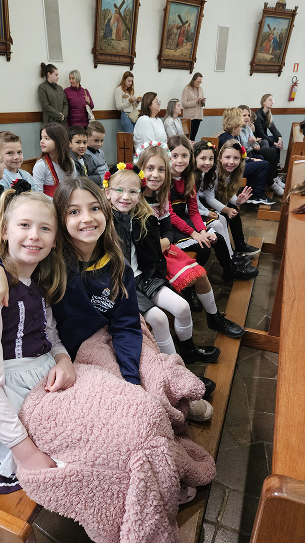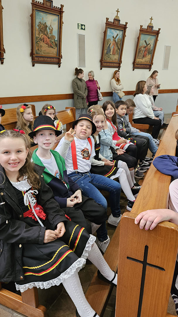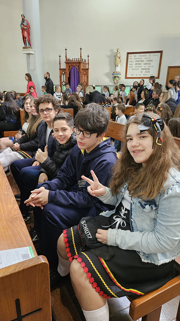 No dia 26 de setembro, vivenciamos uma manhã repleta de cultura e espírito comunitário em comemoração ao Kerb de São Miguel. A programação teve início com uma celebração ecumênica na Igreja Matriz São Miguel, reunindo os estudantes do Colégio Imaculada e da Escola 10 de Setembro, em momento de oração e convívio inter-religioso.