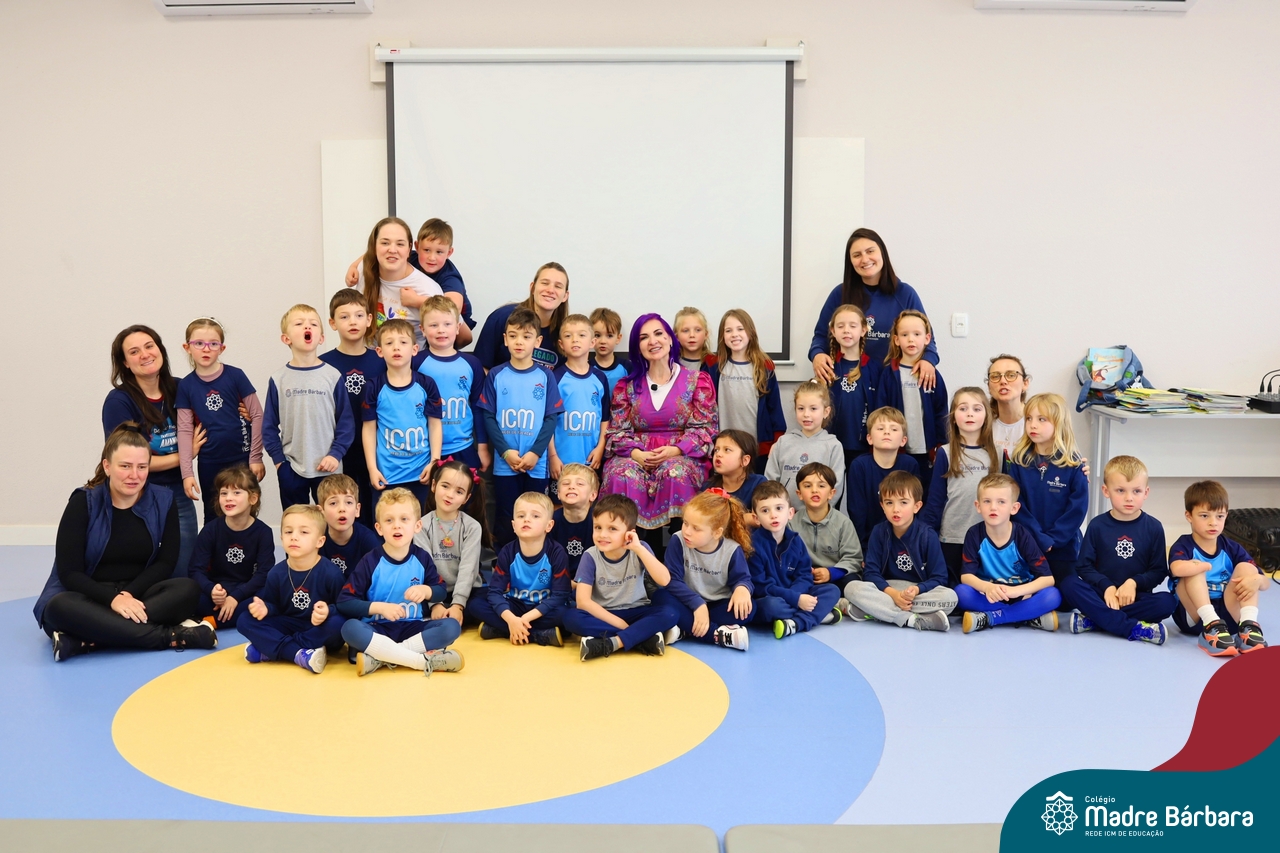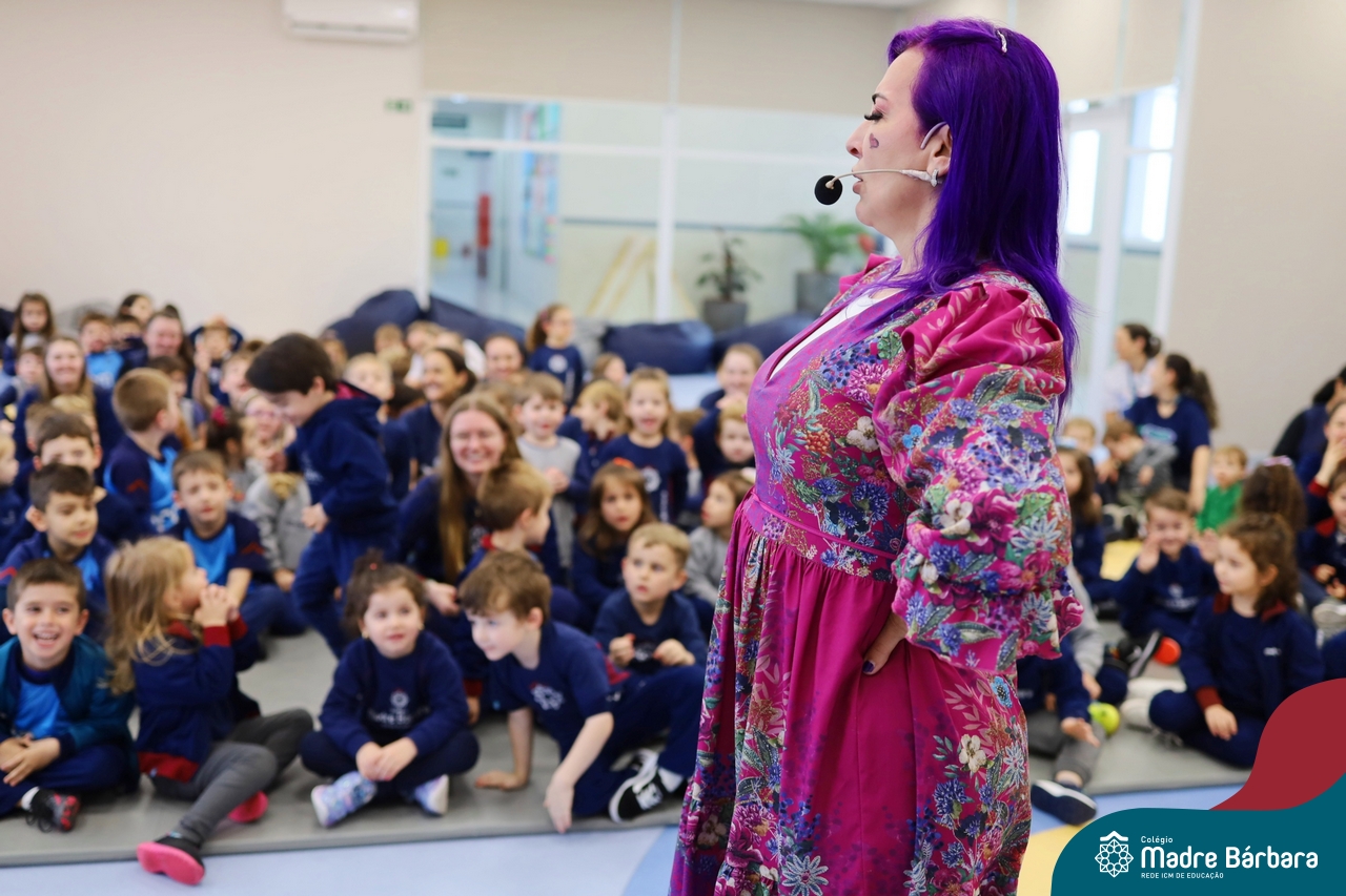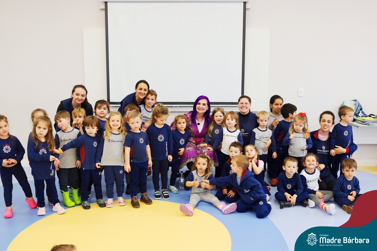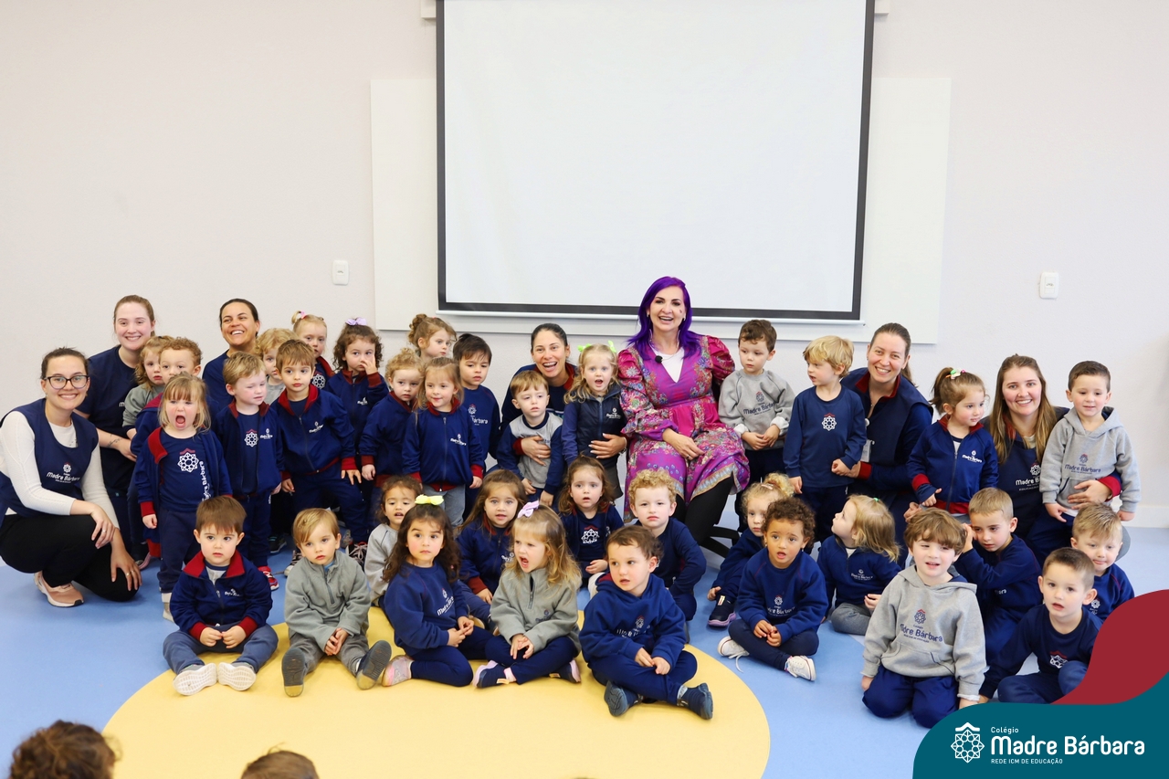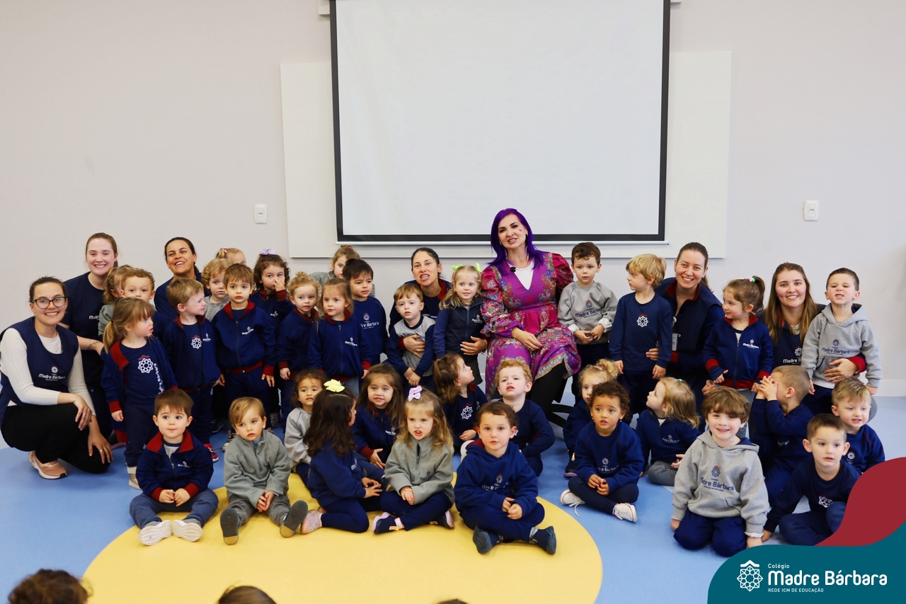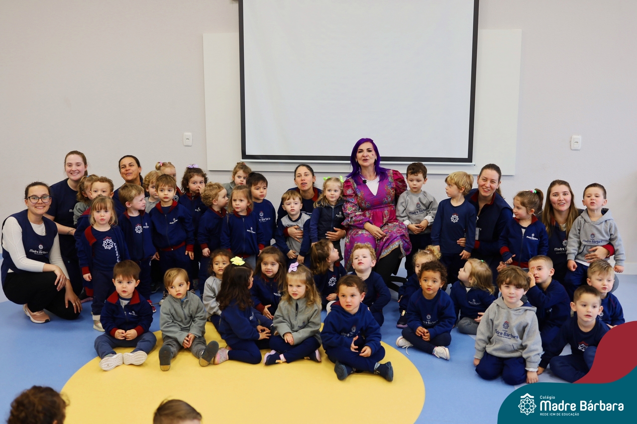 Outubro chegou trazendo magia e encantamento para as crianças da Educação Infantil! Nesta quarta-feira, dia 01.10, o Colégio Madre Bárbara – Rede ICM deu início à programação especial do Mês da Criança com uma convidada muito querida: a escritora Léia Cassol.