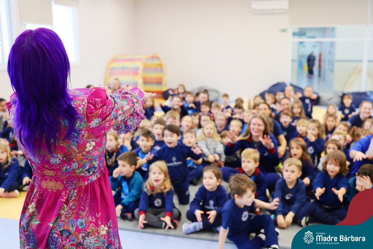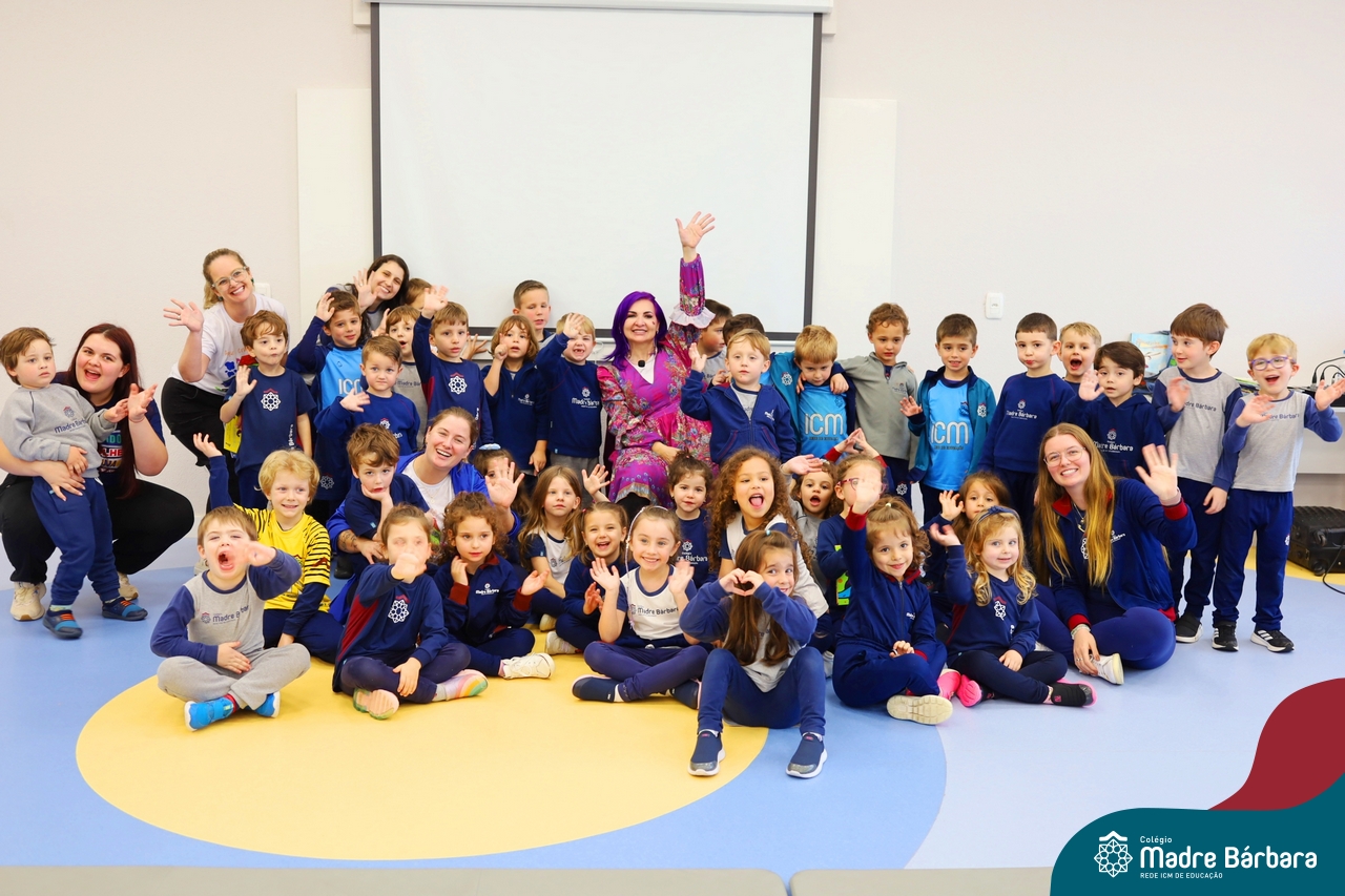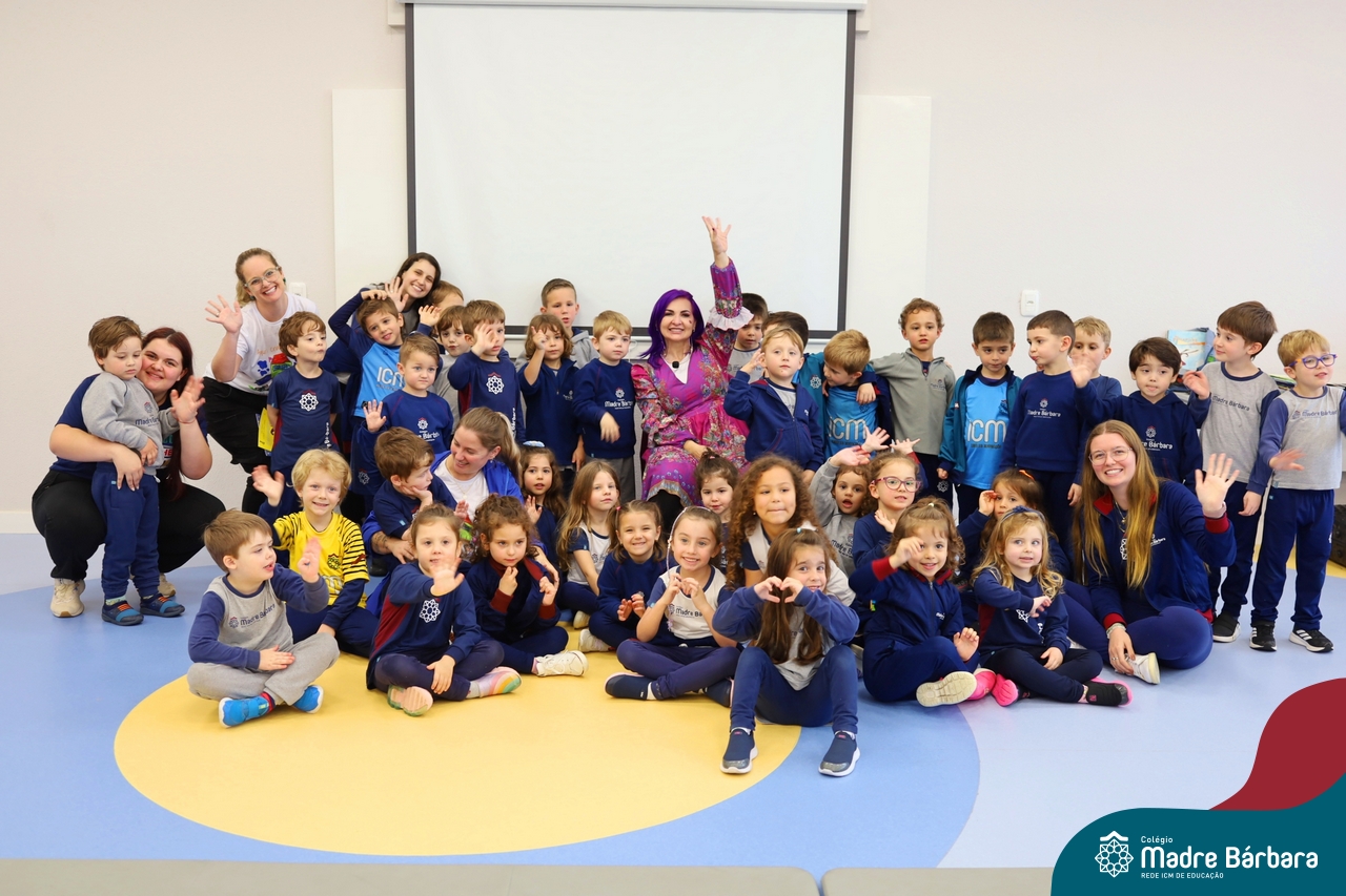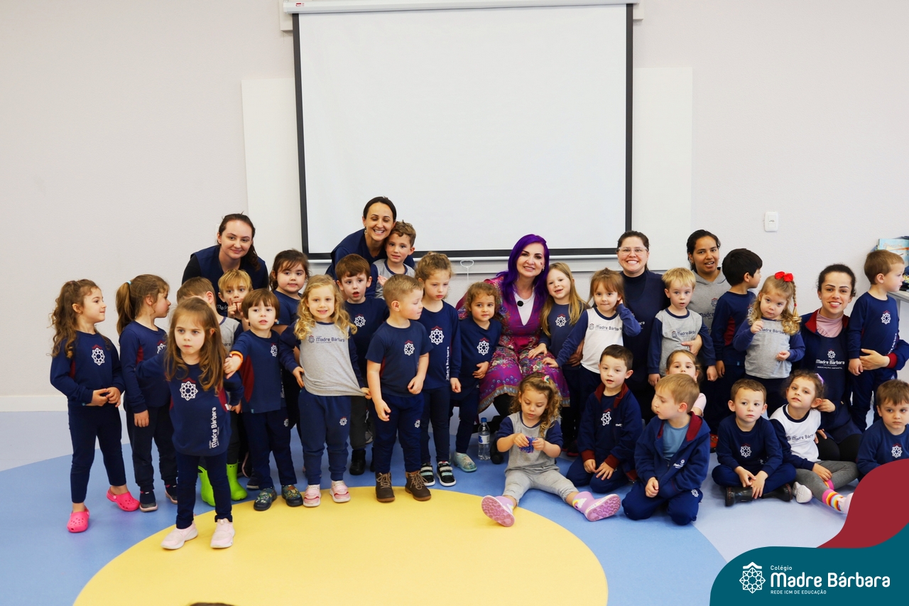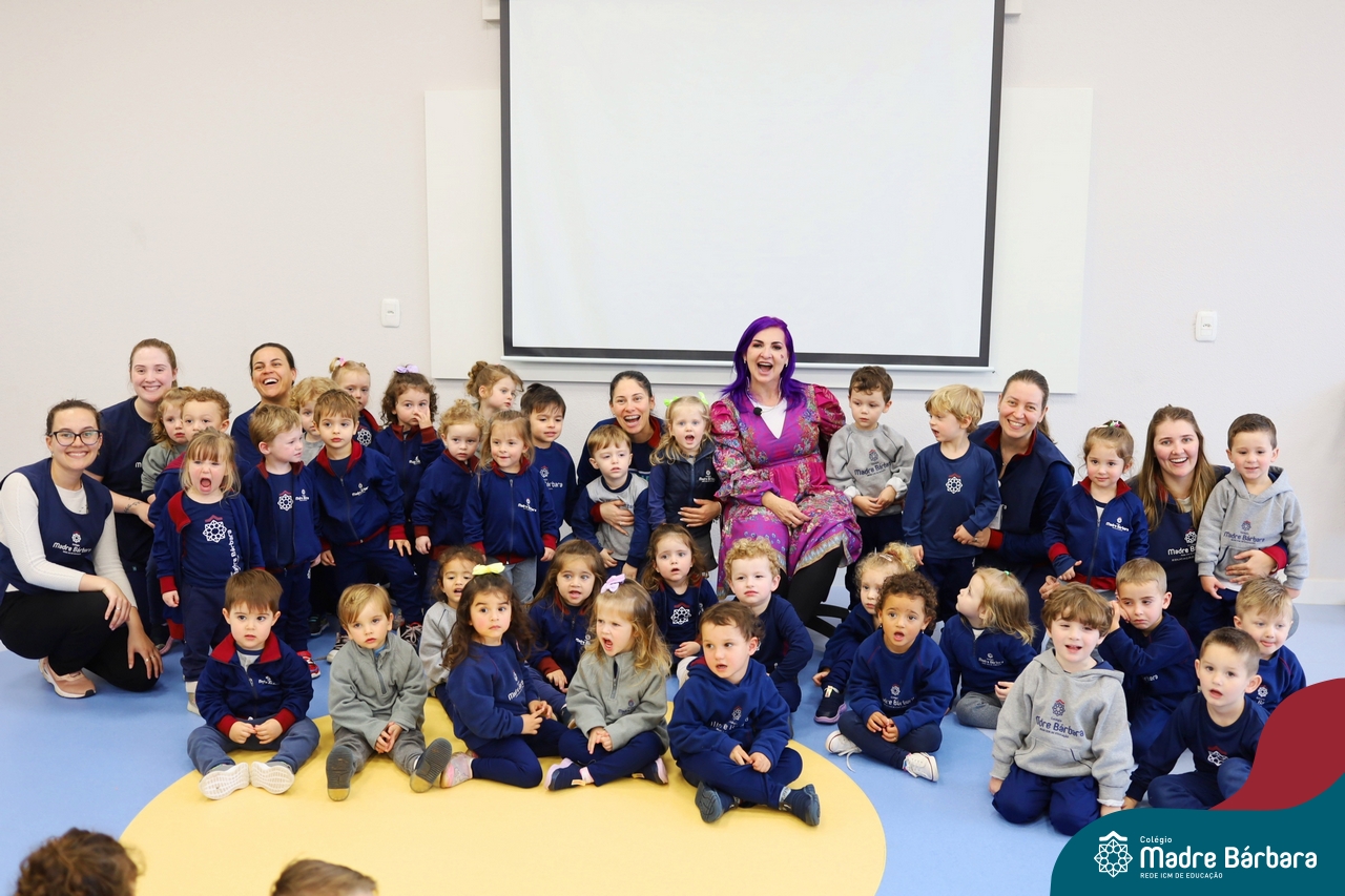 Outubro chegou trazendo magia e encantamento para as crianças da Educação Infantil! Nesta quarta-feira, dia 01.10, o Colégio Madre Bárbara – Rede ICM deu início à programação especial do Mês da Criança com uma convidada muito querida: a escritora Léia Cassol.