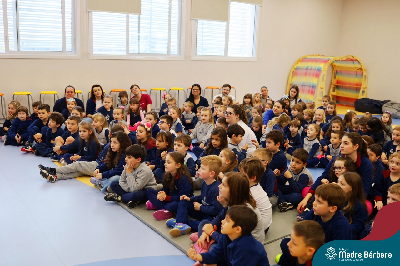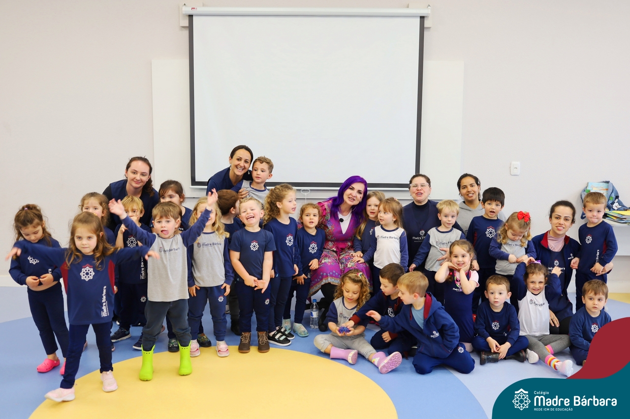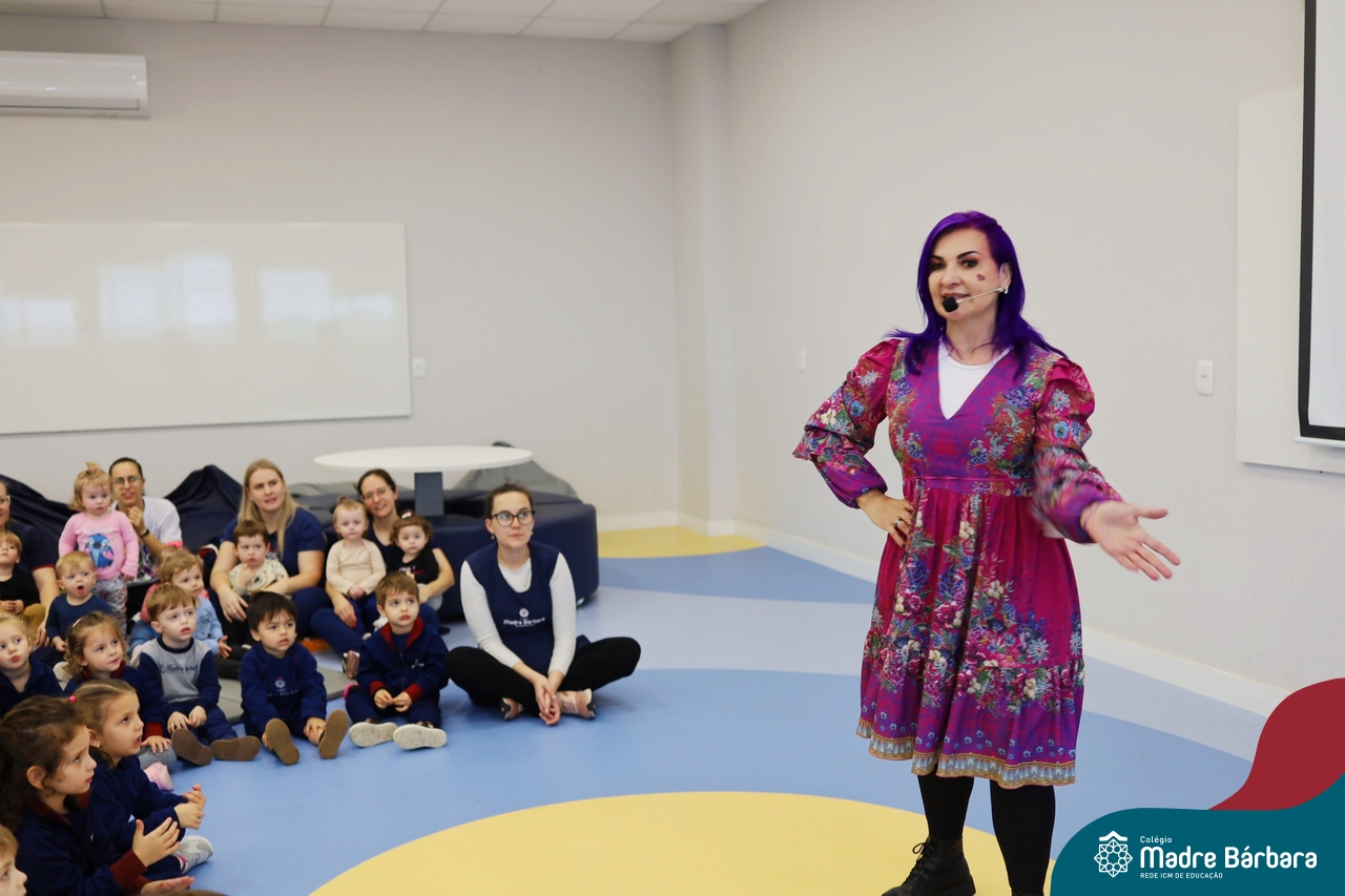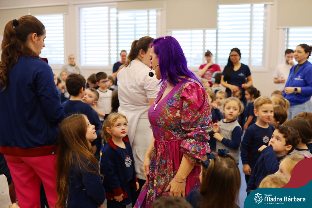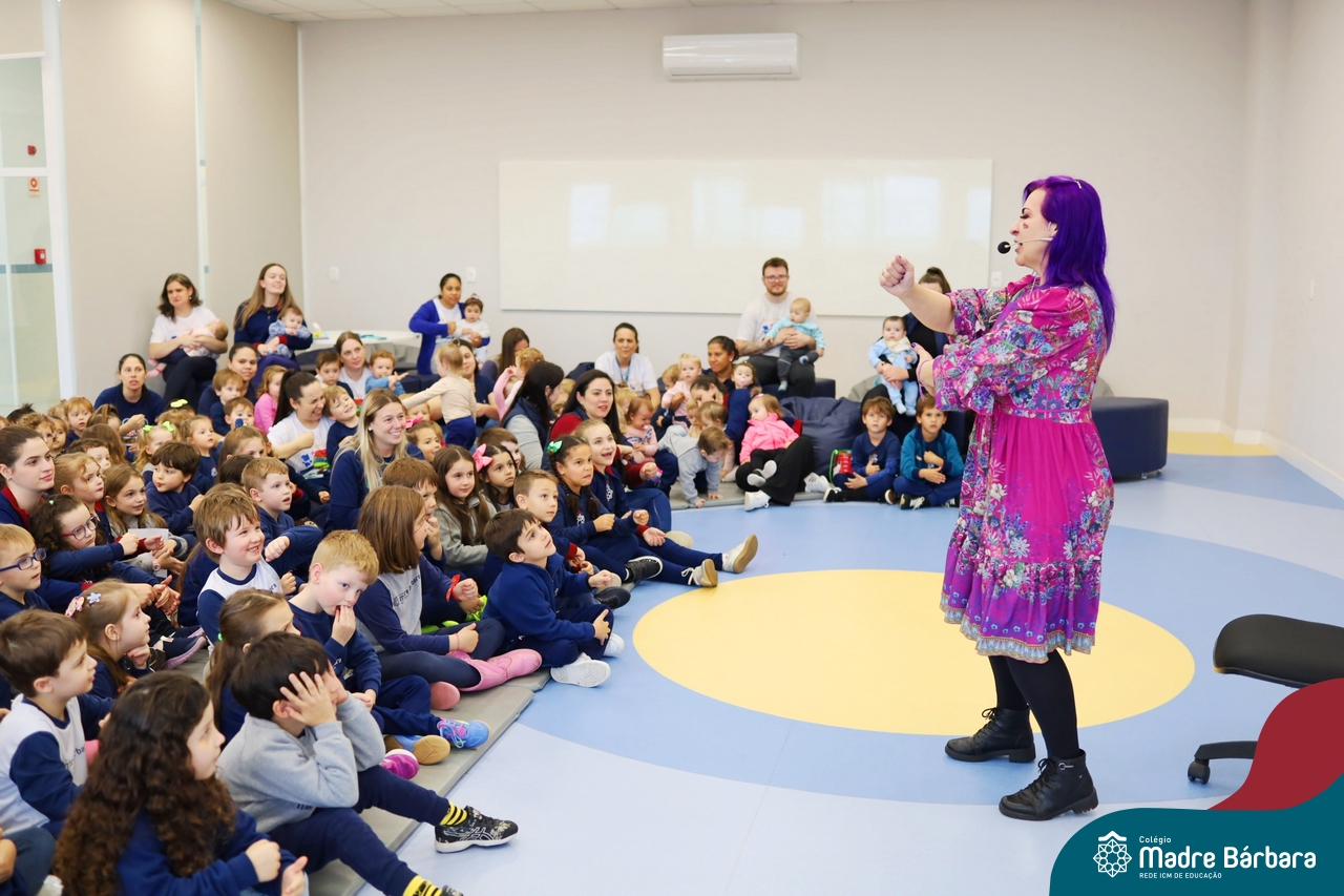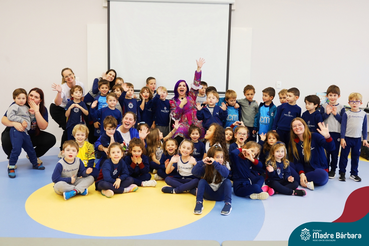 Outubro chegou trazendo magia e encantamento para as crianças da Educação Infantil! Nesta quarta-feira, dia 01.10, o Colégio Madre Bárbara – Rede ICM deu início à programação especial do Mês da Criança com uma convidada muito querida: a escritora Léia Cassol.