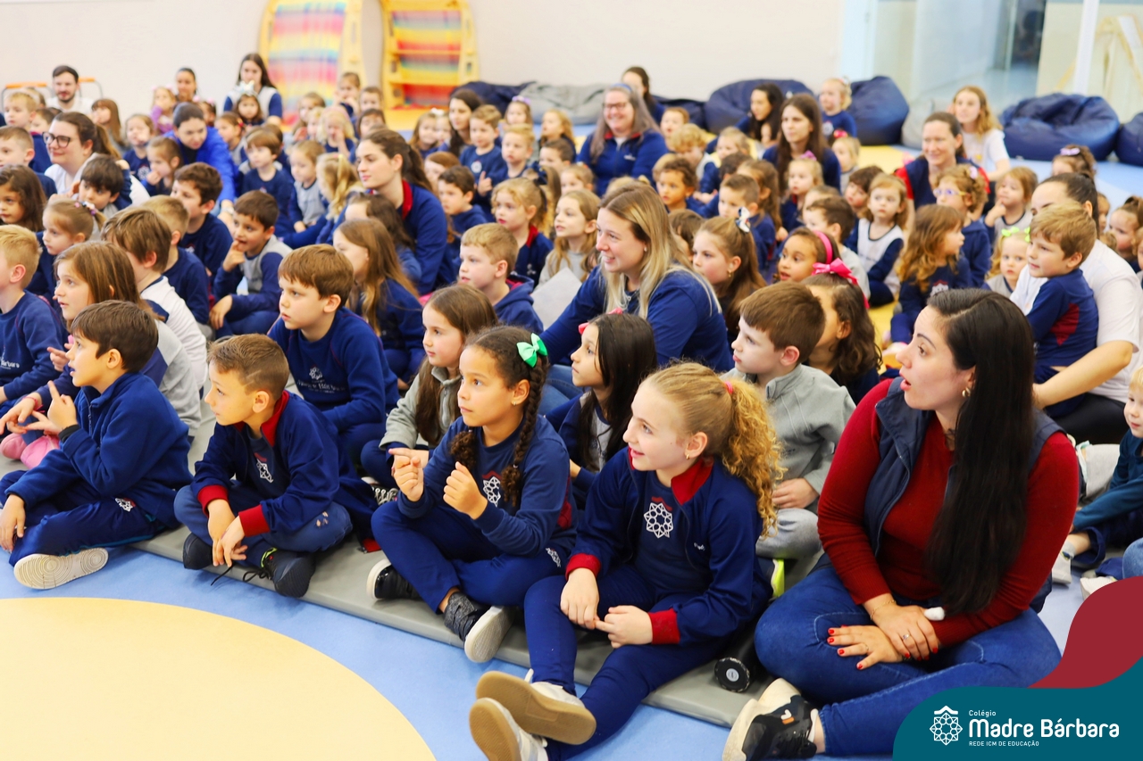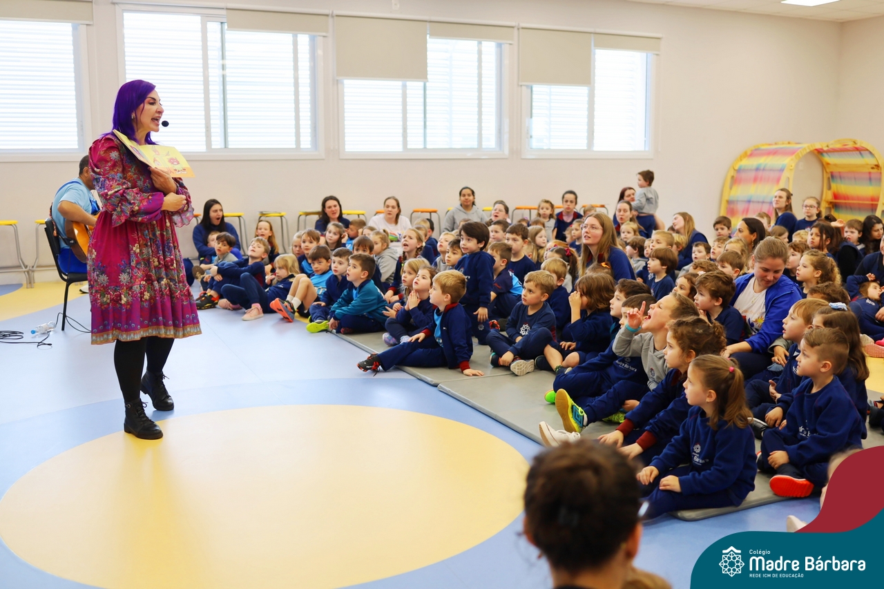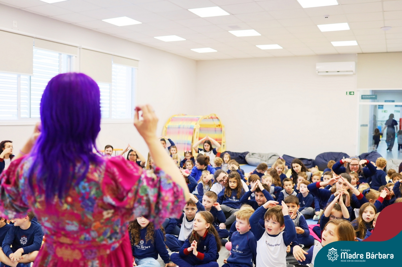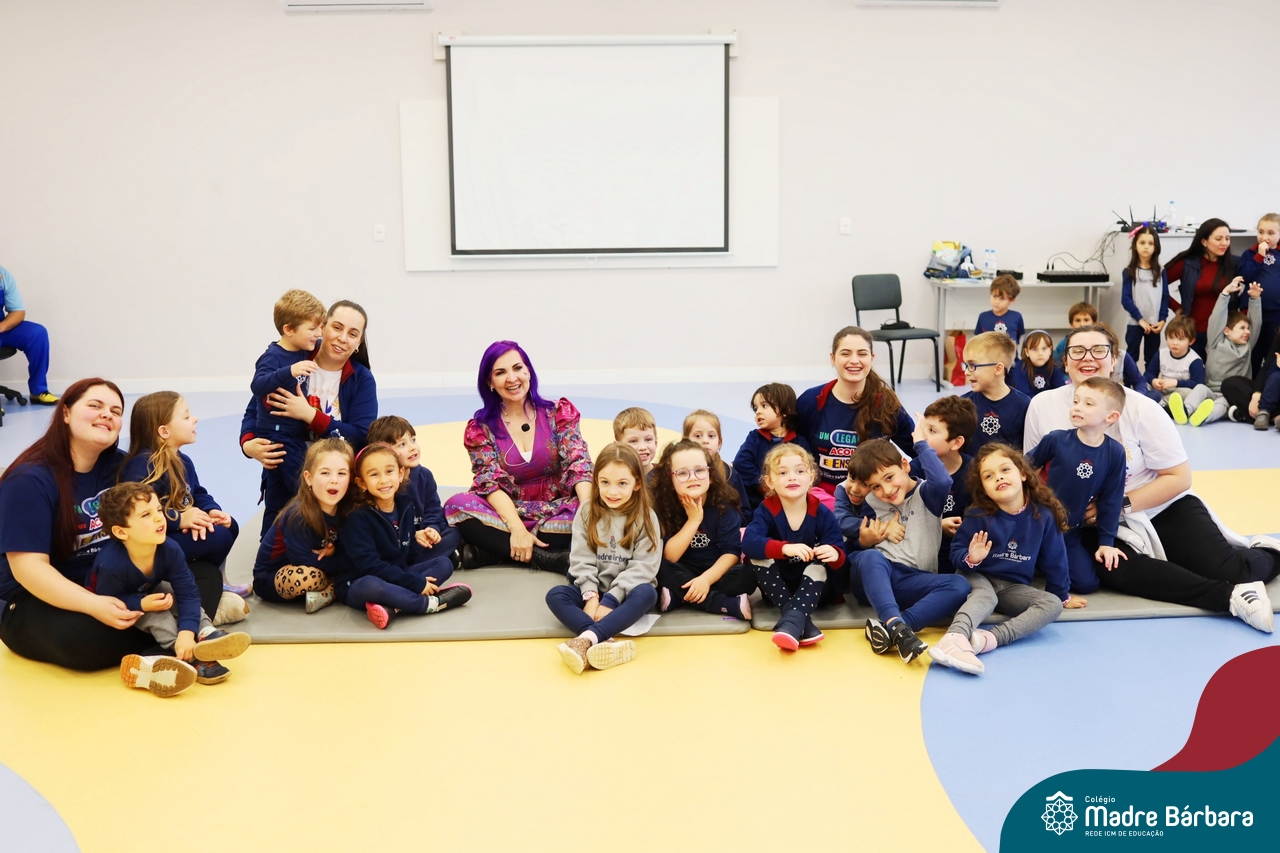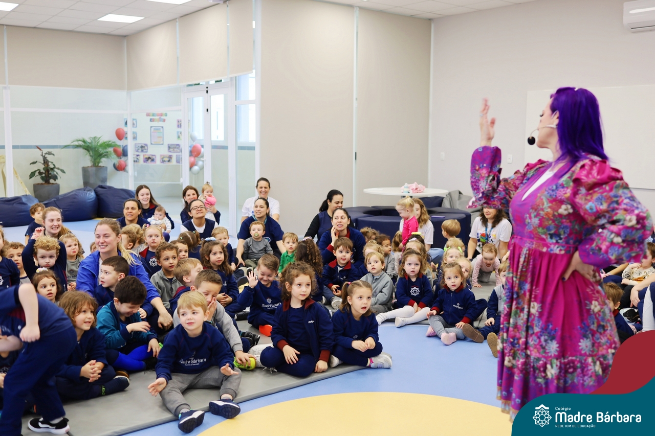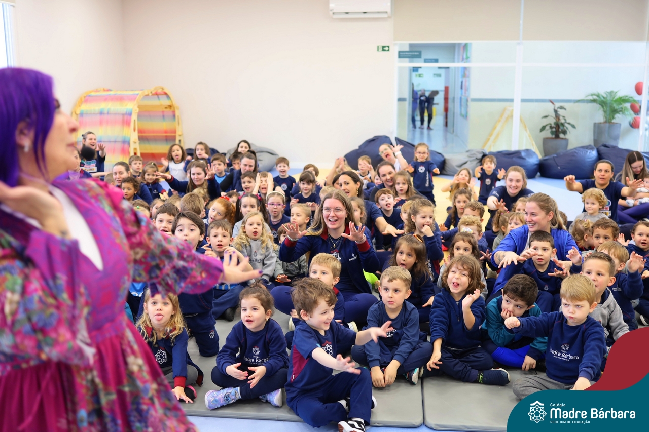 Outubro chegou trazendo magia e encantamento para as crianças da Educação Infantil! Nesta quarta-feira, dia 01.10, o Colégio Madre Bárbara – Rede ICM deu início à programação especial do Mês da Criança com uma convidada muito querida: a escritora Léia Cassol.