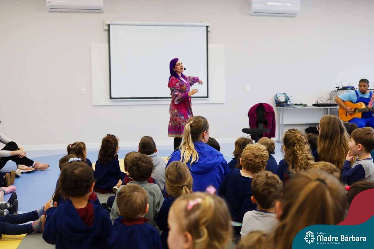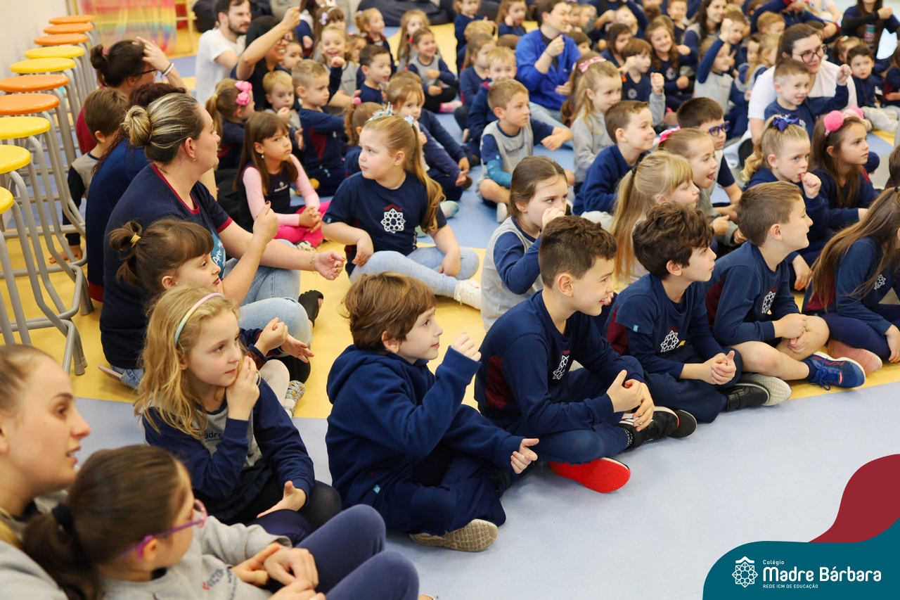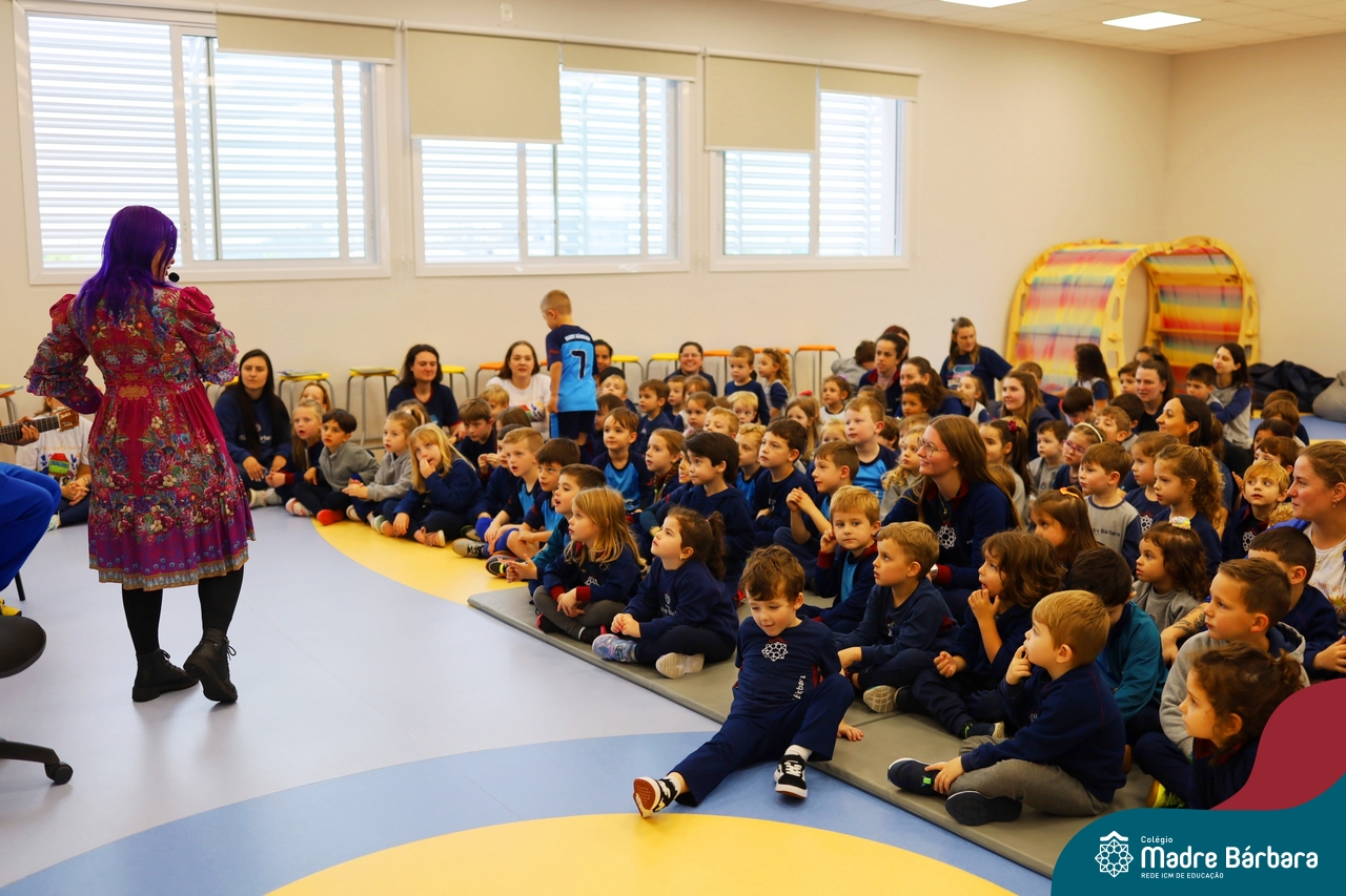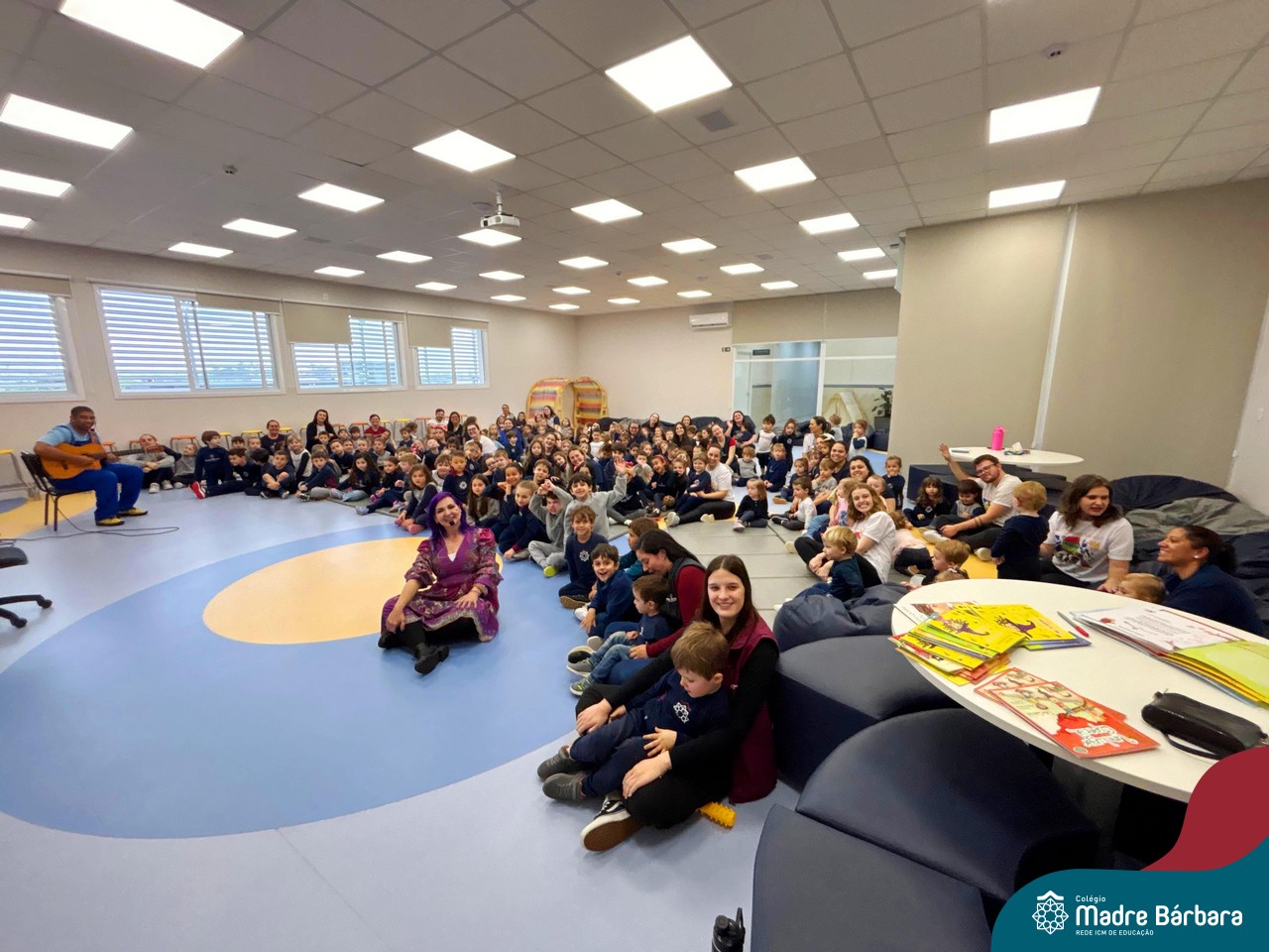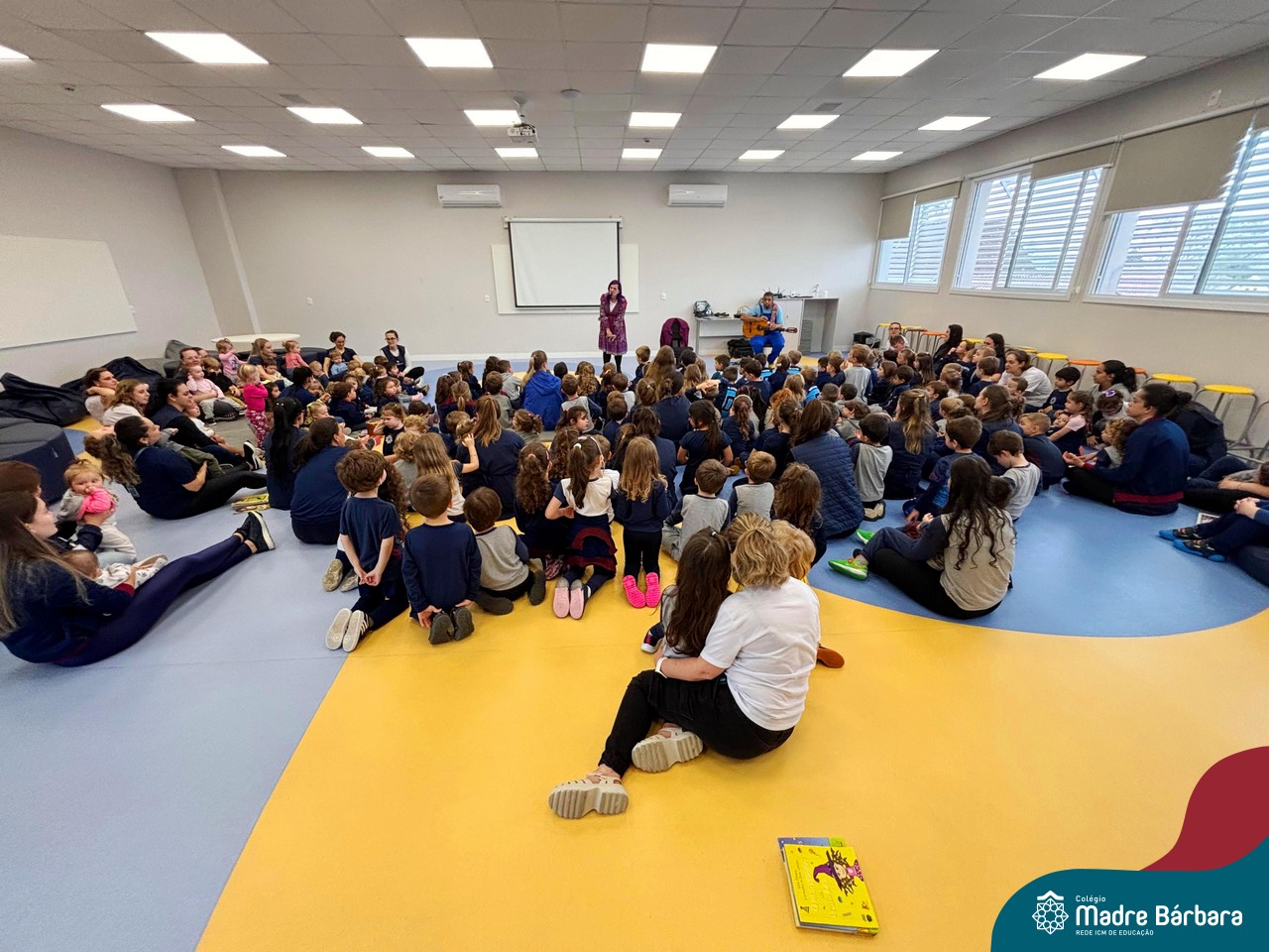 Outubro chegou trazendo magia e encantamento para as crianças da Educação Infantil! Nesta quarta-feira, dia 01.10, o Colégio Madre Bárbara – Rede ICM deu início à programação especial do Mês da Criança com uma convidada muito querida: a escritora Léia Cassol.