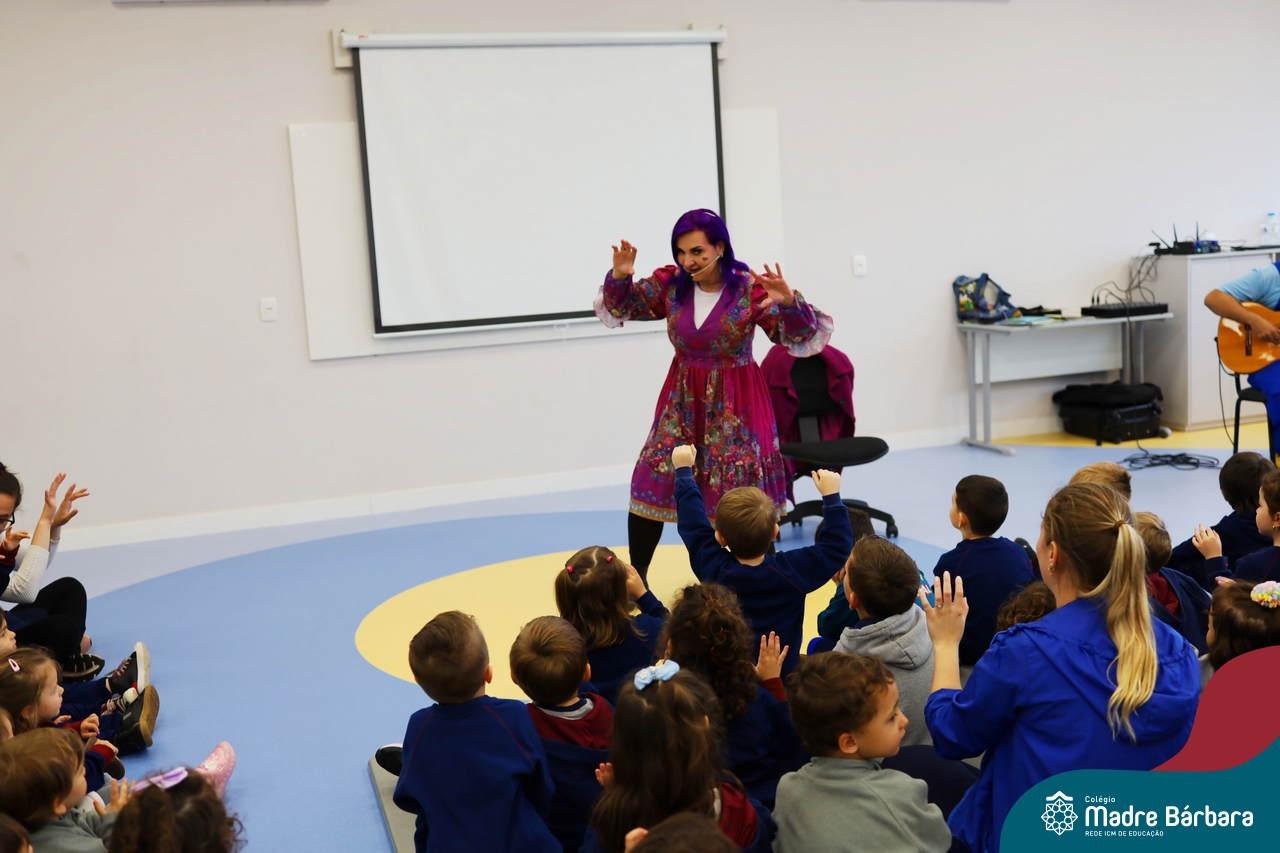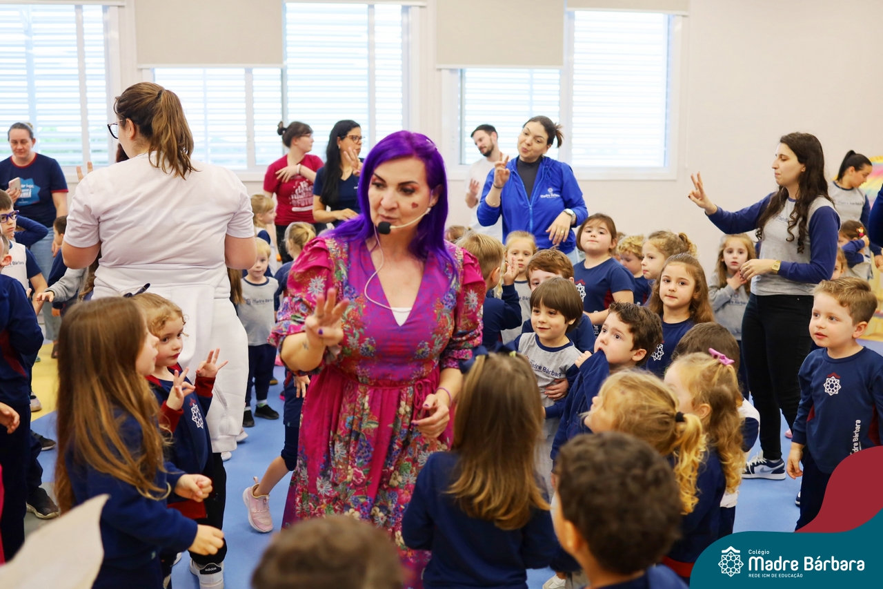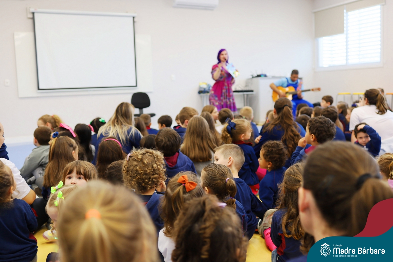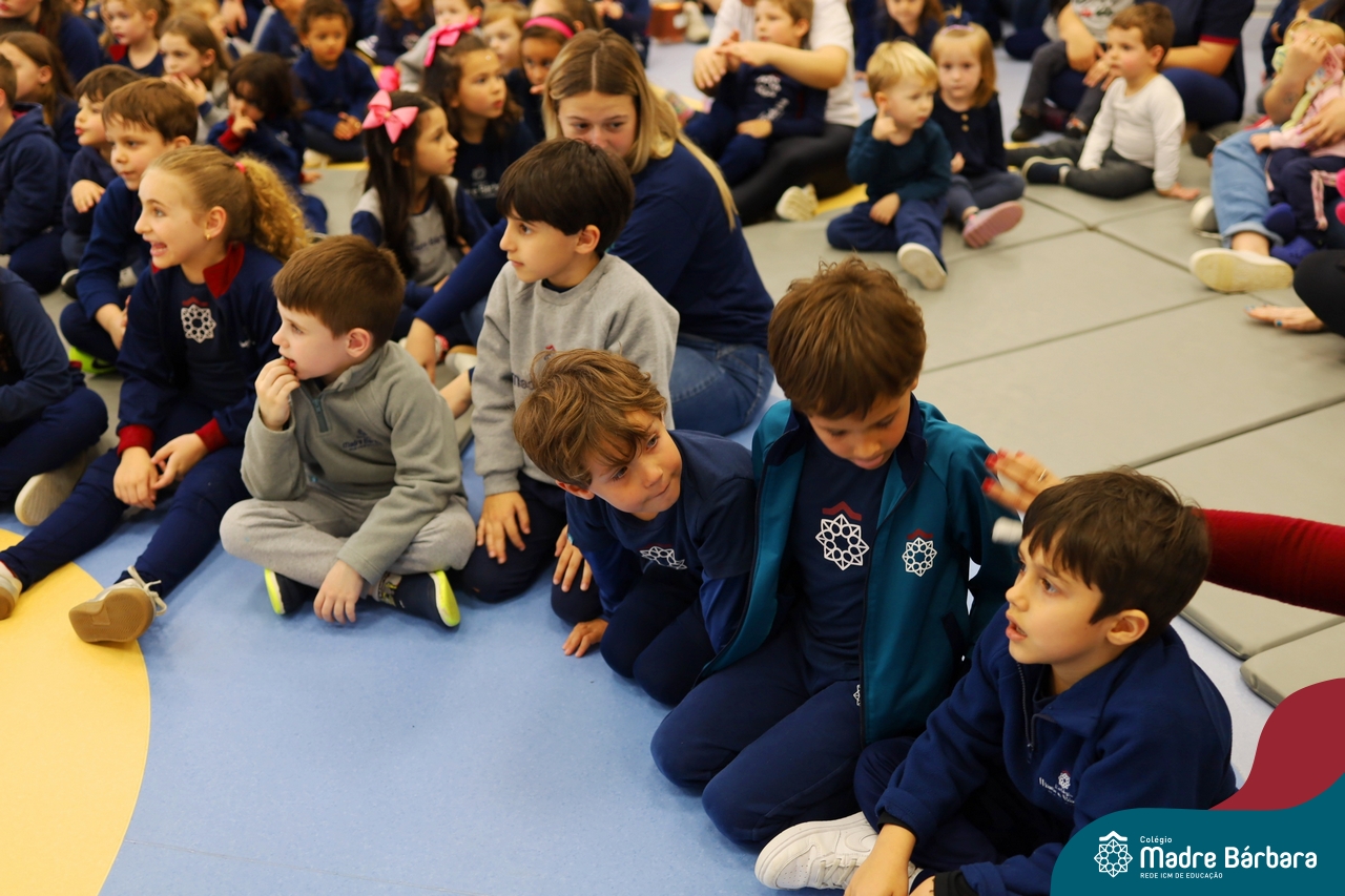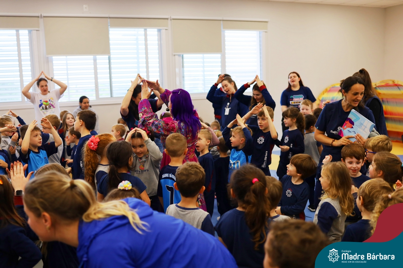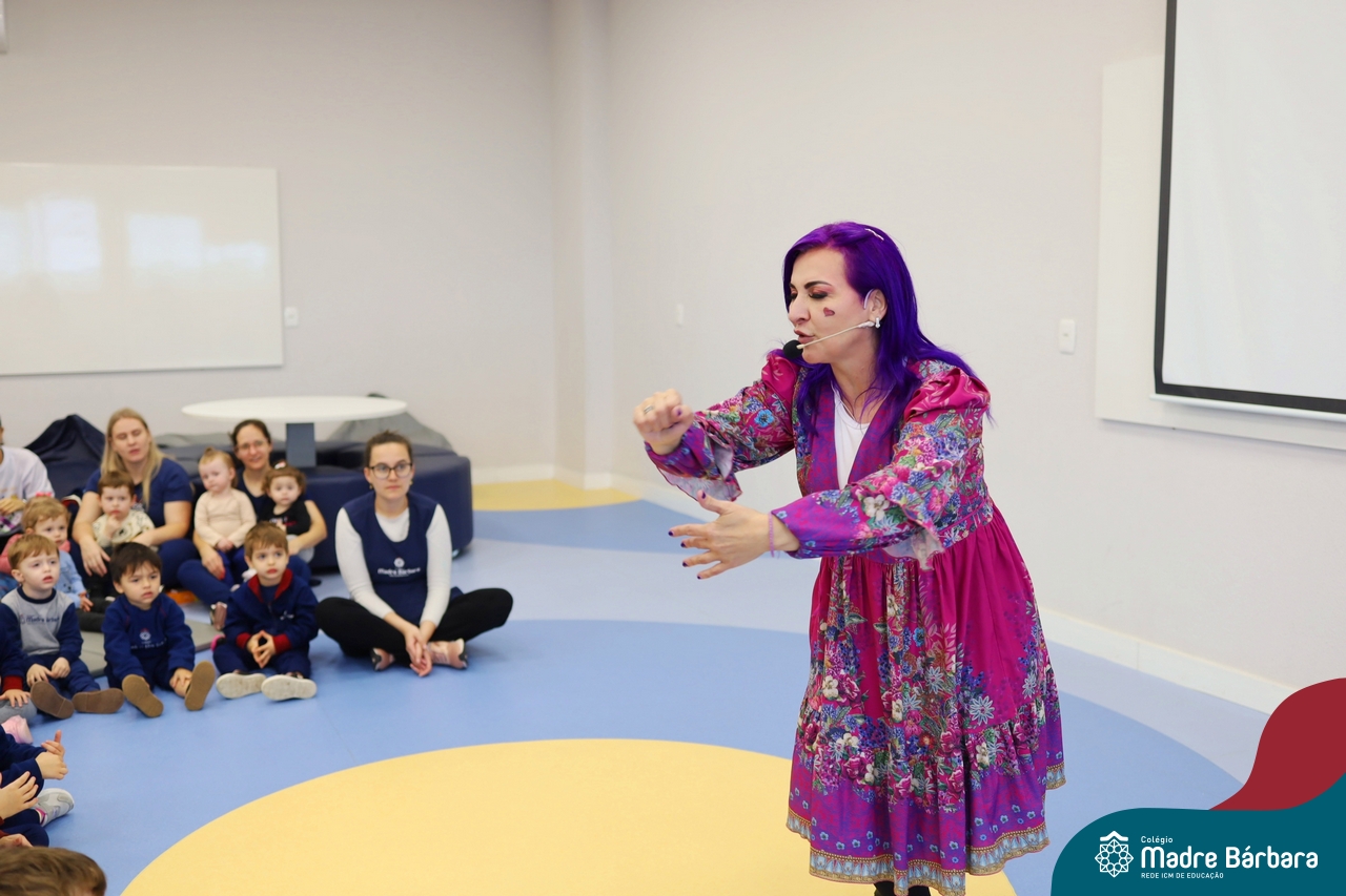 Outubro chegou trazendo magia e encantamento para as crianças da Educação Infantil! Nesta quarta-feira, dia 01.10, o Colégio Madre Bárbara – Rede ICM deu início à programação especial do Mês da Criança com uma convidada muito querida: a escritora Léia Cassol.