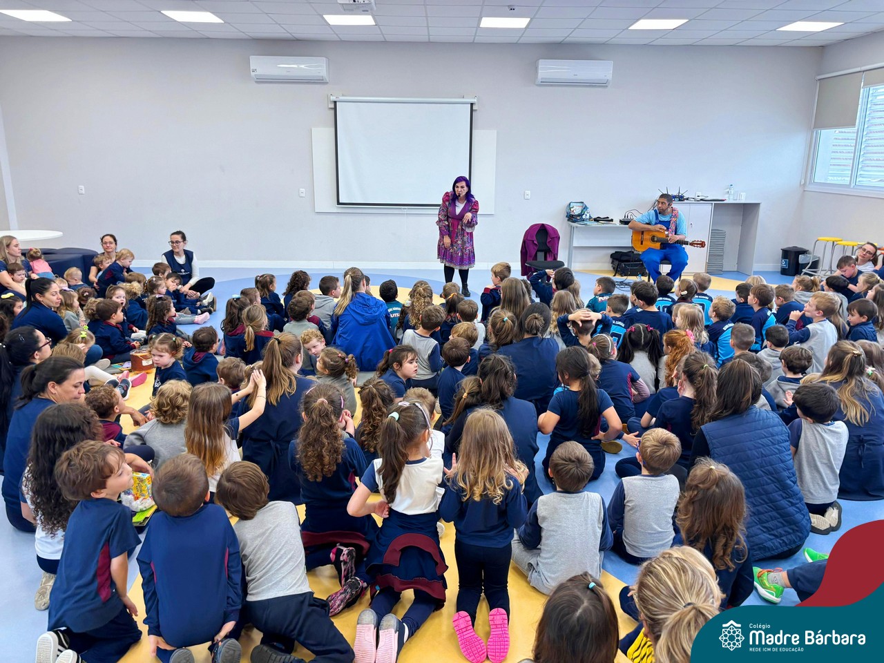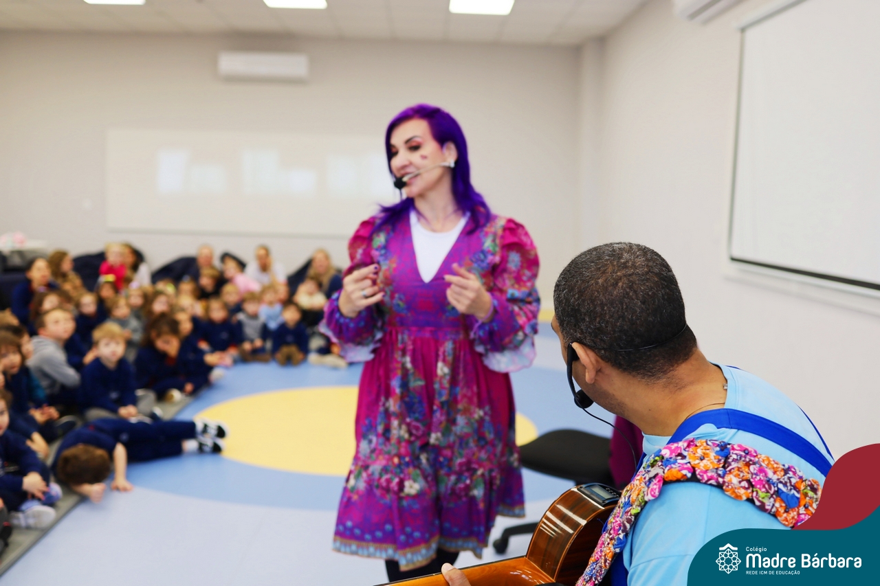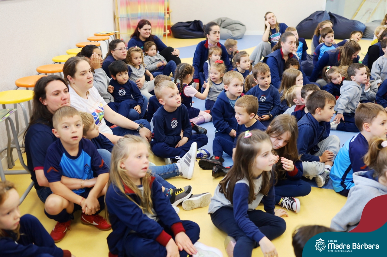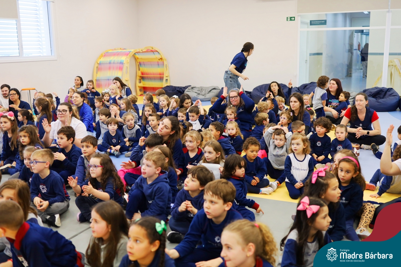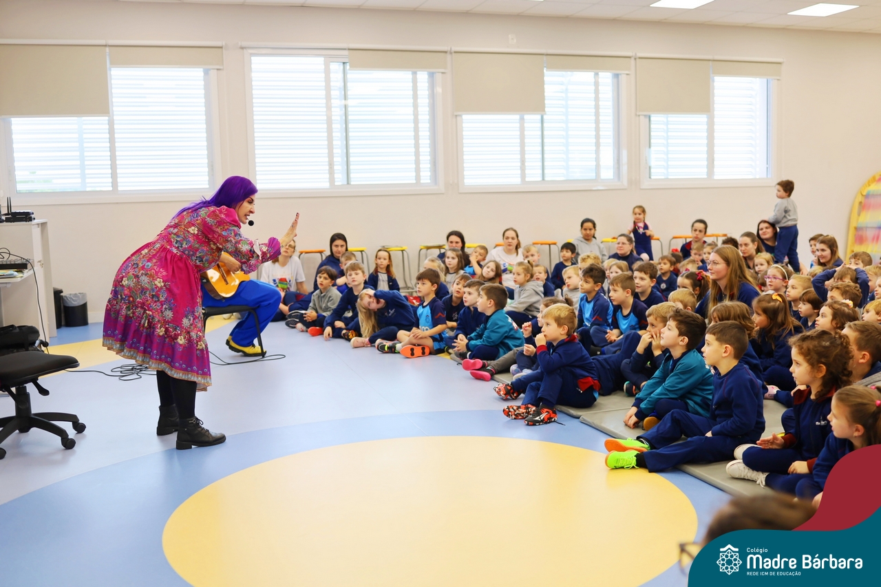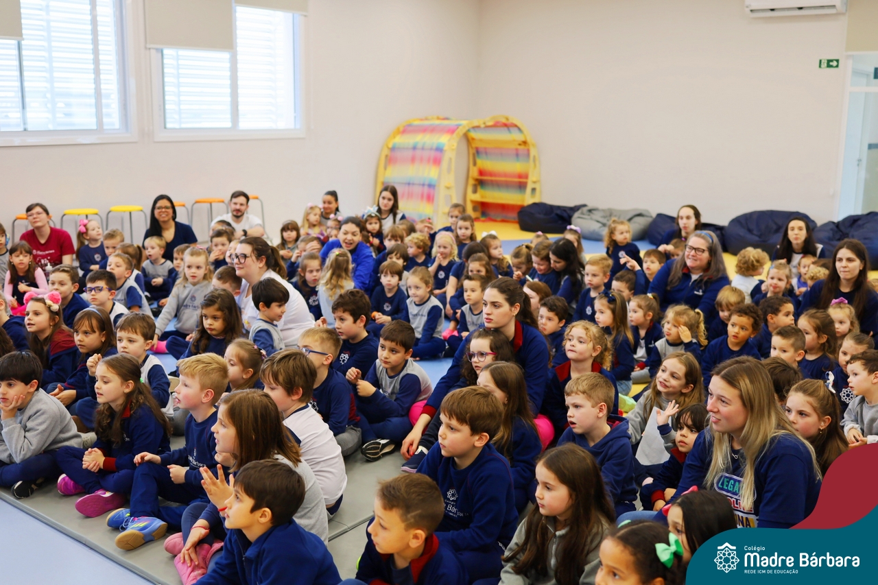 Outubro chegou trazendo magia e encantamento para as crianças da Educação Infantil! Nesta quarta-feira, dia 01.10, o Colégio Madre Bárbara – Rede ICM deu início à programação especial do Mês da Criança com uma convidada muito querida: a escritora Léia Cassol.