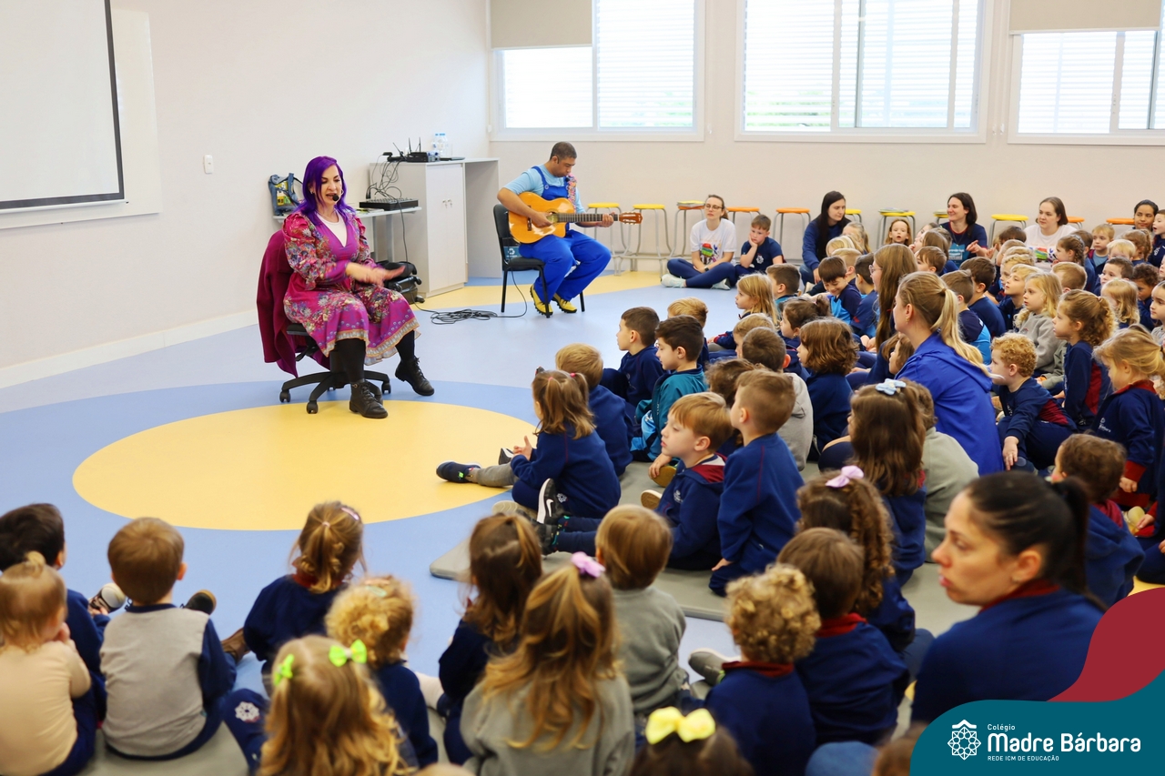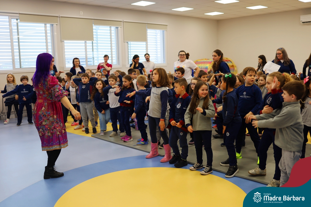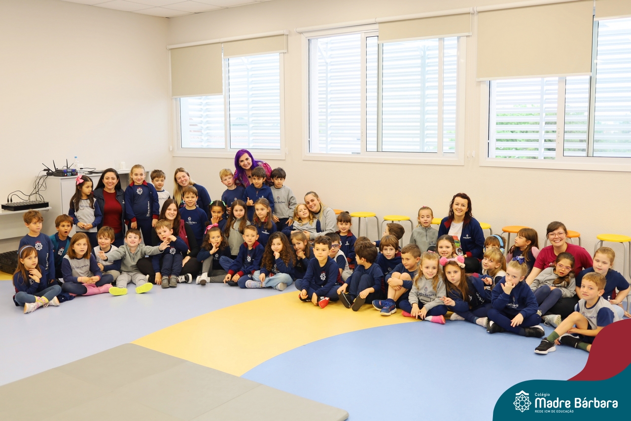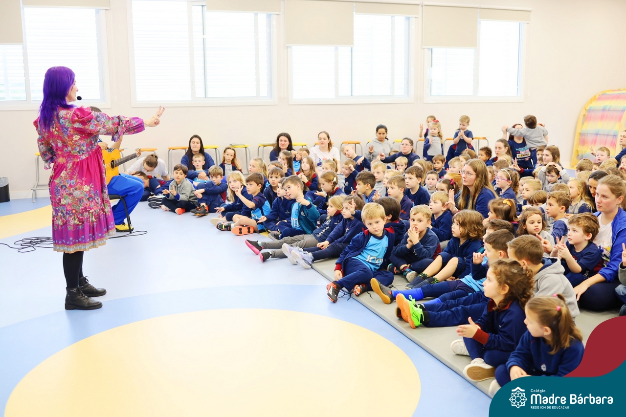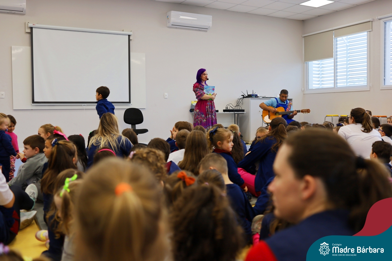 Outubro chegou trazendo magia e encantamento para as crianças da Educação Infantil! Nesta quarta-feira, dia 01.10, o Colégio Madre Bárbara – Rede ICM deu início à programação especial do Mês da Criança com uma convidada muito querida: a escritora Léia Cassol.