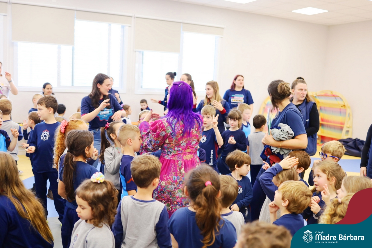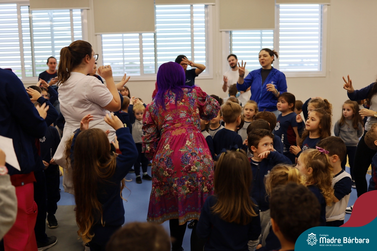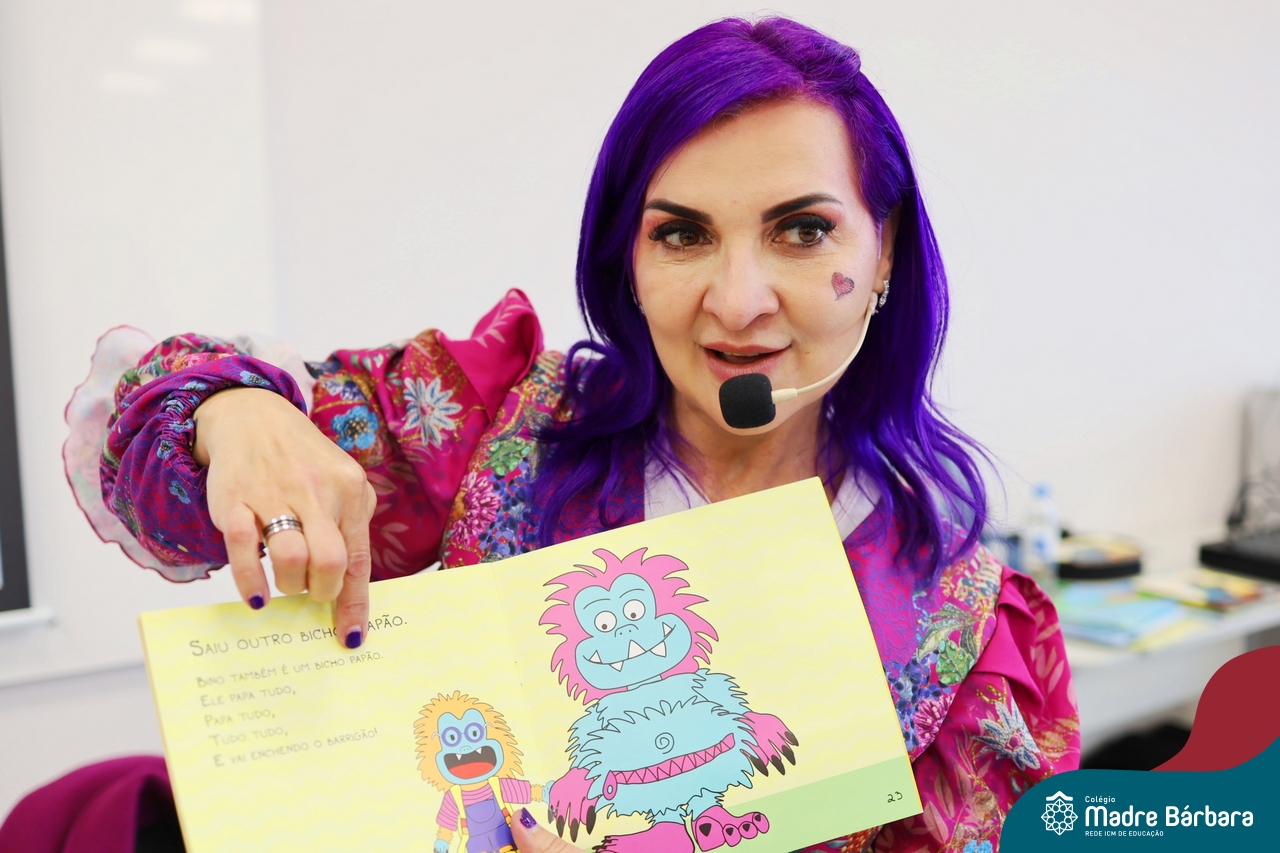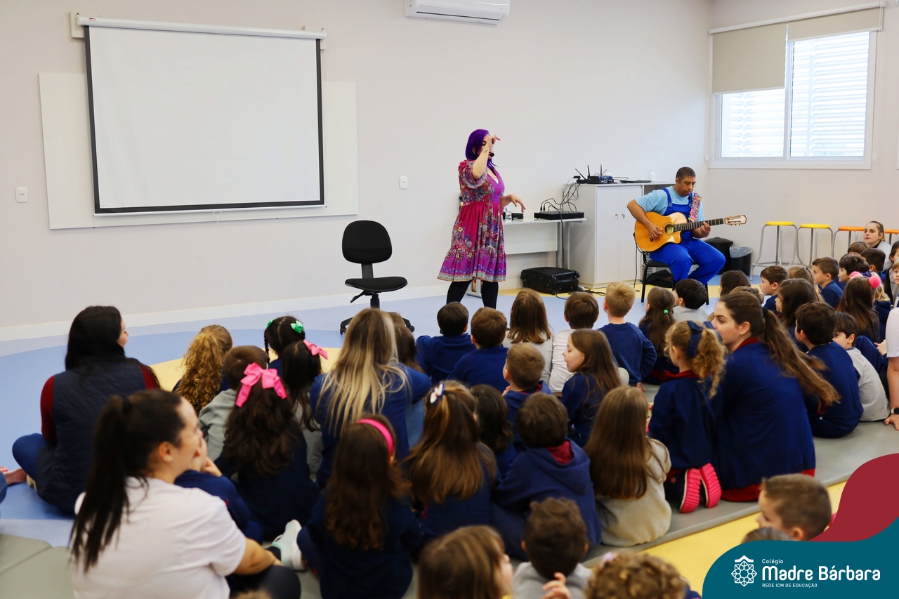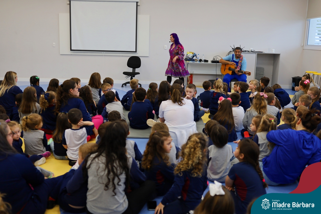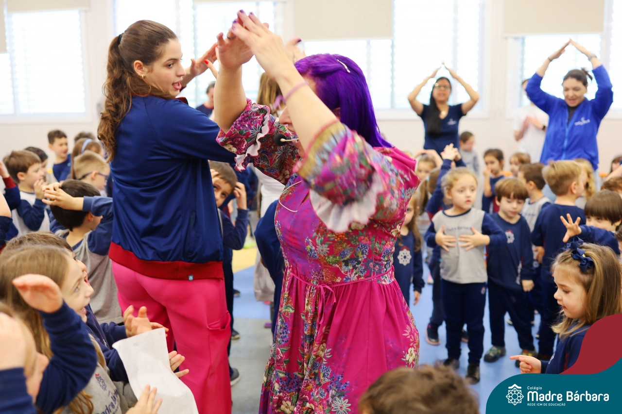 Outubro chegou trazendo magia e encantamento para as crianças da Educação Infantil! Nesta quarta-feira, dia 01.10, o Colégio Madre Bárbara – Rede ICM deu início à programação especial do Mês da Criança com uma convidada muito querida: a escritora Léia Cassol.