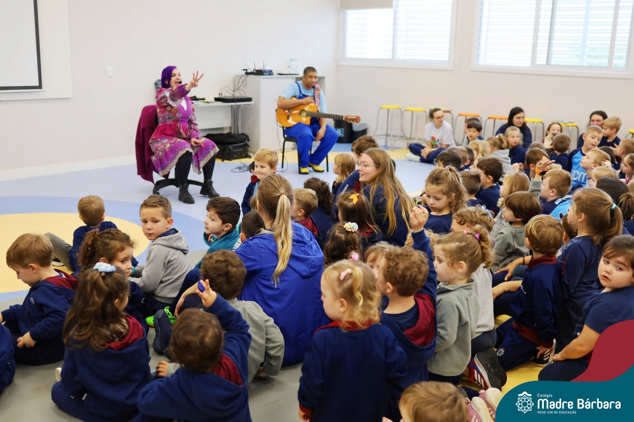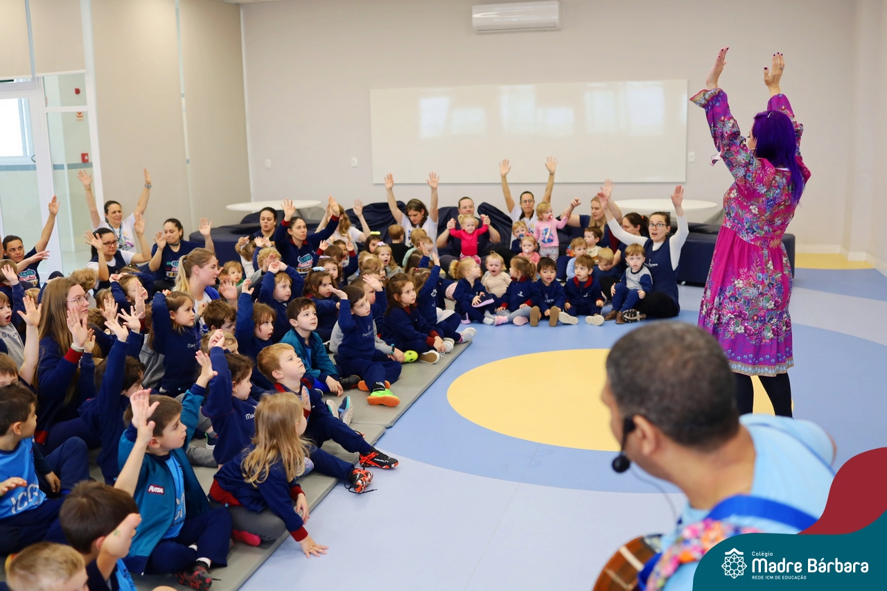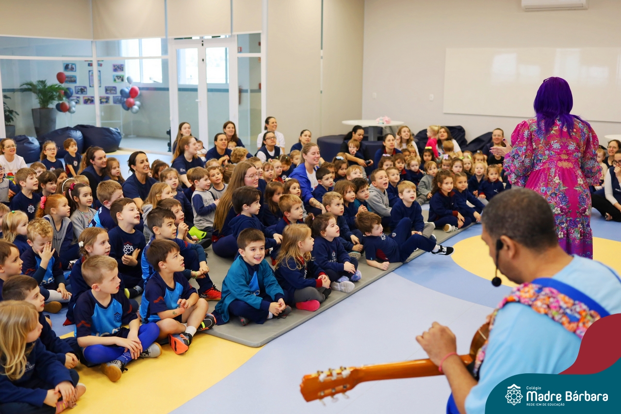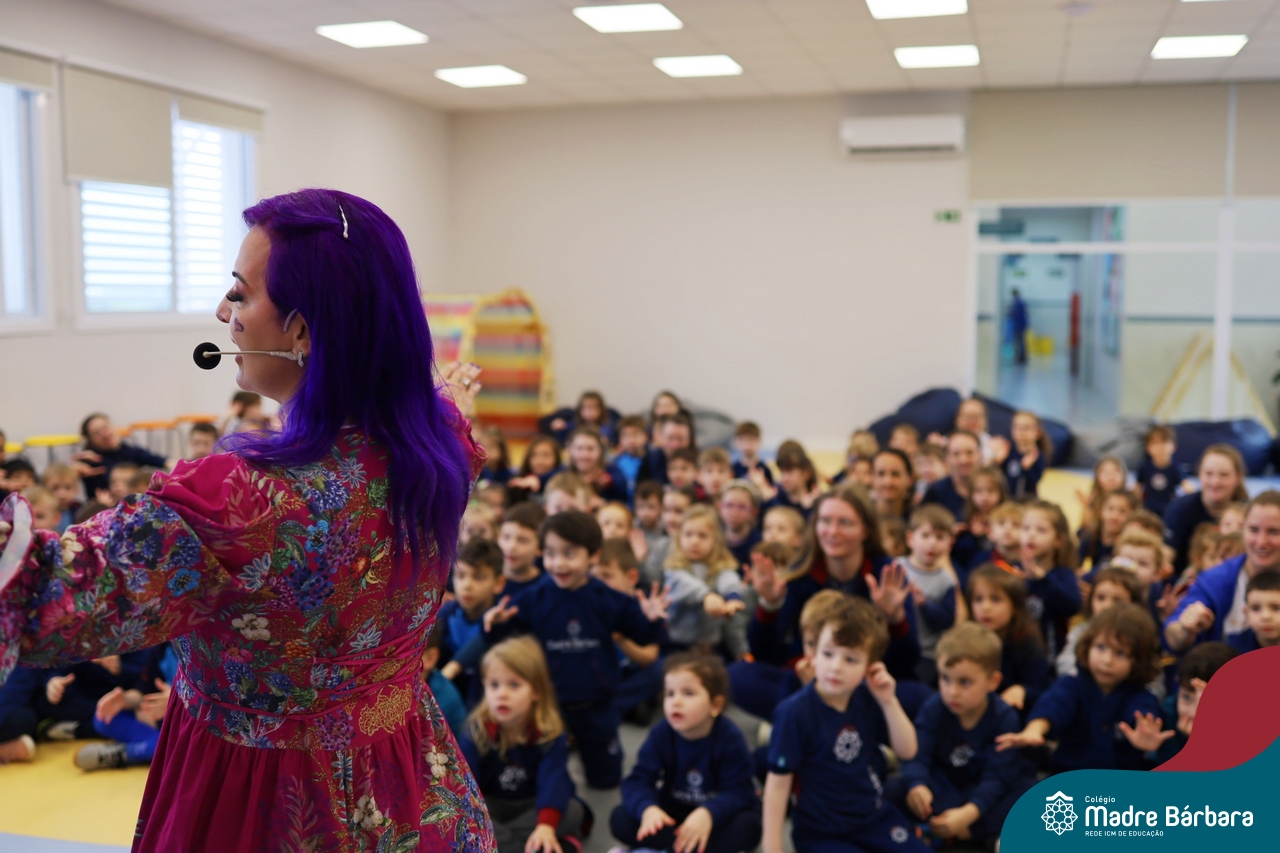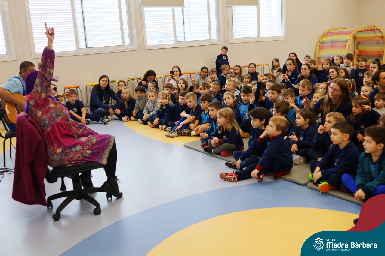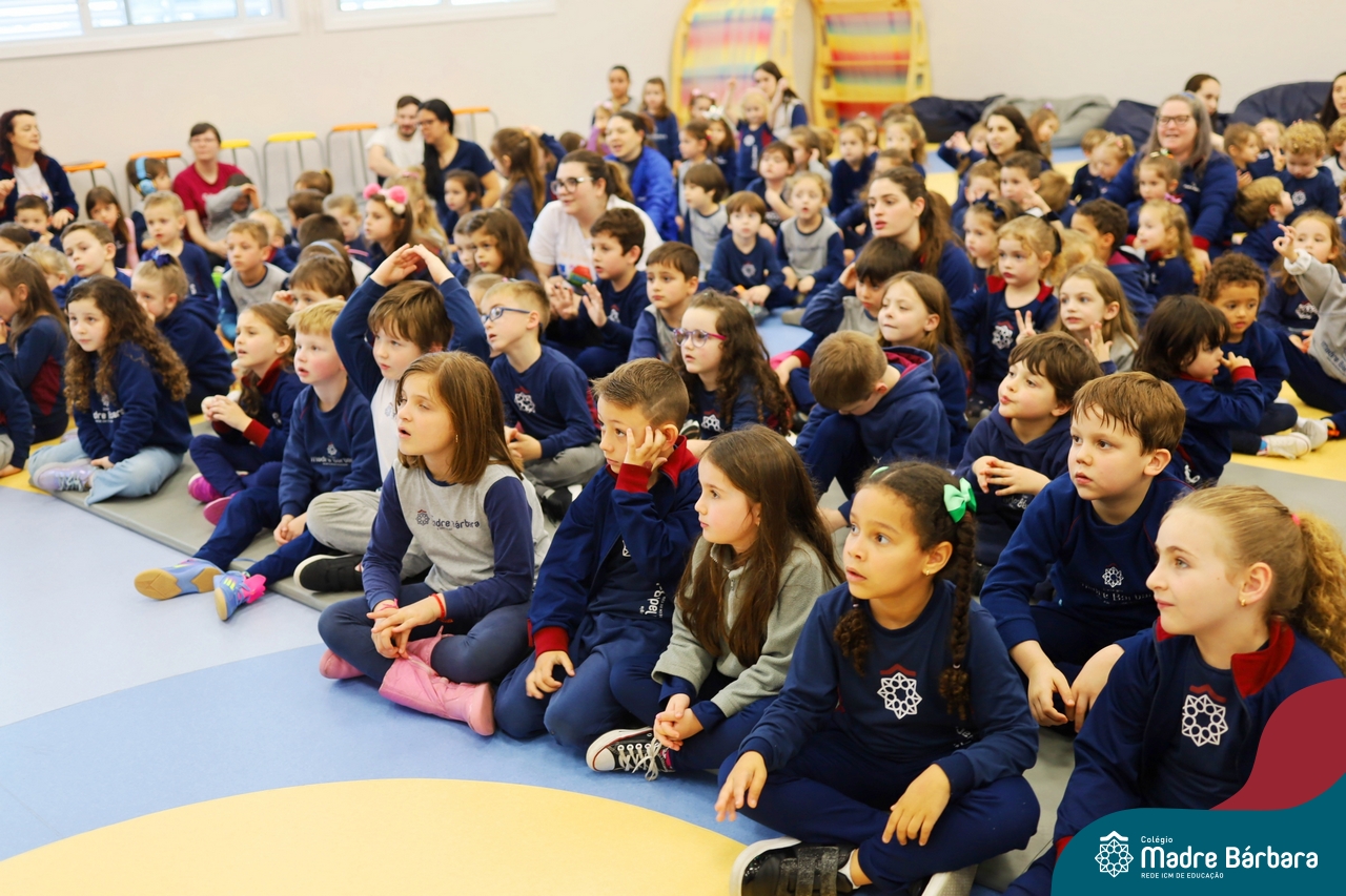 Outubro chegou trazendo magia e encantamento para as crianças da Educação Infantil! Nesta quarta-feira, dia 01.10, o Colégio Madre Bárbara – Rede ICM deu início à programação especial do Mês da Criança com uma convidada muito querida: a escritora Léia Cassol.