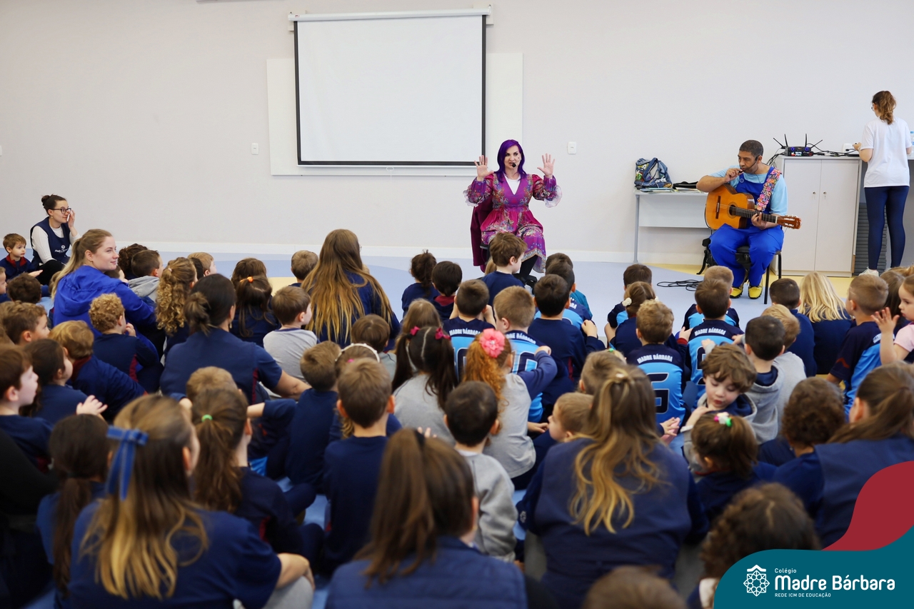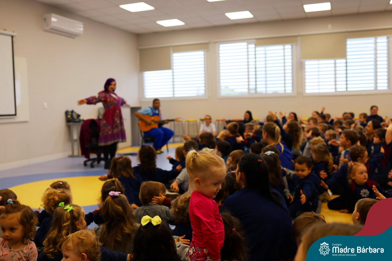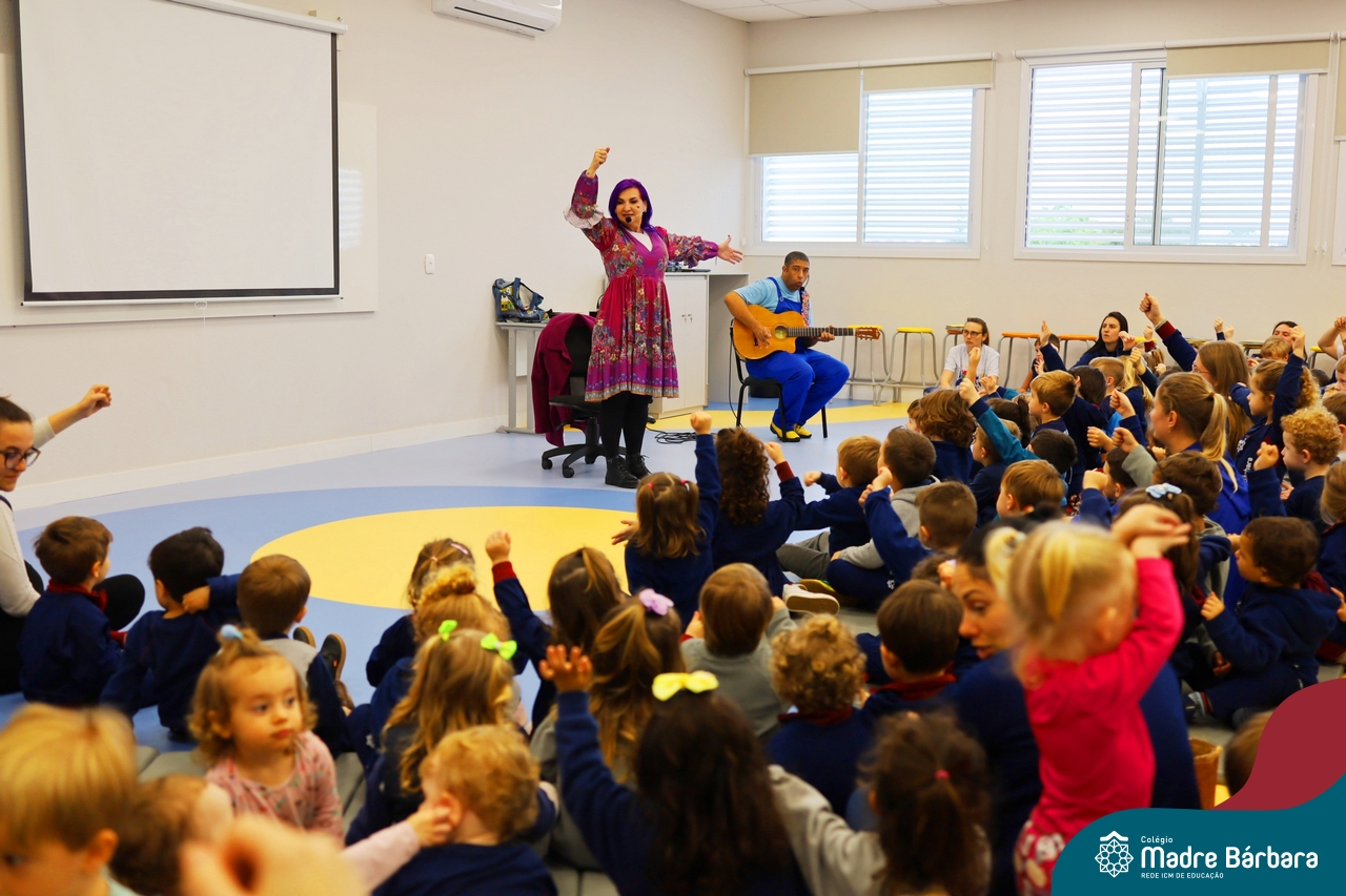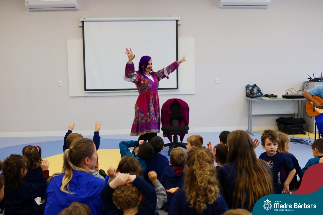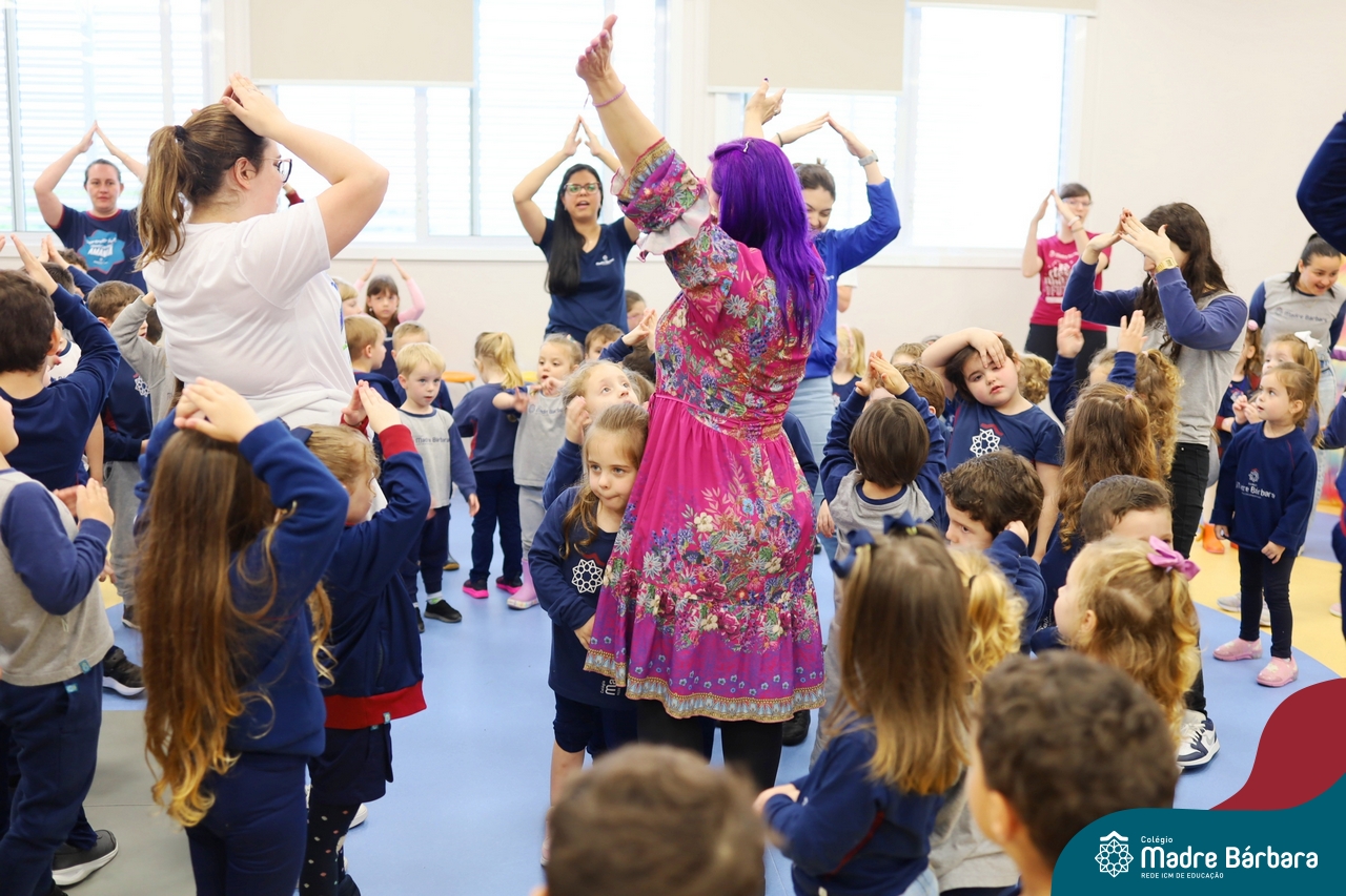 Outubro chegou trazendo magia e encantamento para as crianças da Educação Infantil! Nesta quarta-feira, dia 01.10, o Colégio Madre Bárbara – Rede ICM deu início à programação especial do Mês da Criança com uma convidada muito querida: a escritora Léia Cassol.