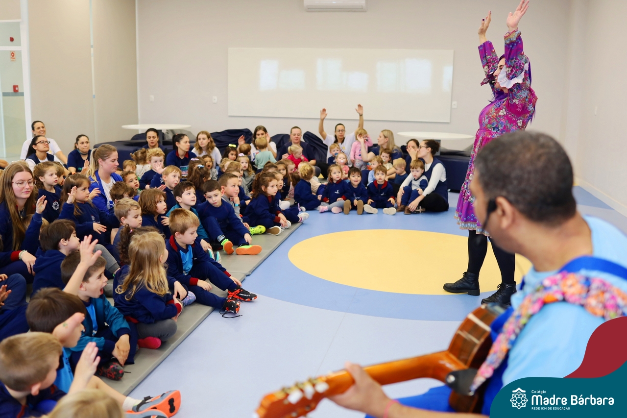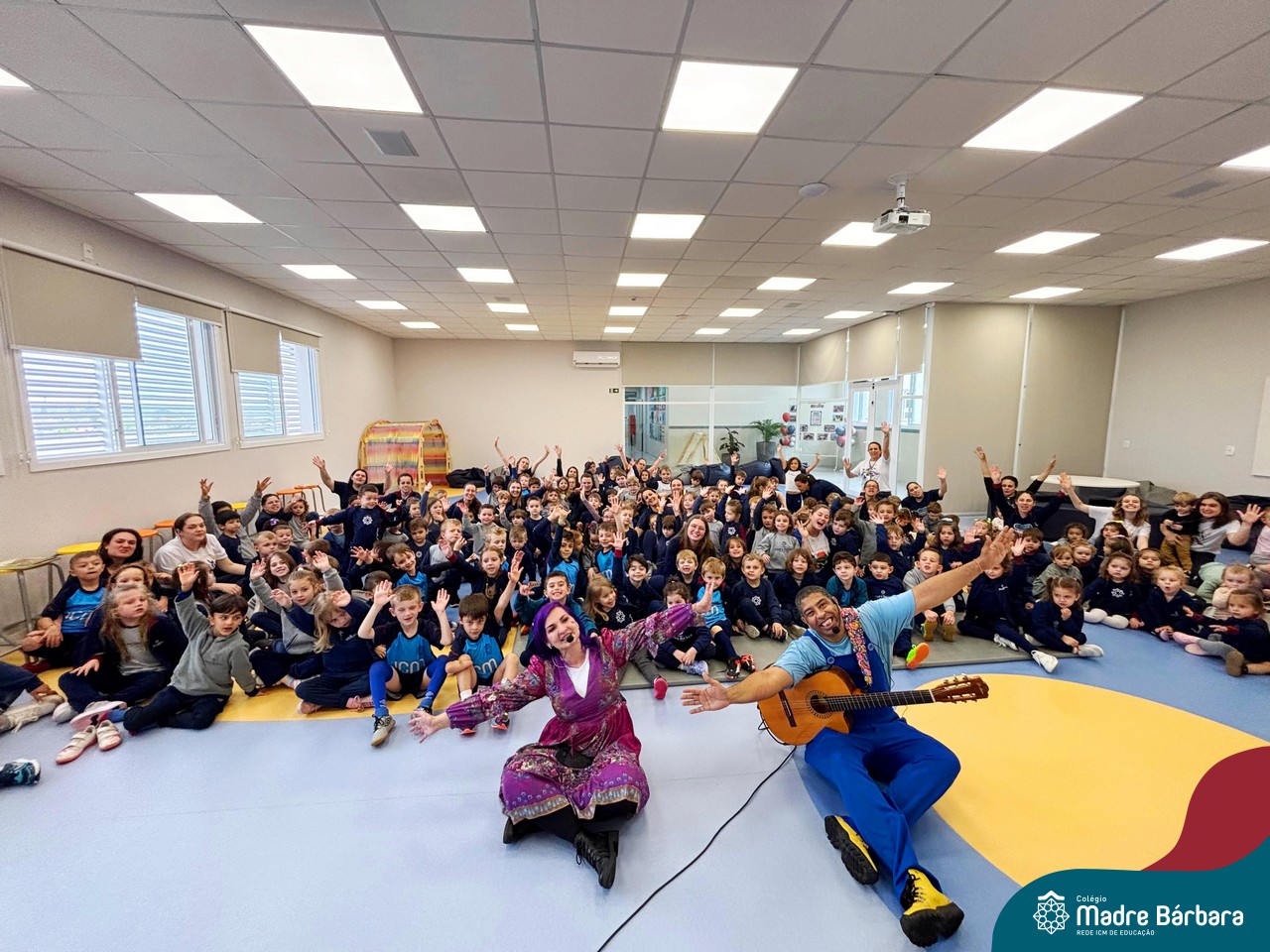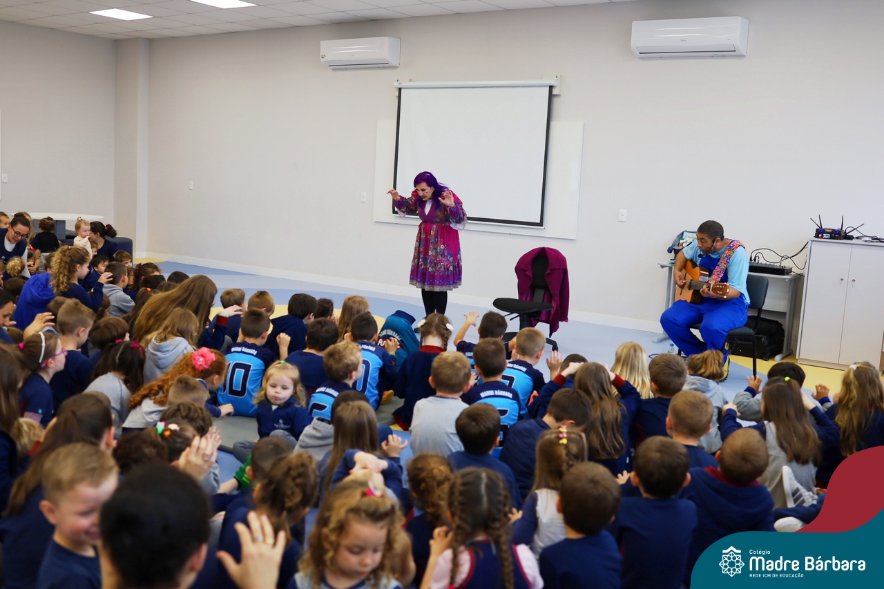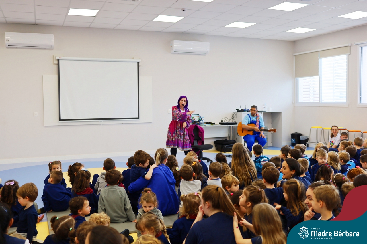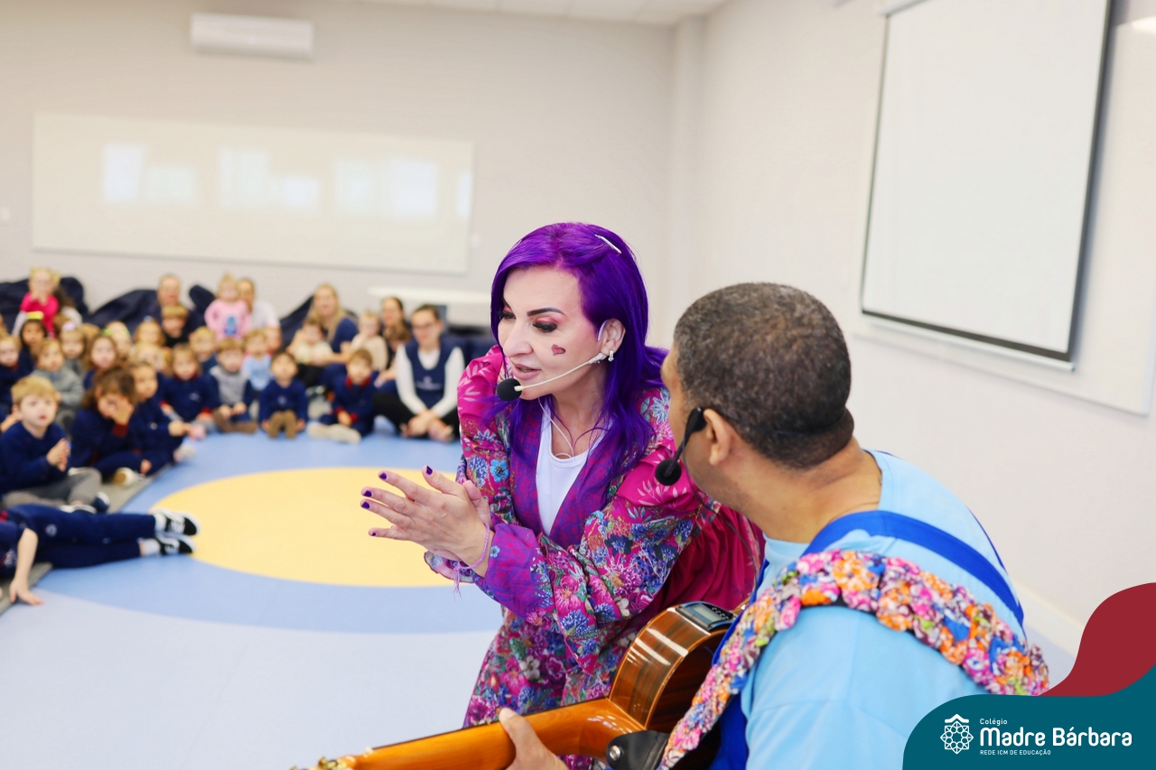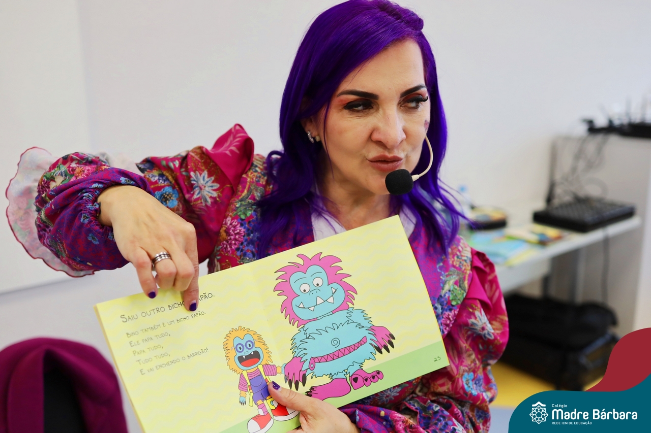 Outubro chegou trazendo magia e encantamento para as crianças da Educação Infantil! Nesta quarta-feira, dia 01.10, o Colégio Madre Bárbara – Rede ICM deu início à programação especial do Mês da Criança com uma convidada muito querida: a escritora Léia Cassol.