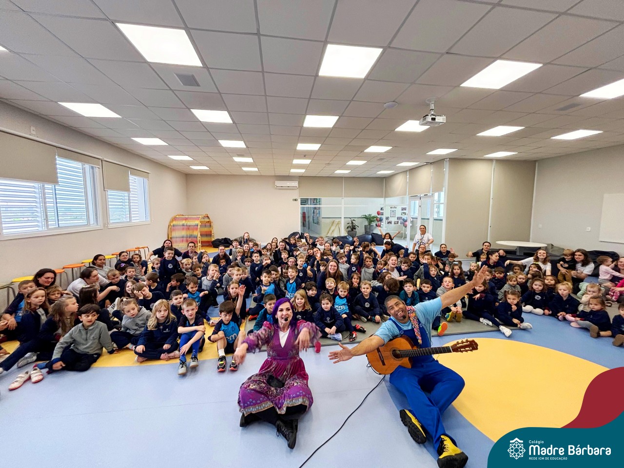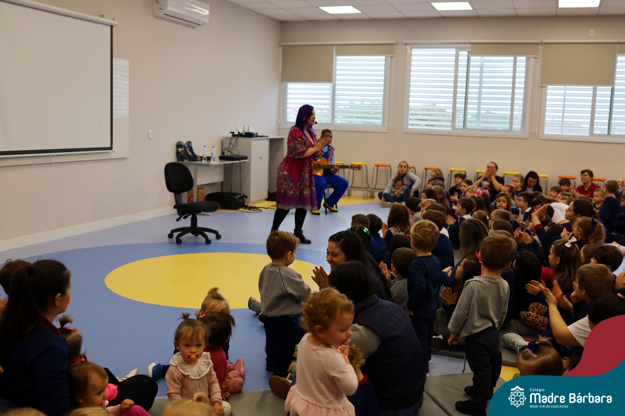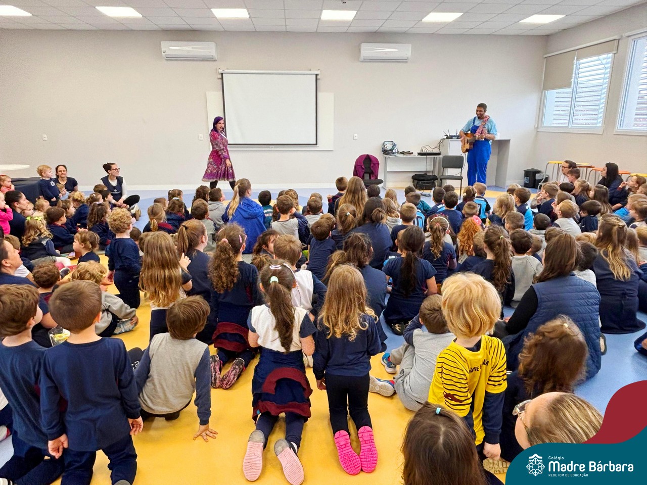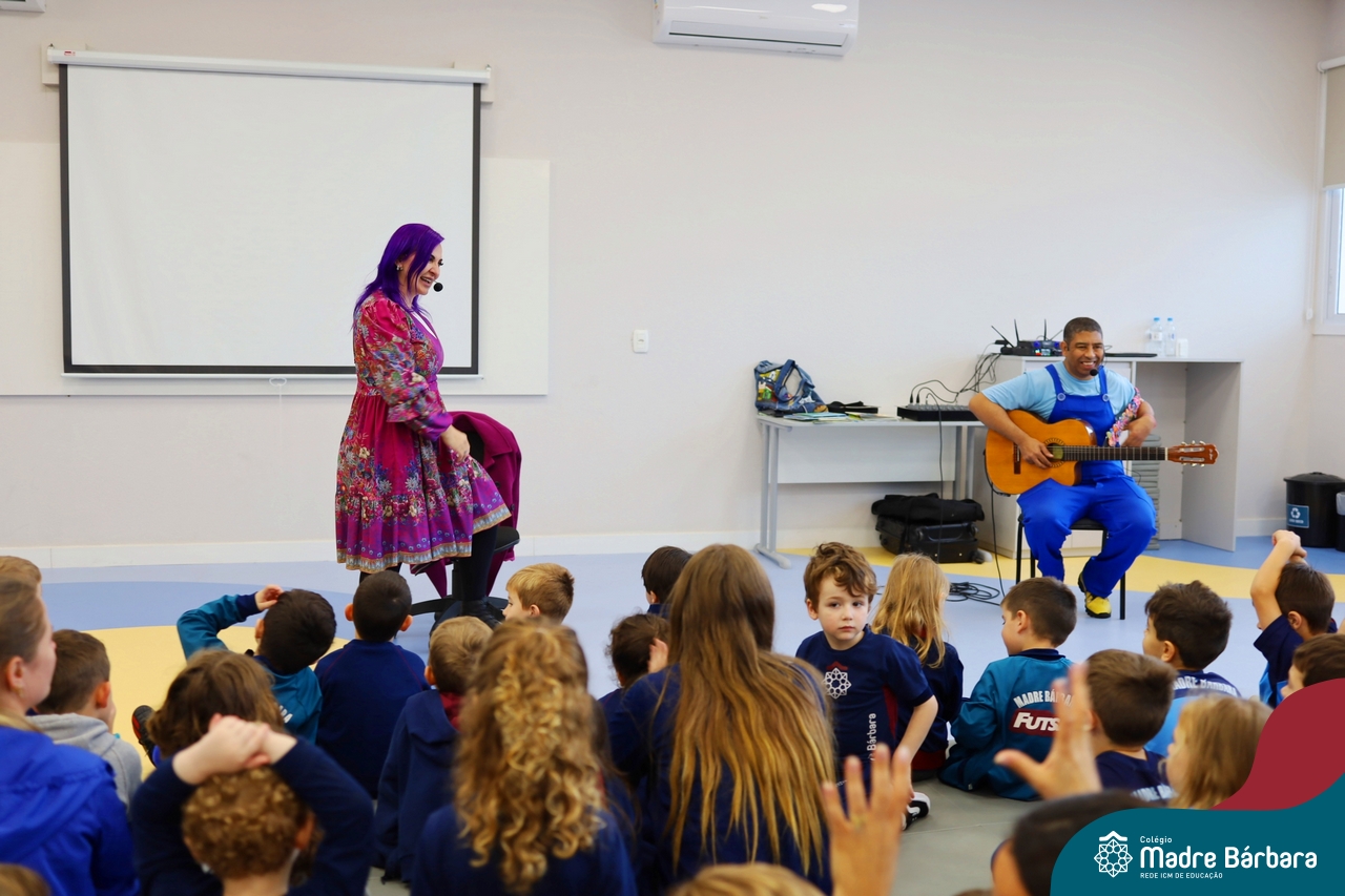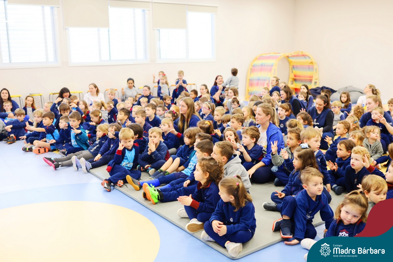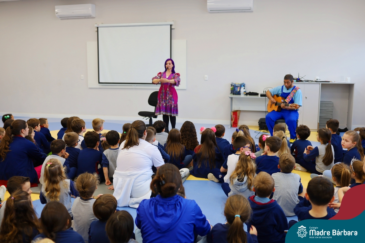 Outubro chegou trazendo magia e encantamento para as crianças da Educação Infantil! Nesta quarta-feira, dia 01.10, o Colégio Madre Bárbara – Rede ICM deu início à programação especial do Mês da Criança com uma convidada muito querida: a escritora Léia Cassol.