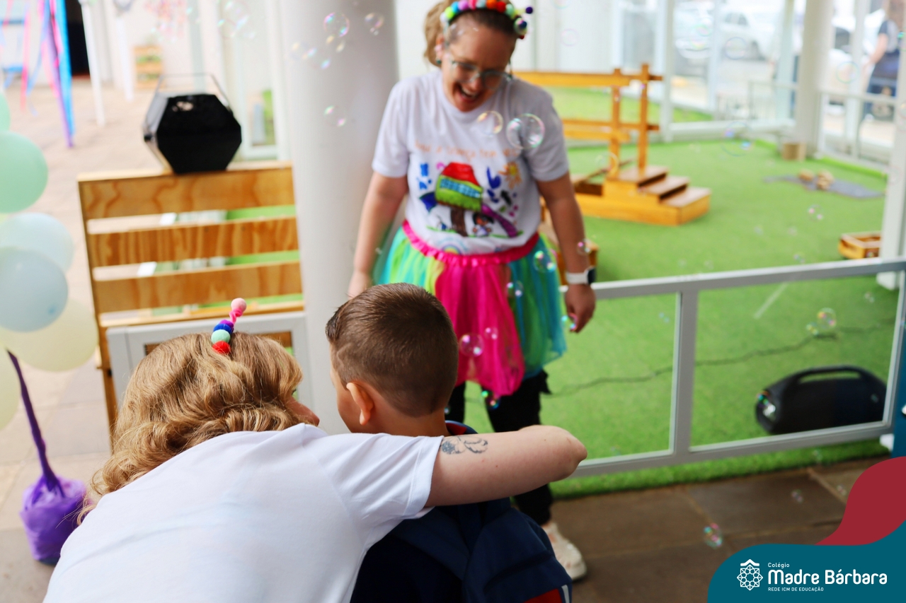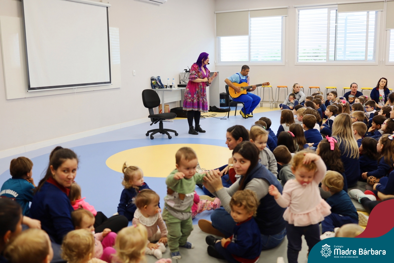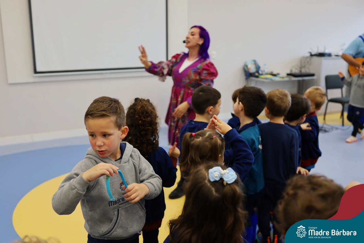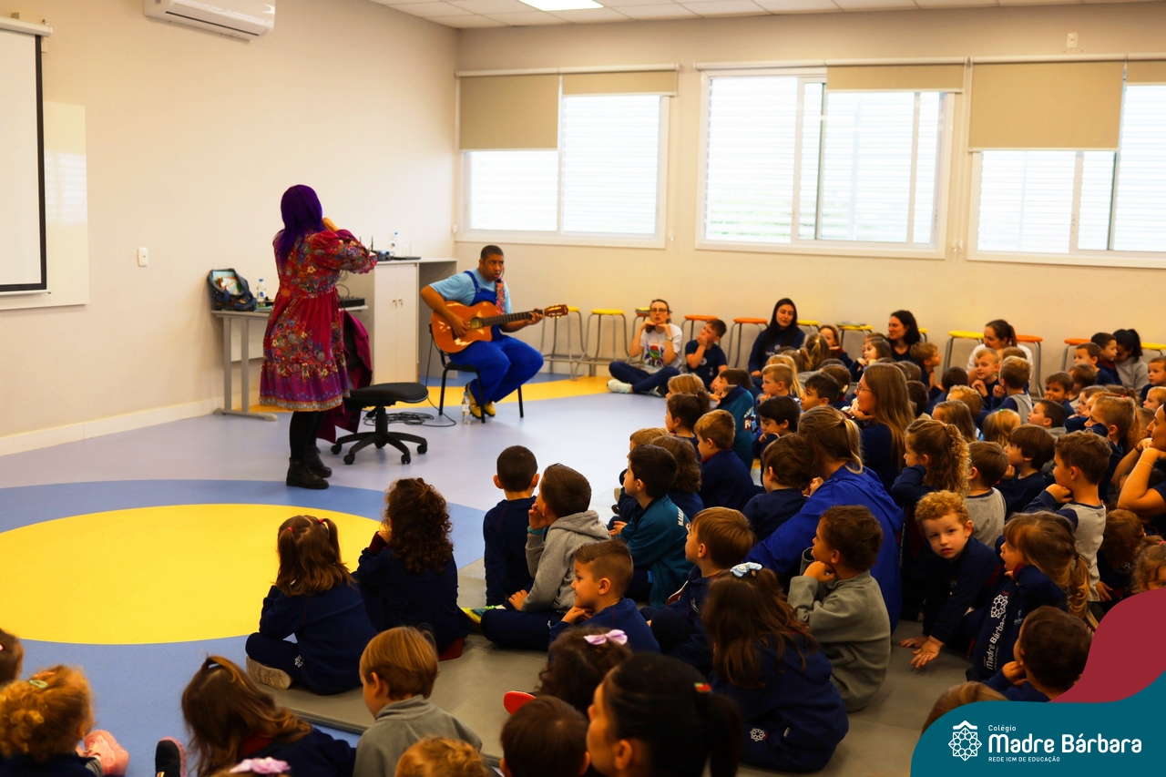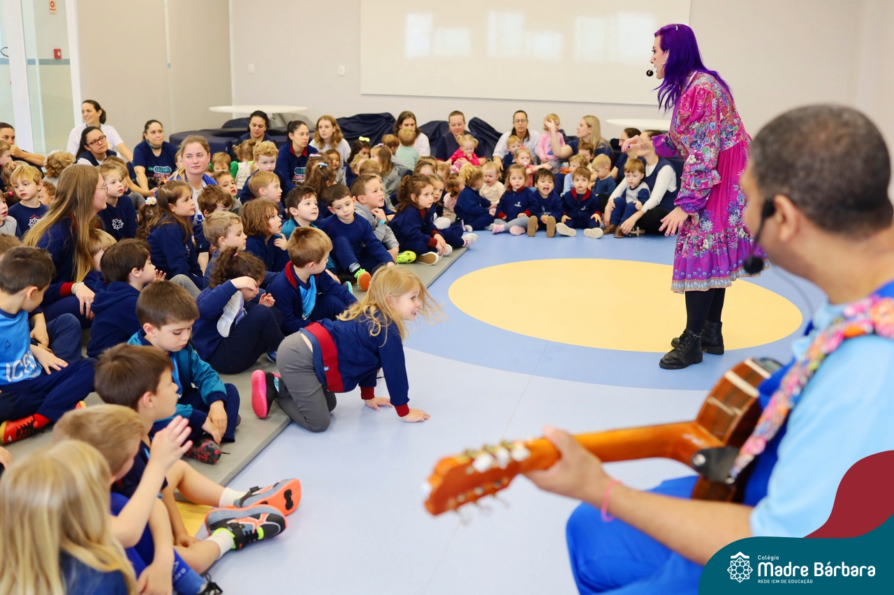 Outubro chegou trazendo magia e encantamento para as crianças da Educação Infantil! Nesta quarta-feira, dia 01.10, o Colégio Madre Bárbara – Rede ICM deu início à programação especial do Mês da Criança com uma convidada muito querida: a escritora Léia Cassol.