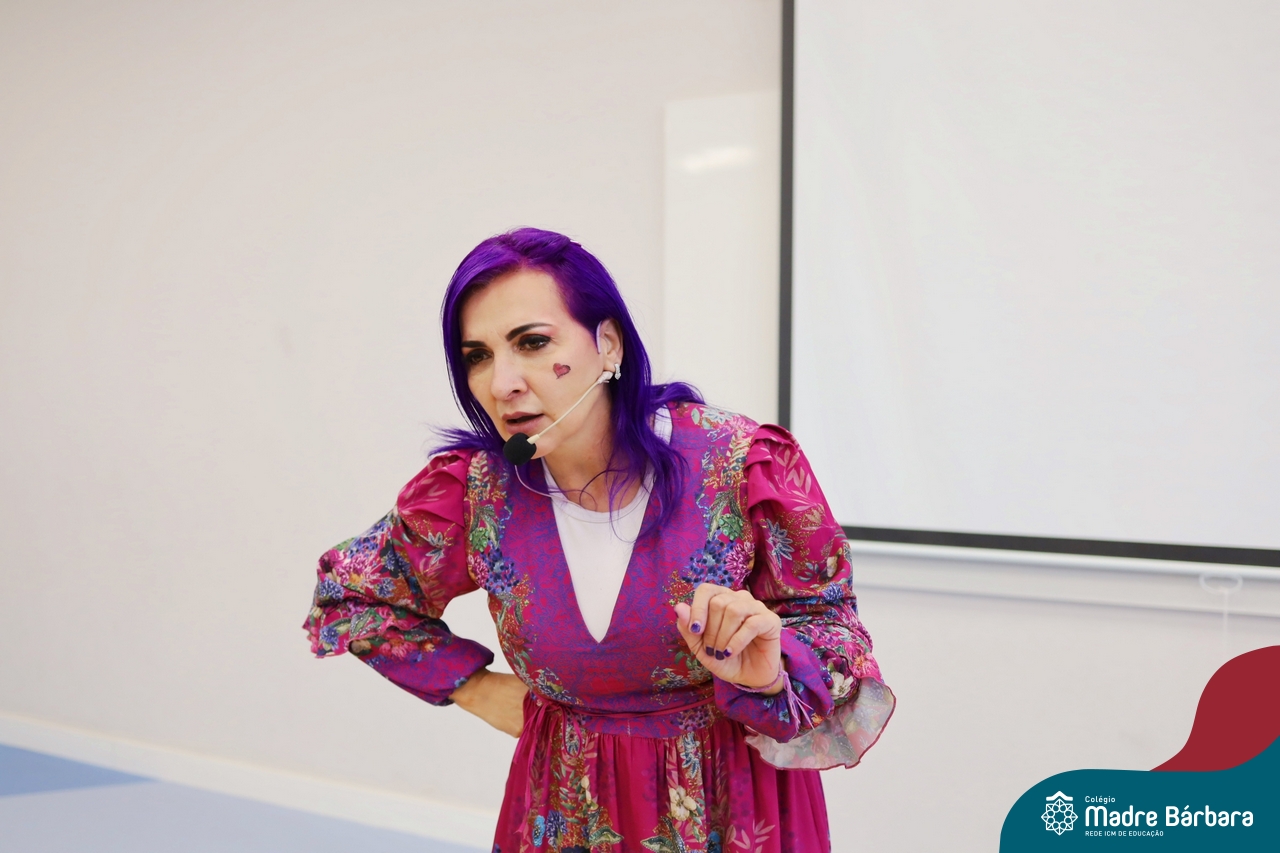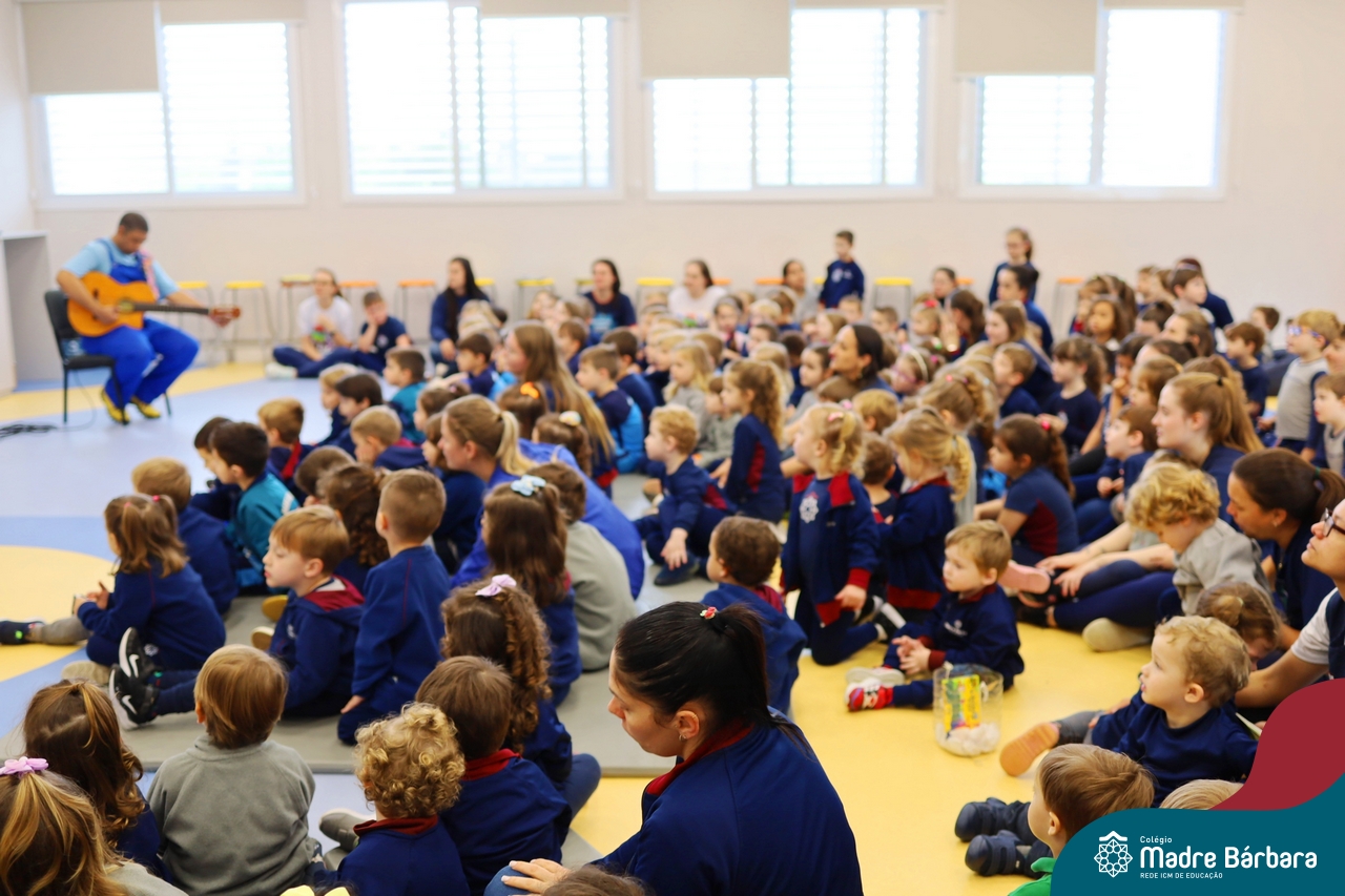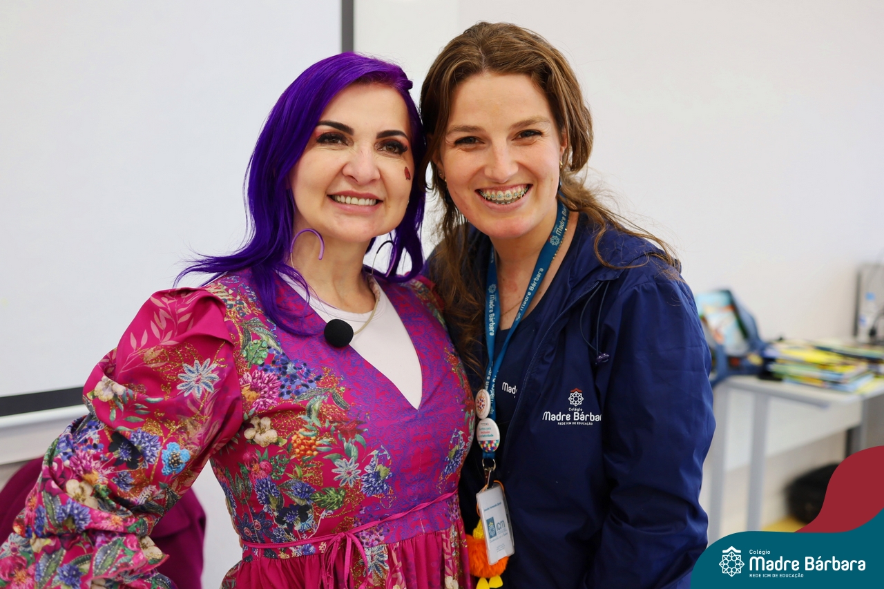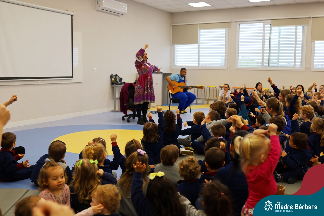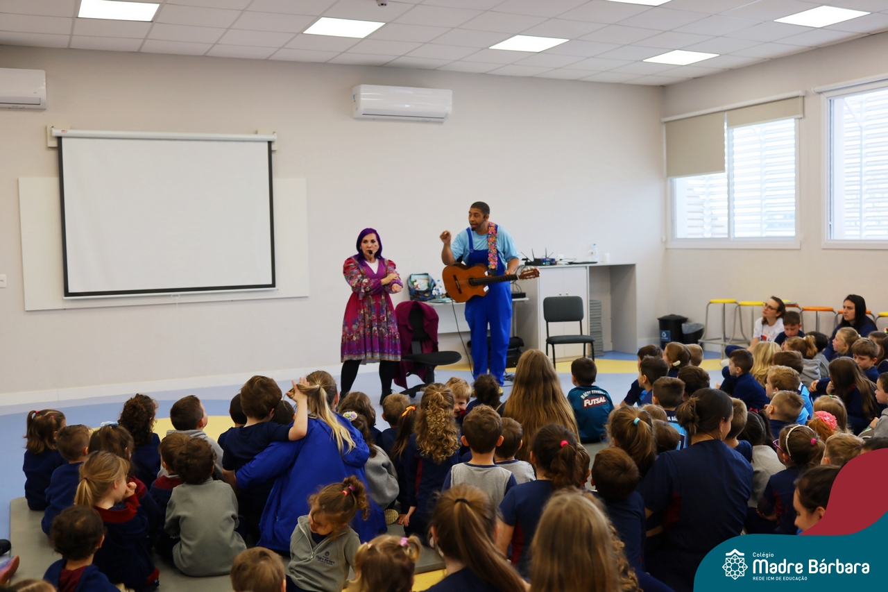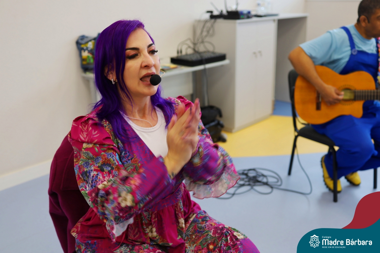 Outubro chegou trazendo magia e encantamento para as crianças da Educação Infantil! Nesta quarta-feira, dia 01.10, o Colégio Madre Bárbara – Rede ICM deu início à programação especial do Mês da Criança com uma convidada muito querida: a escritora Léia Cassol.