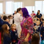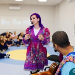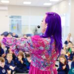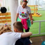 Durante os turnos da manhã e da tarde, Léia proporcionou momentos únicos de contação de histórias e música, encantando a todos com sua alegria, sensibilidade e, claro, com a presença marcante da Menina do Cabelo Roxo, personagem que conquistou o coração das crianças.
