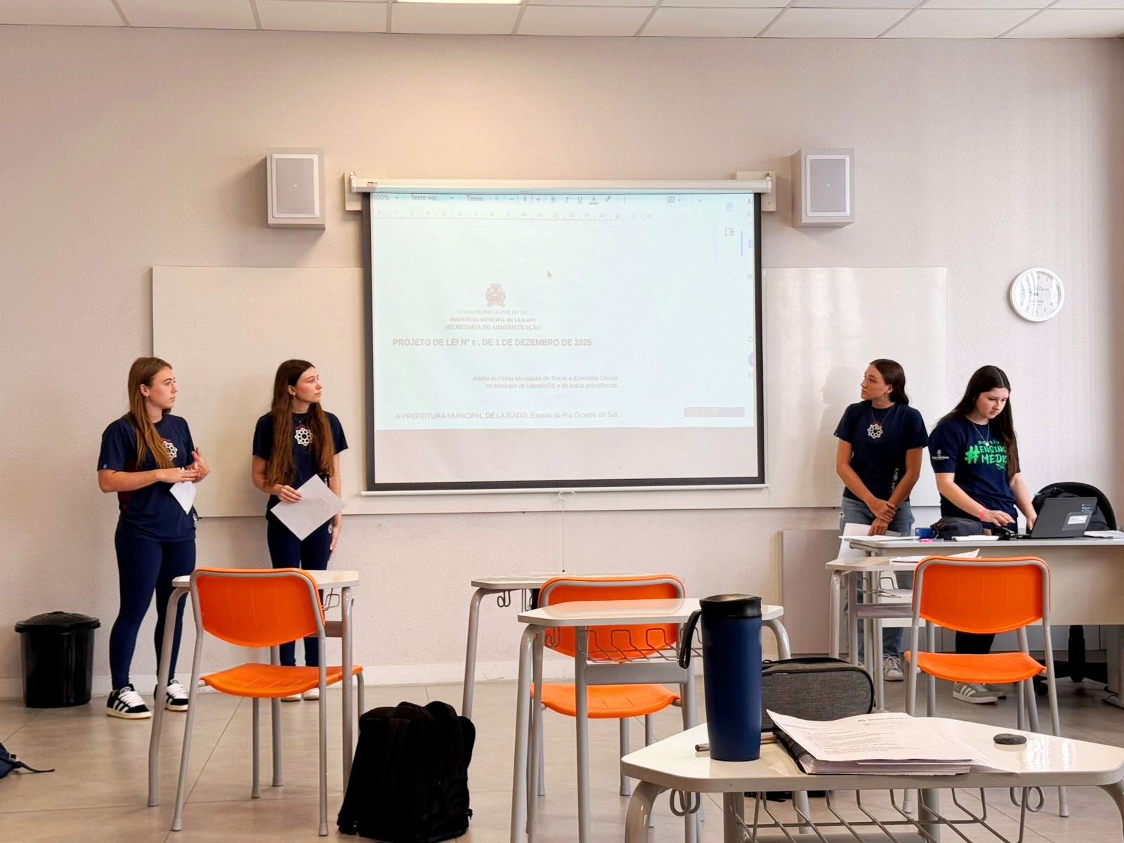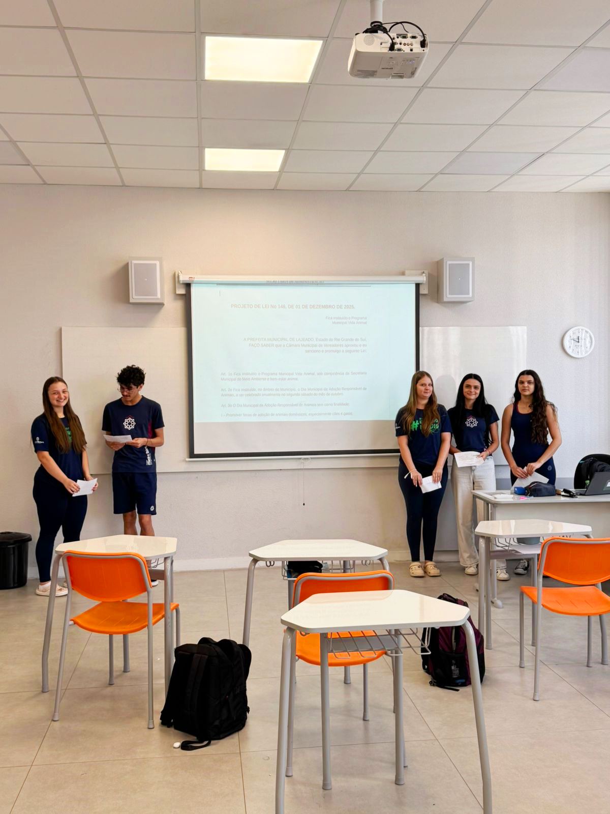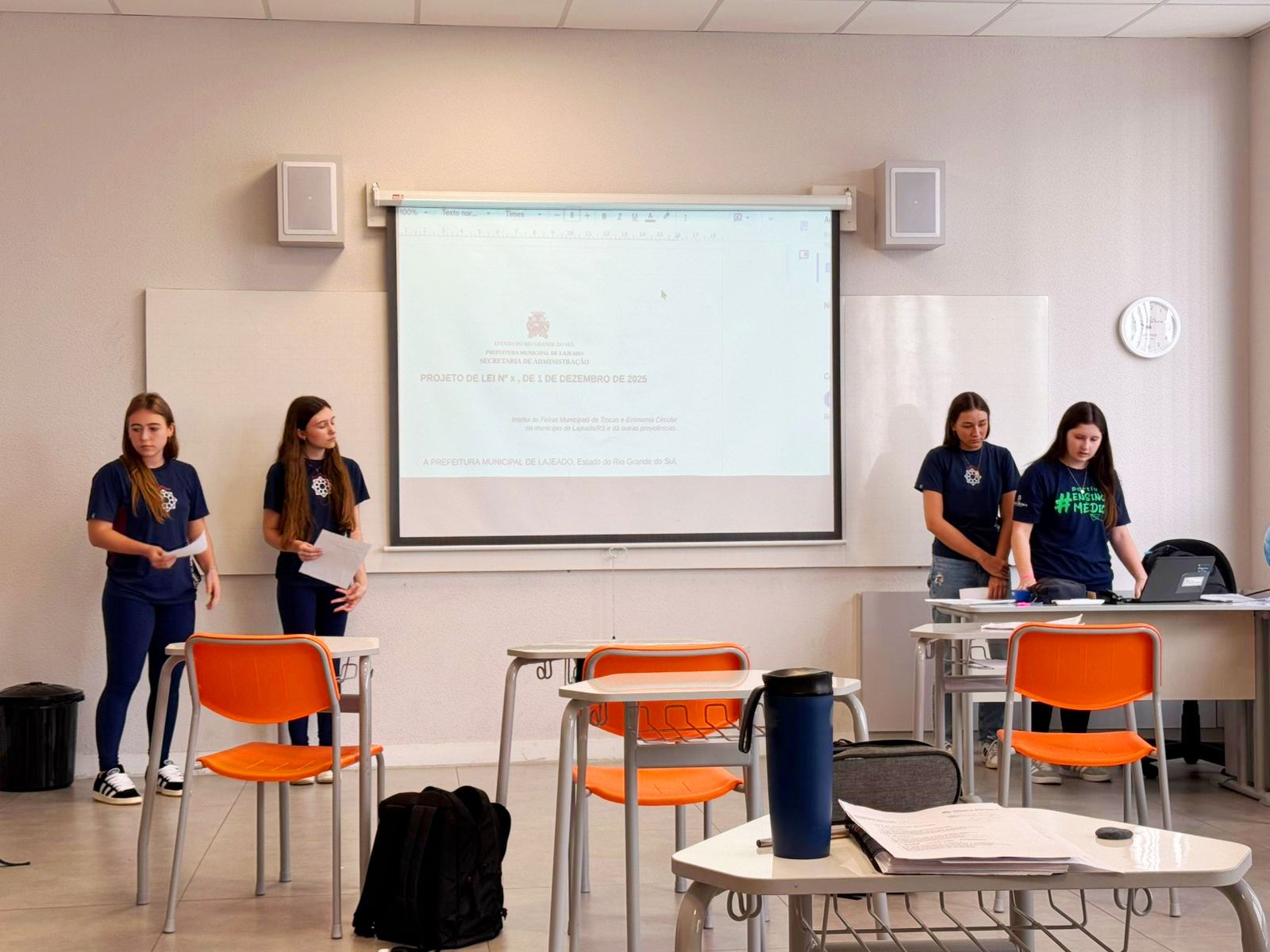 Durante o encontro, cada grupo expôs seu projeto, realizando a leitura dos artigos e apresentando uma justificativa fundamentada em informações confiáveis, dados científicos ou referências jornalísticas, com o objetivo de defender a relevância de suas propostas para o Poder Executivo Municipal.
