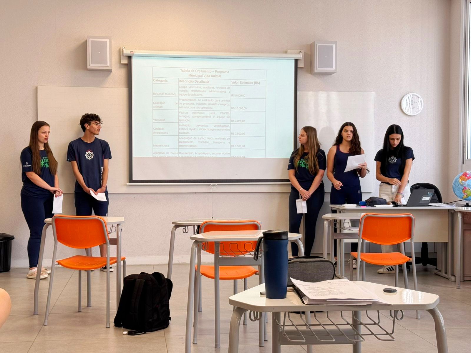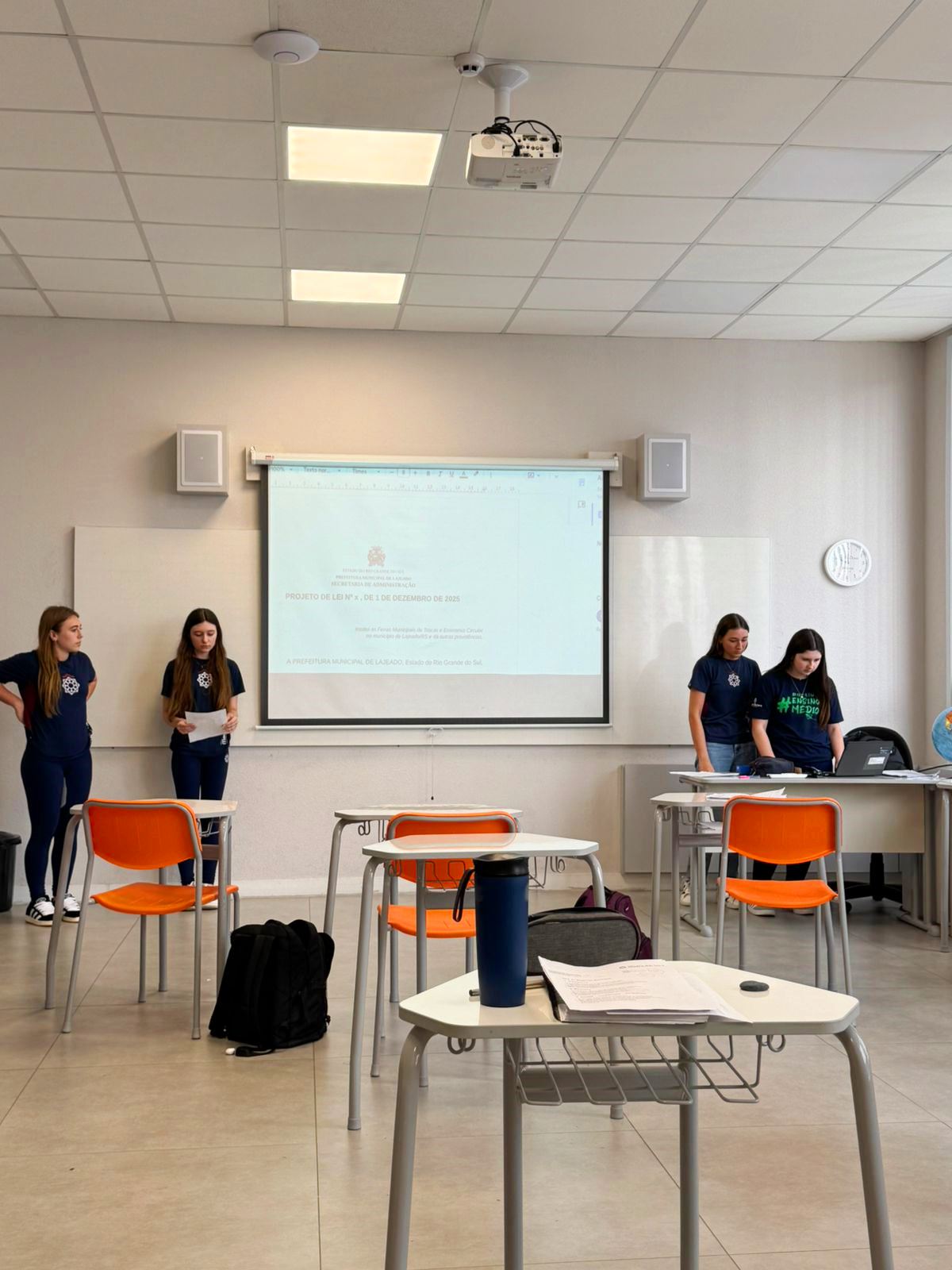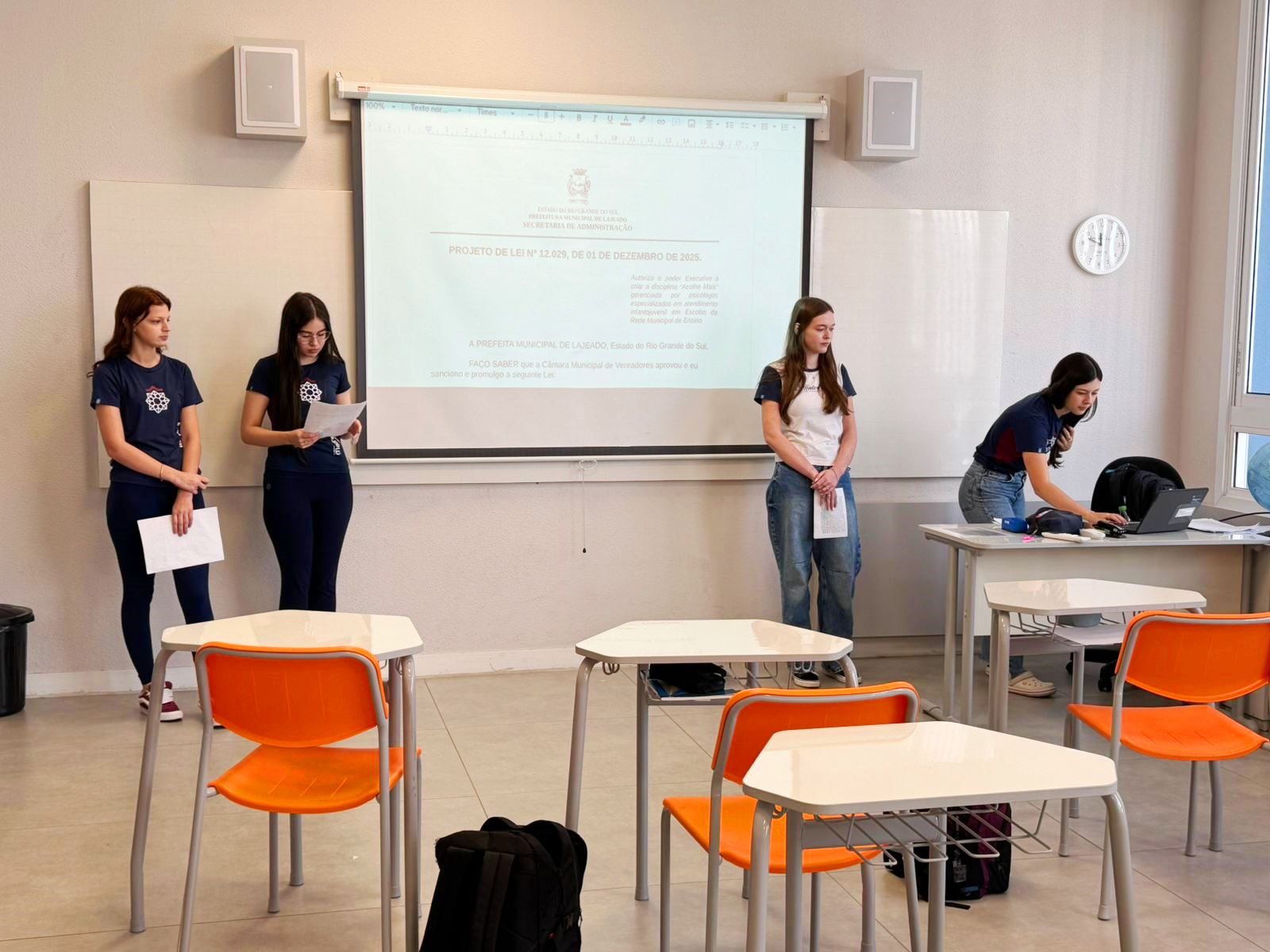Durante o encontro, cada grupo expôs seu projeto, realizando a leitura dos artigos e apresentando uma justificativa fundamentada em informações confiáveis, dados científicos ou referências jornalísticas, com o objetivo de defender a relevância de suas propostas para o Poder Executivo Municipal.