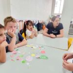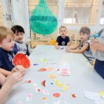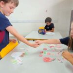 Na aula de inglês, foi proposta uma vivência lúdica para as turmas dos níveis 4 e 5 do turno da manhã, unindo linguagem, criatividade e brincadeira. As crianças desenharam, pintaram e recortaram frutas, além de confeccionar um “dinheirinho”, que serviu como base para a atividade principal: a brincadeira de feira.