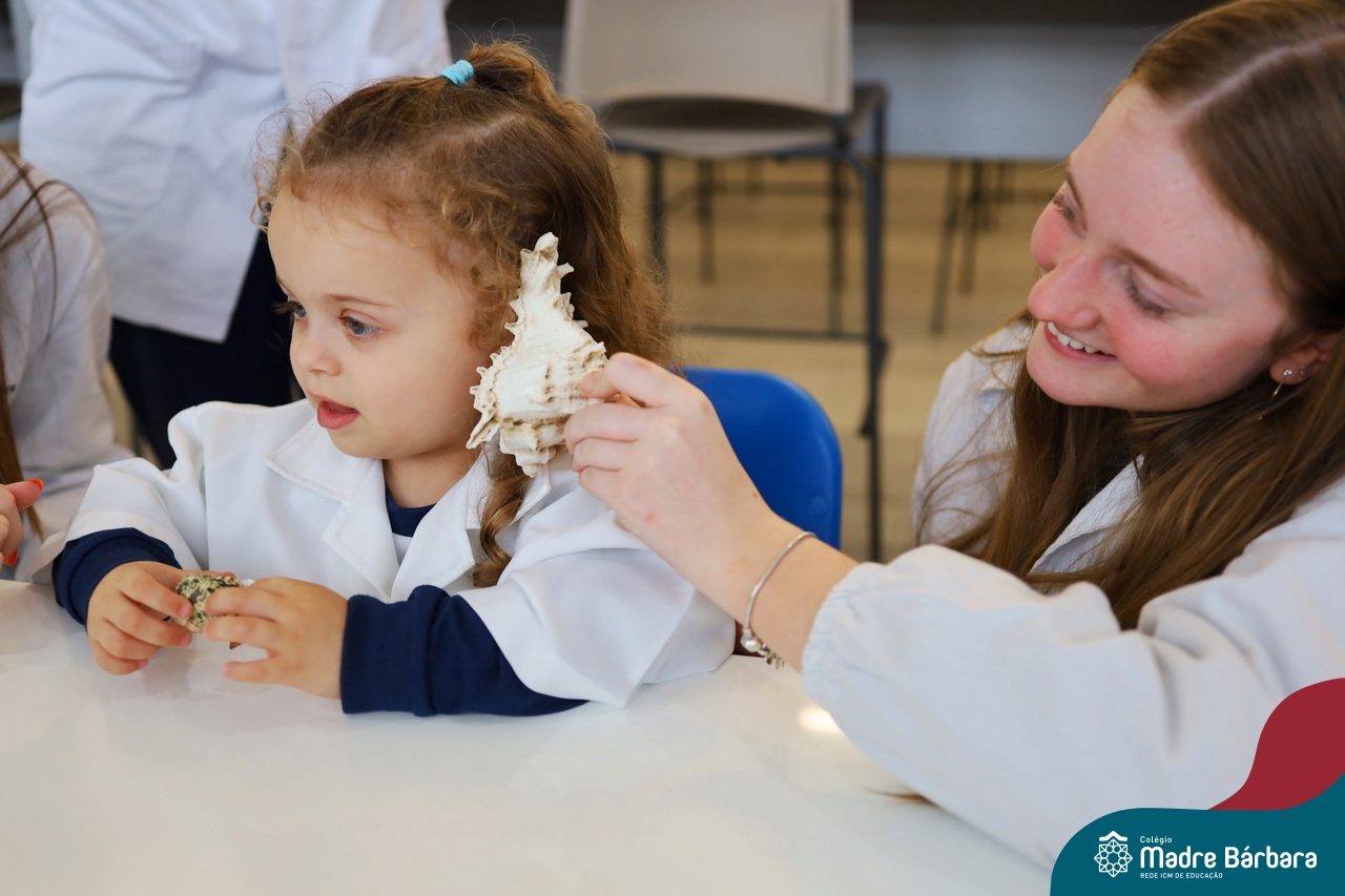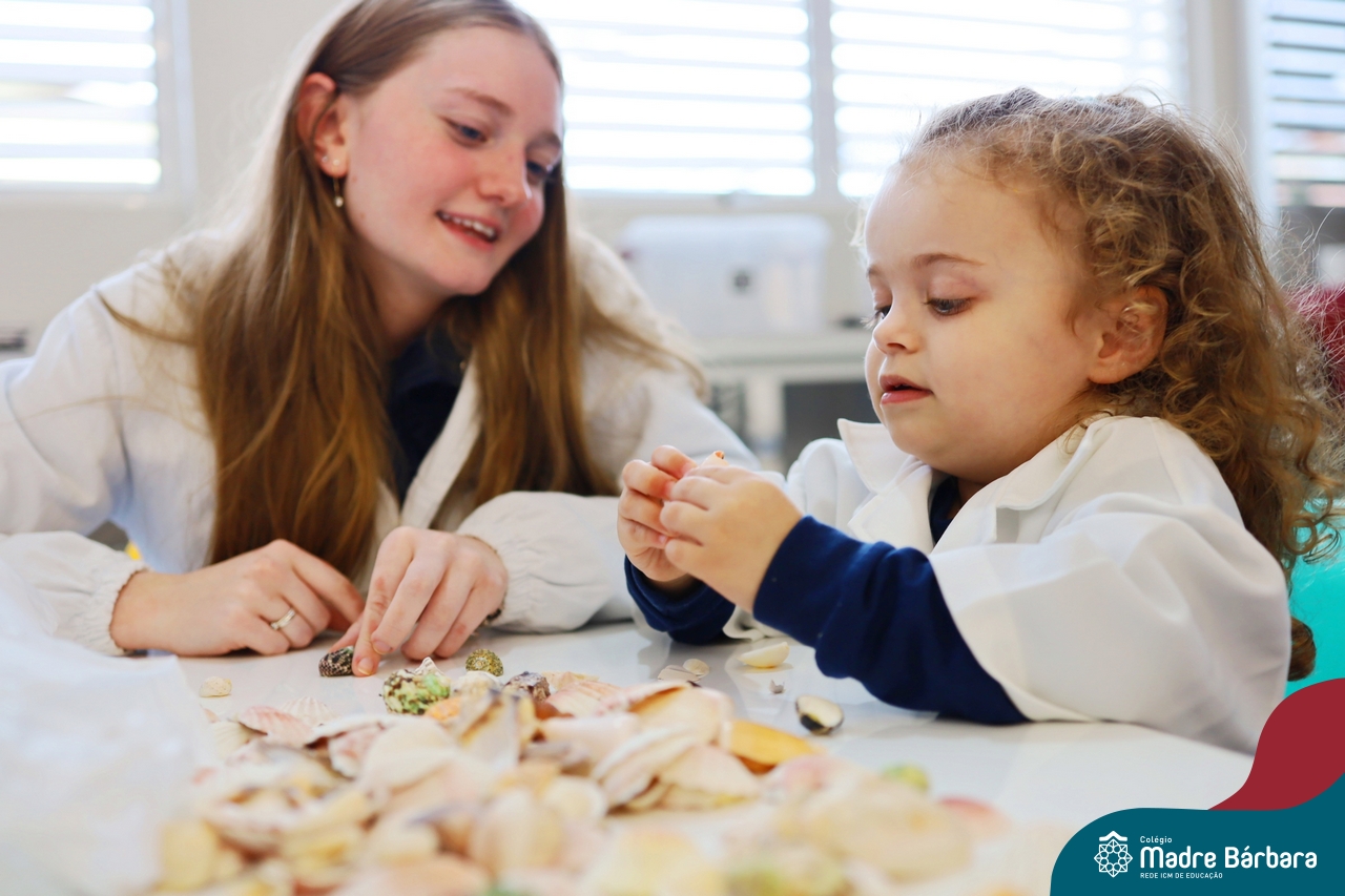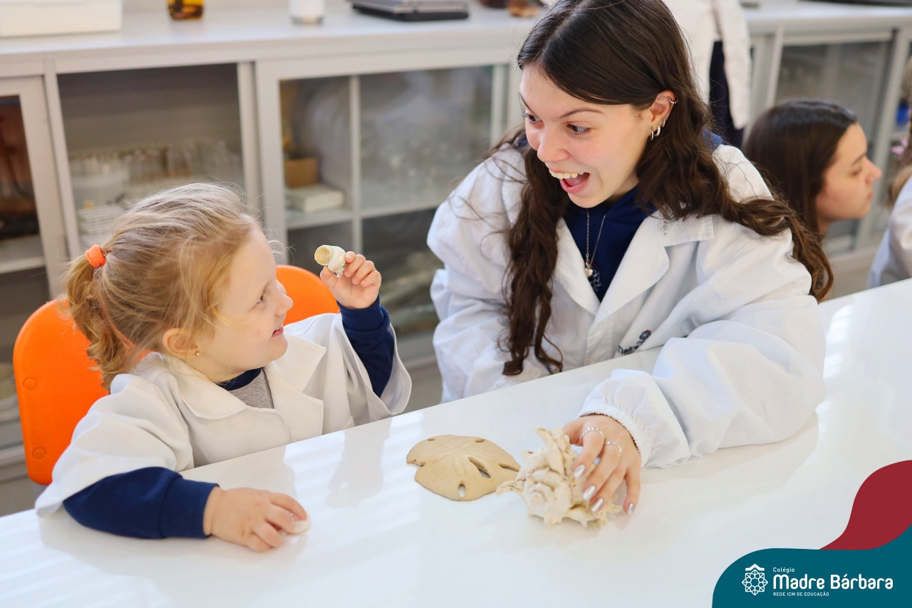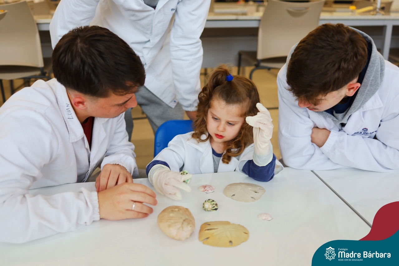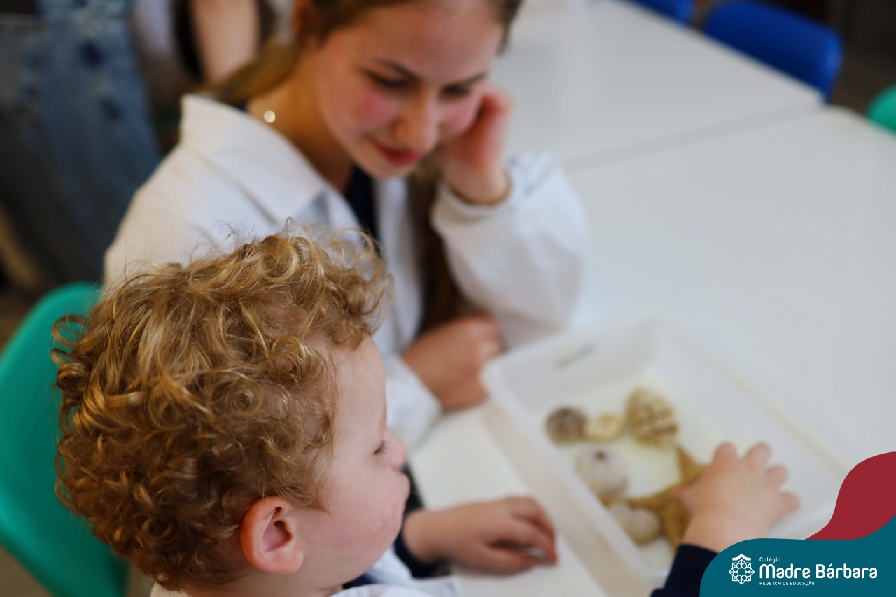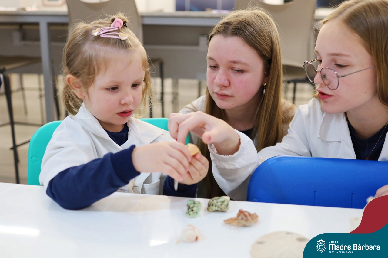 Na tarde do dia 08 de outubro, as crianças do nível 2B puderam ser cientistas no Laboratório de Ciências. Junto com os estudantes do 2°ano do Ensino Médio, vivenciaram um momento de troca de conhecimento sobre a vida marinha. Foi uma tarde de muito encantamento e descobertas sobre o fundo do mar!