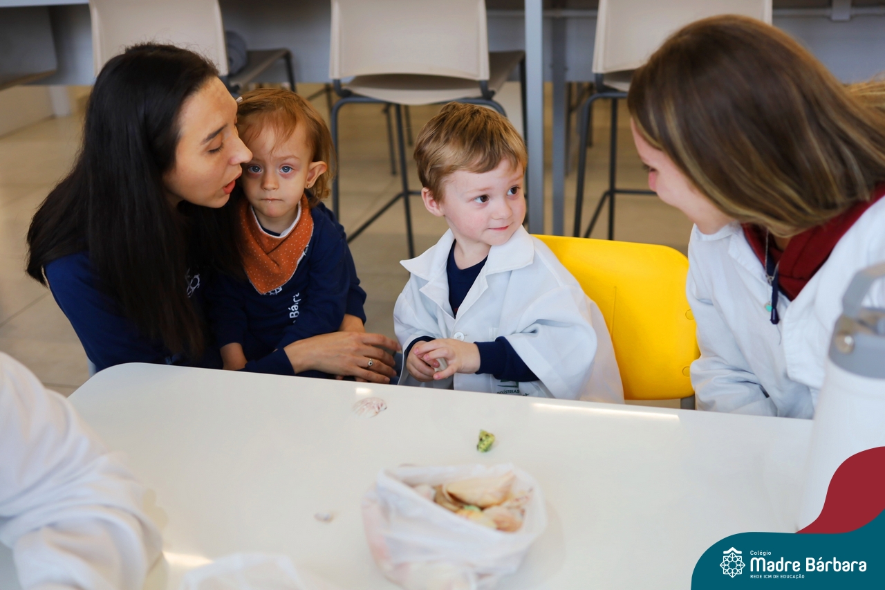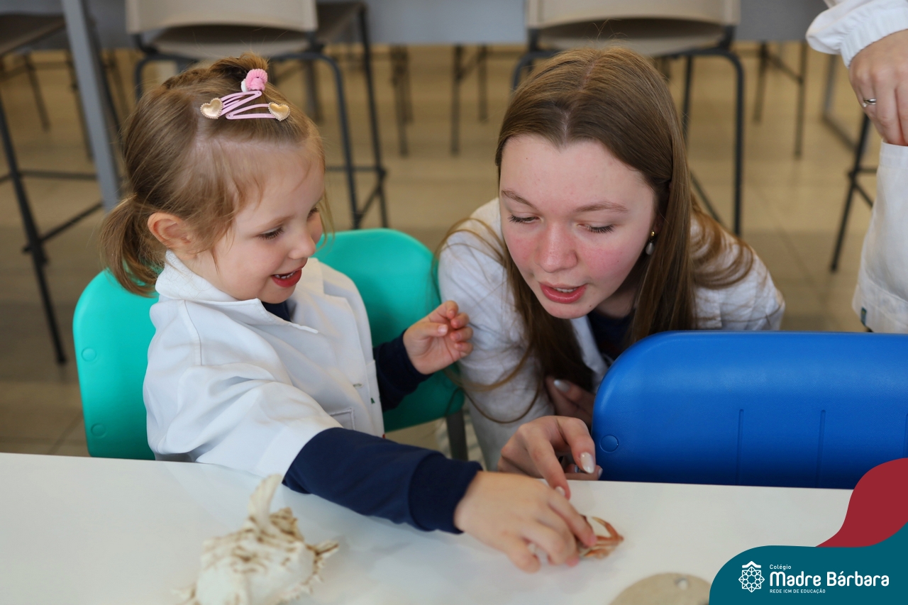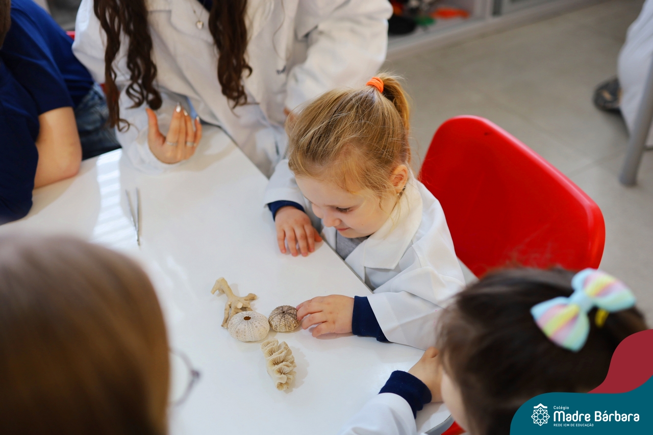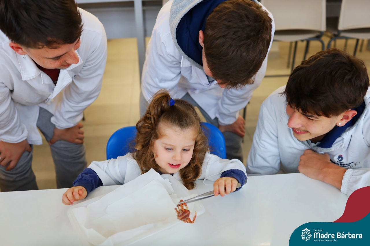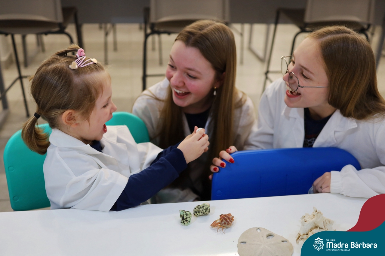 Na tarde do dia 08 de outubro, as crianças do nível 2B puderam ser cientistas no Laboratório de Ciências. Junto com os estudantes do 2°ano do Ensino Médio, vivenciaram um momento de troca de conhecimento sobre a vida marinha. Foi uma tarde de muito encantamento e descobertas sobre o fundo do mar!