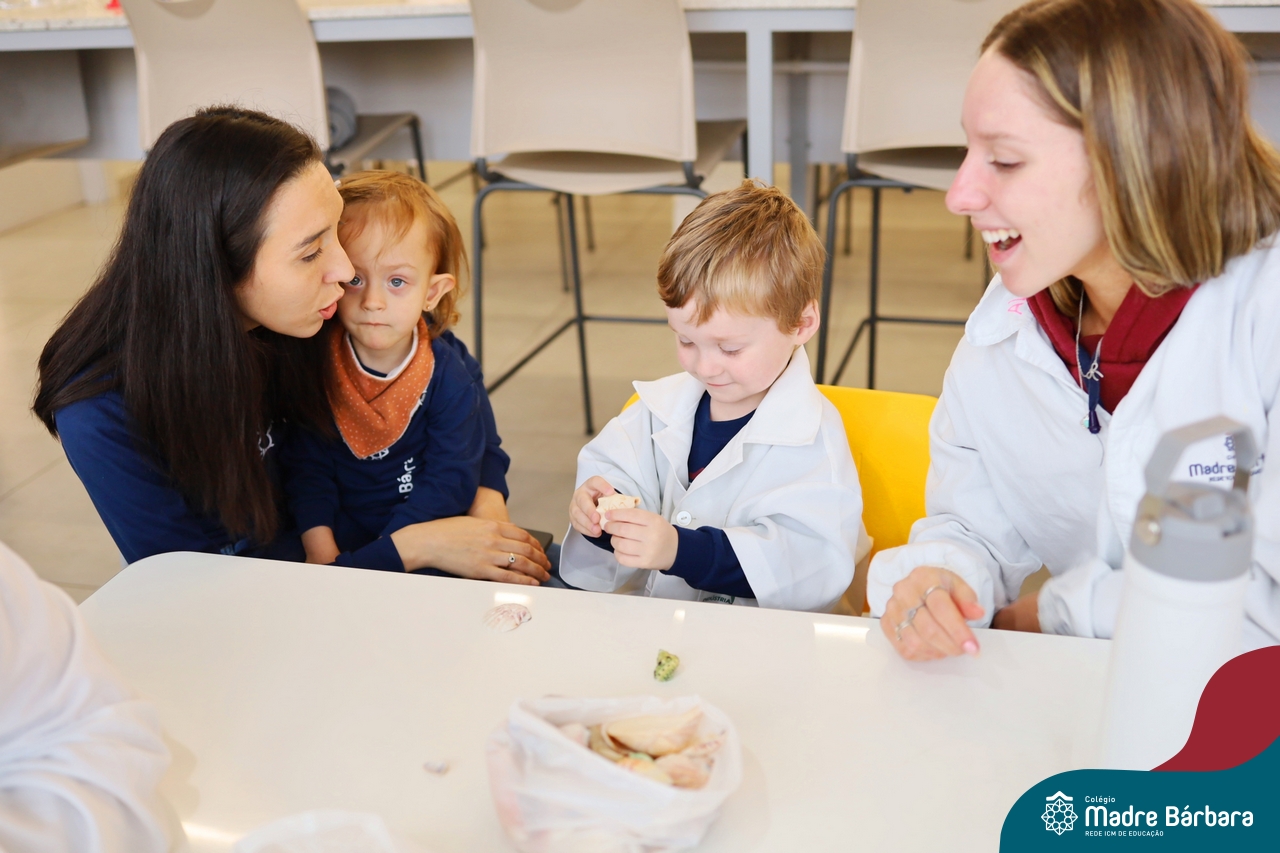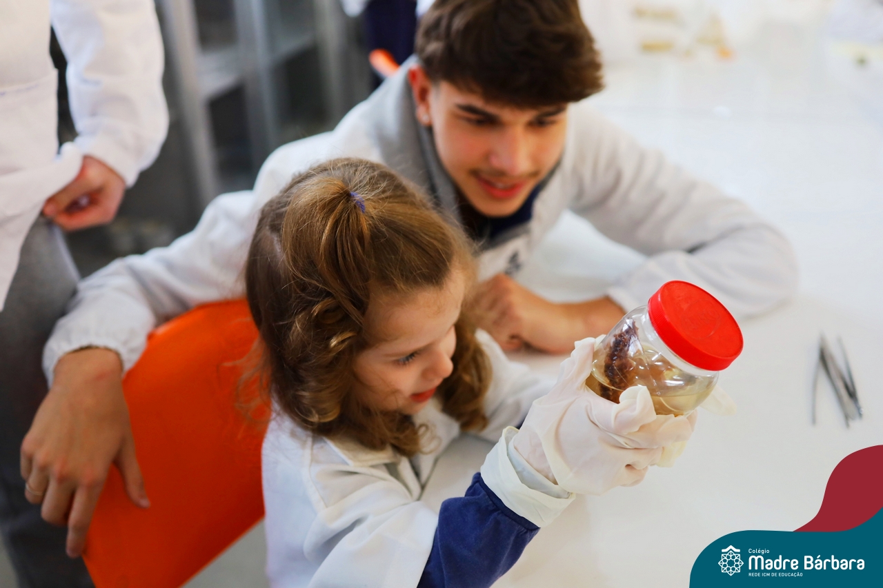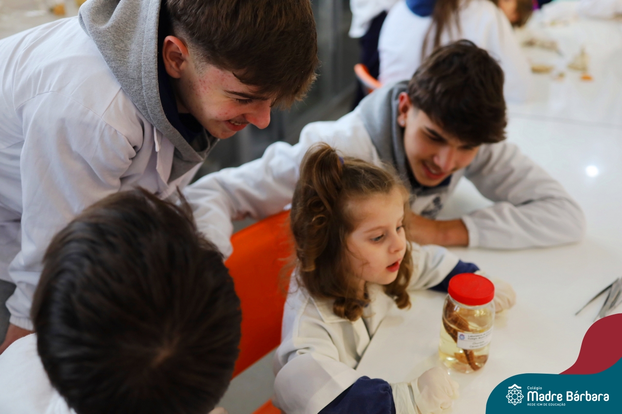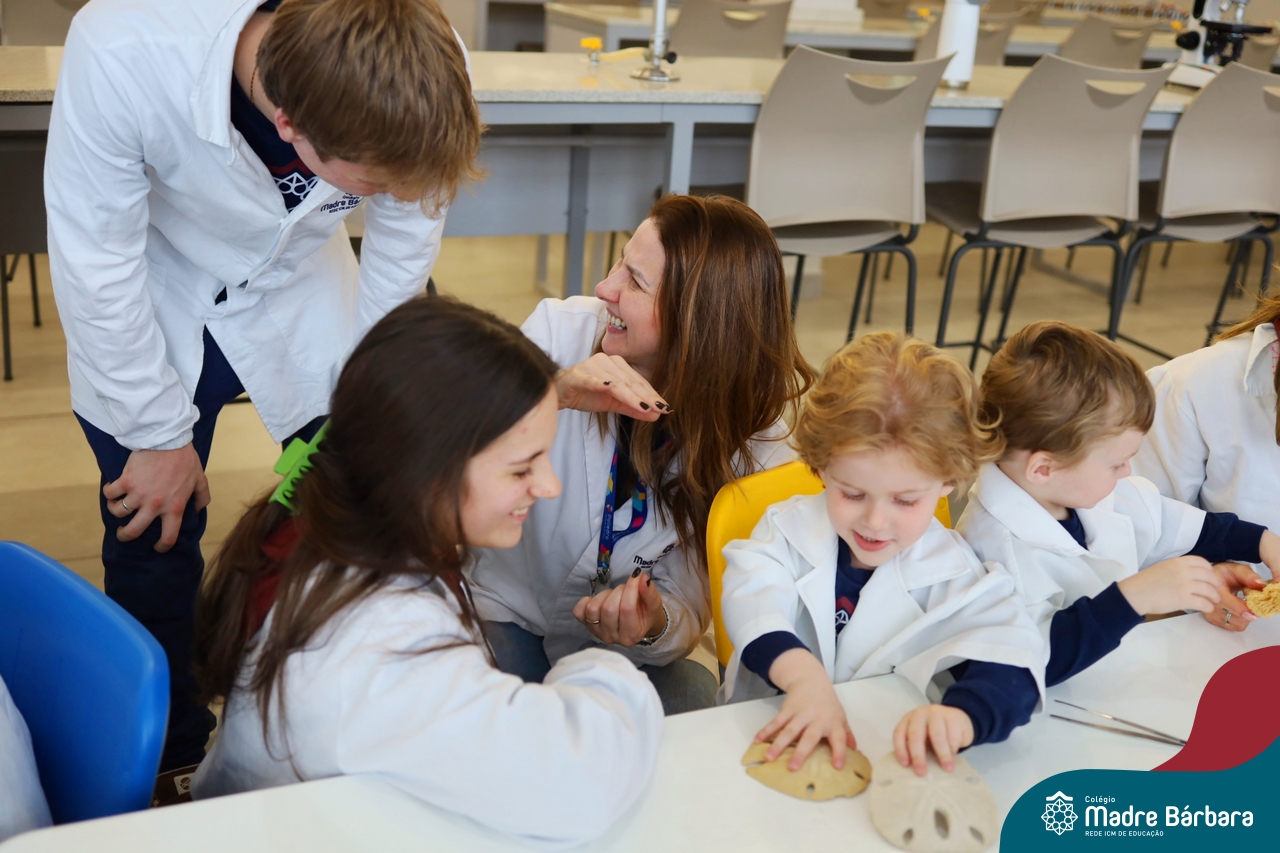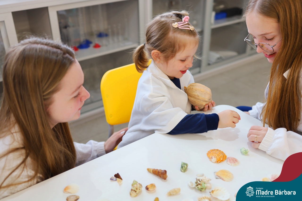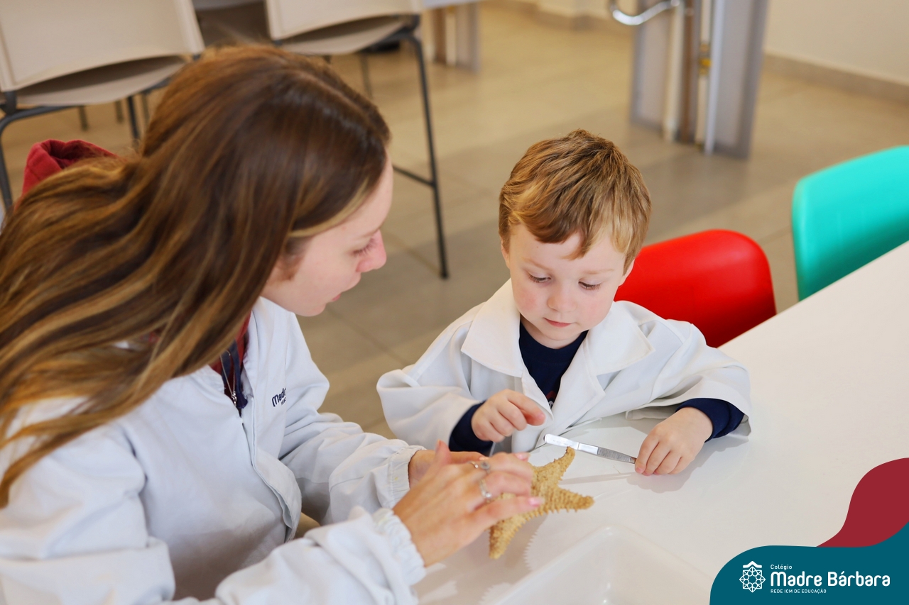 Na tarde do dia 08 de outubro, as crianças do nível 2B puderam ser cientistas no Laboratório de Ciências. Junto com os estudantes do 2°ano do Ensino Médio, vivenciaram um momento de troca de conhecimento sobre a vida marinha. Foi uma tarde de muito encantamento e descobertas sobre o fundo do mar!