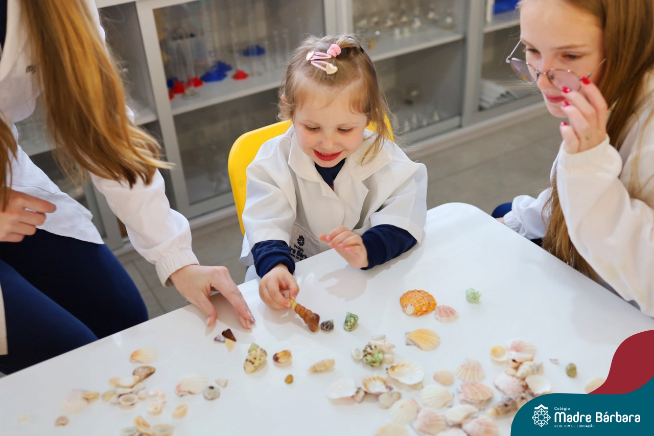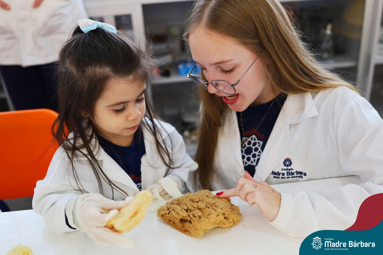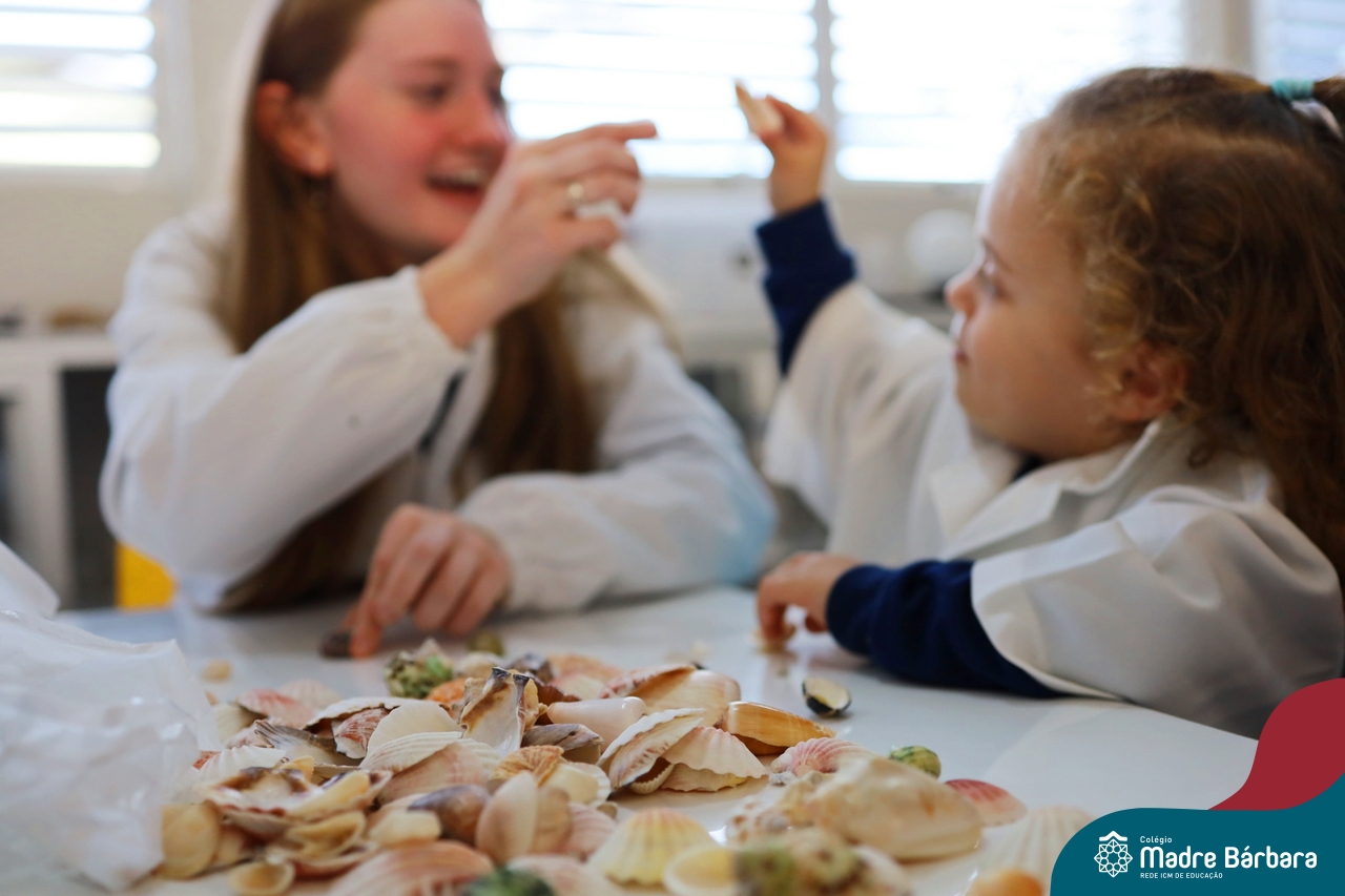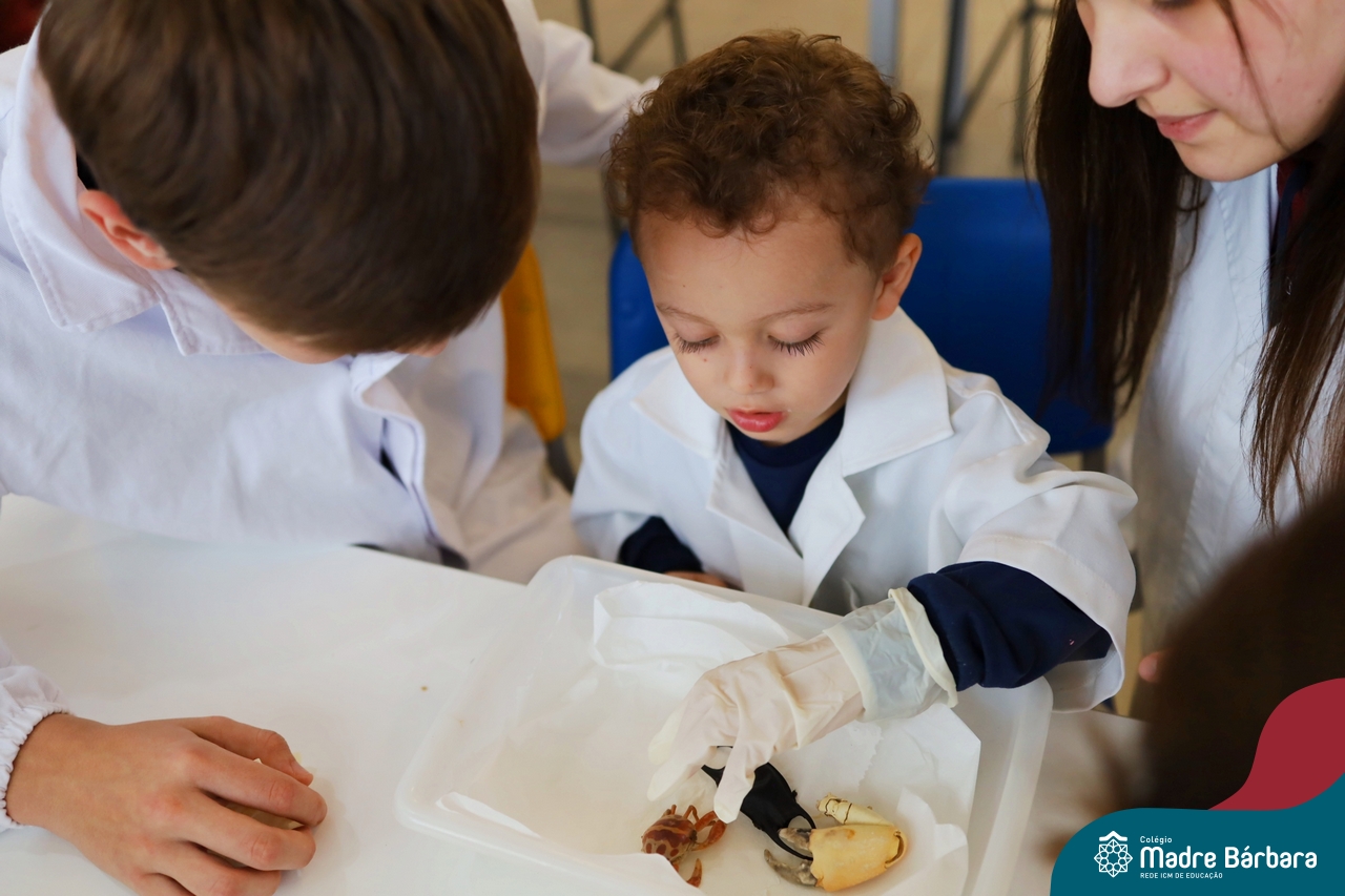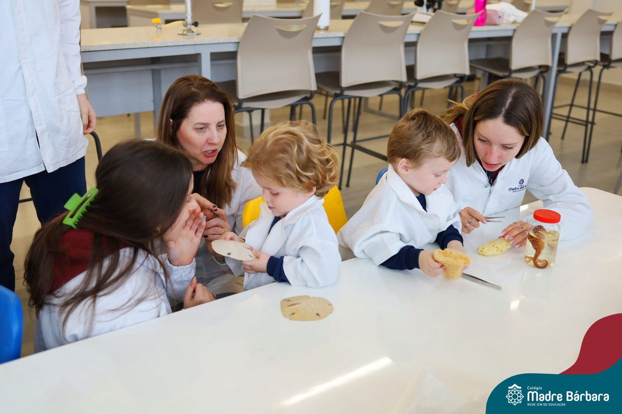 Na tarde do dia 08 de outubro, as crianças do nível 2B puderam ser cientistas no Laboratório de Ciências. Junto com os estudantes do 2°ano do Ensino Médio, vivenciaram um momento de troca de conhecimento sobre a vida marinha. Foi uma tarde de muito encantamento e descobertas sobre o fundo do mar!