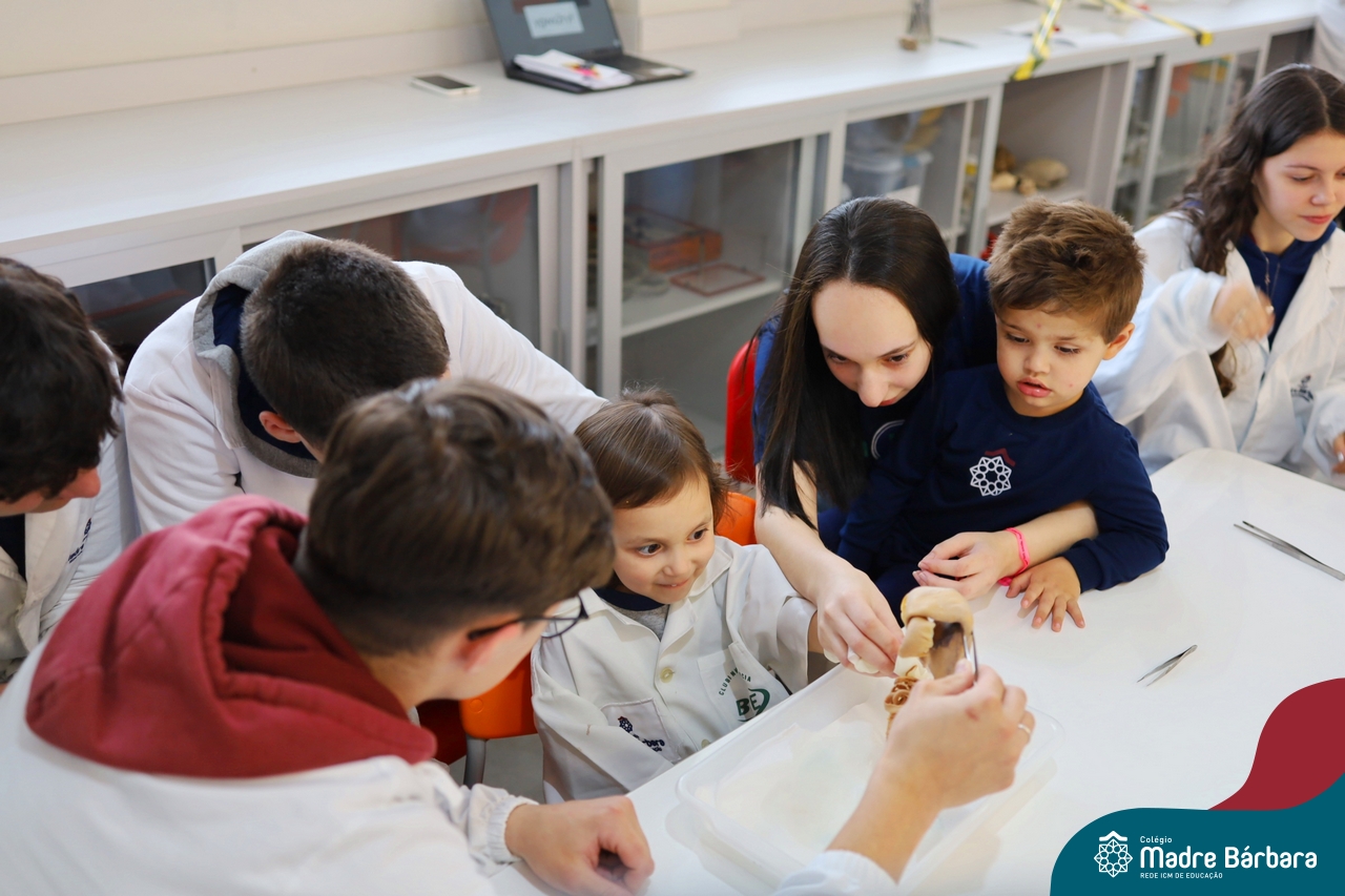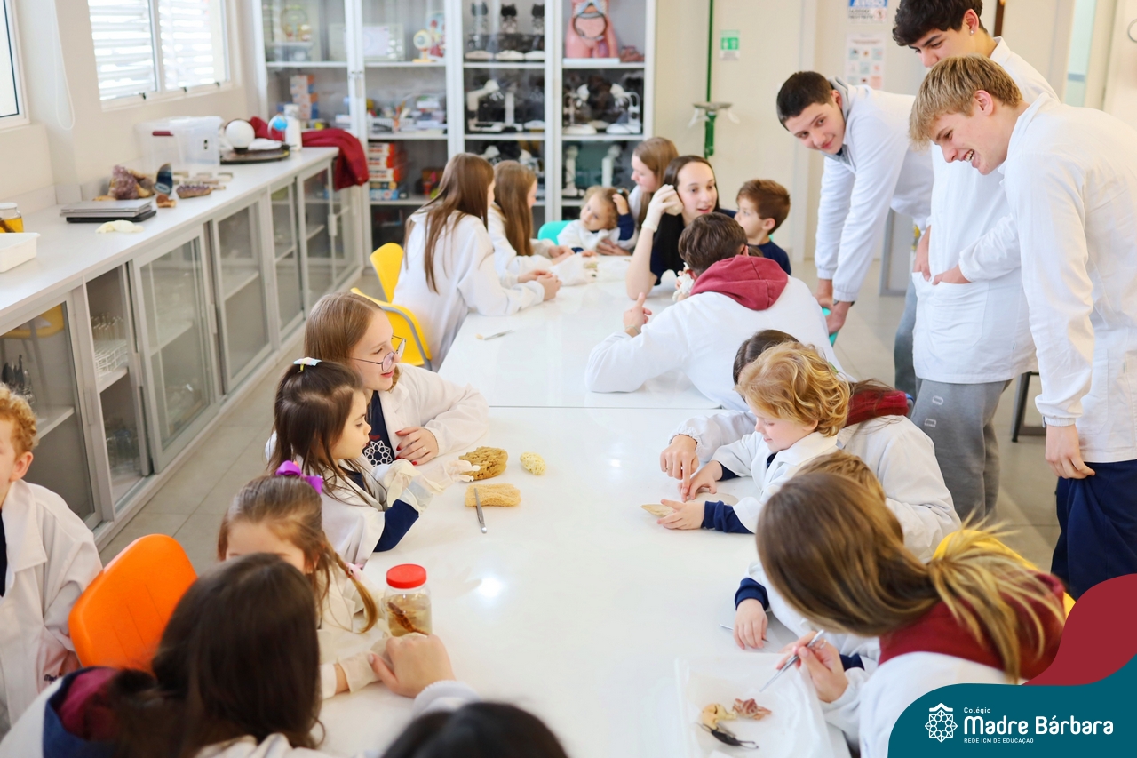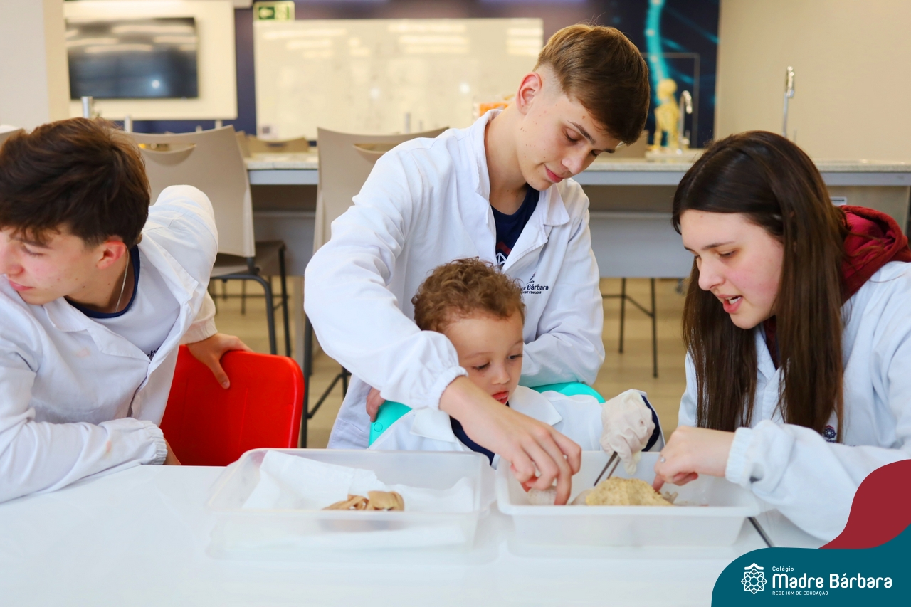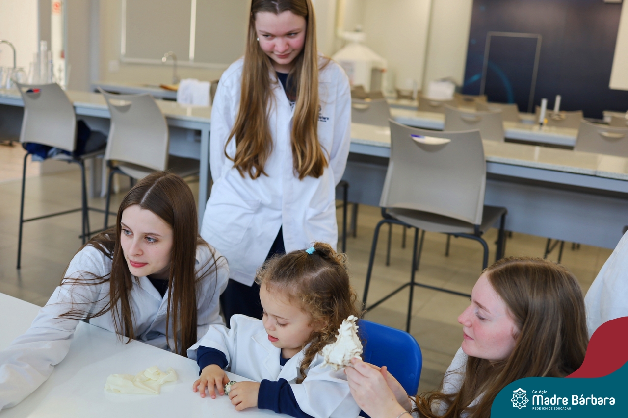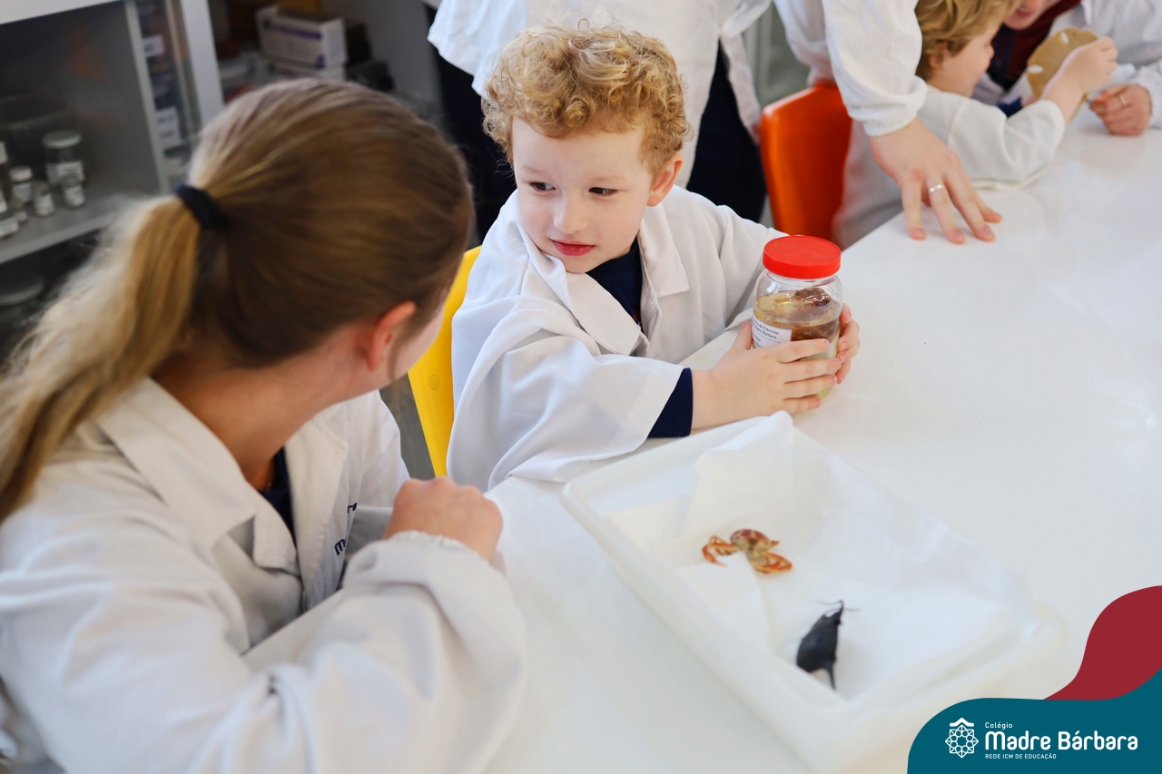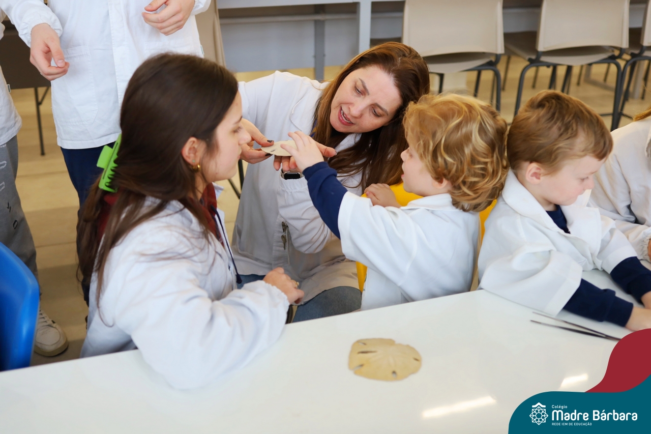 Na tarde do dia 08 de outubro, as crianças do nível 2B puderam ser cientistas no Laboratório de Ciências. Junto com os estudantes do 2°ano do Ensino Médio, vivenciaram um momento de troca de conhecimento sobre a vida marinha. Foi uma tarde de muito encantamento e descobertas sobre o fundo do mar!