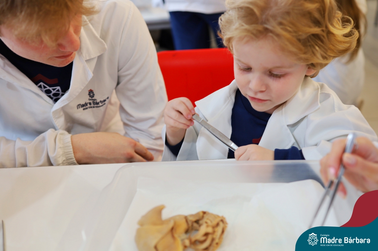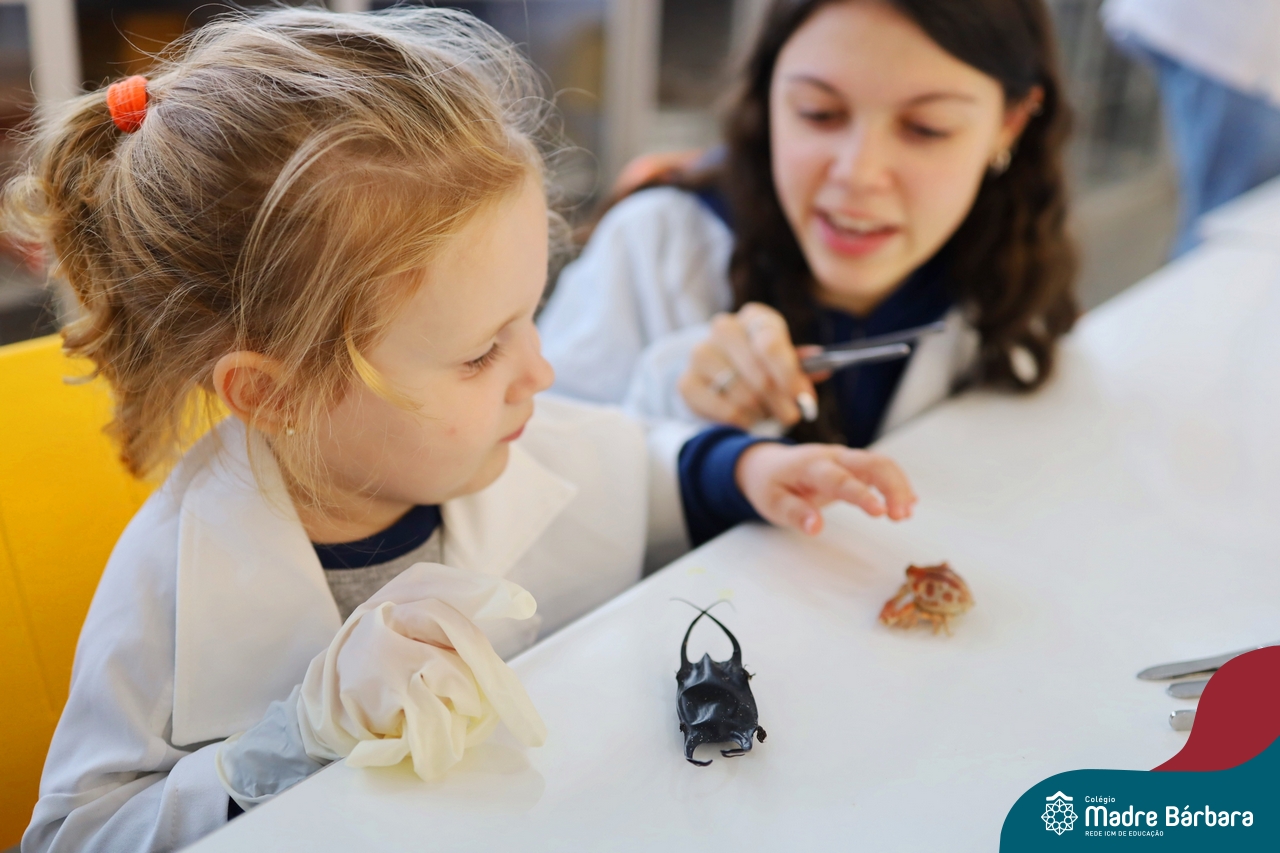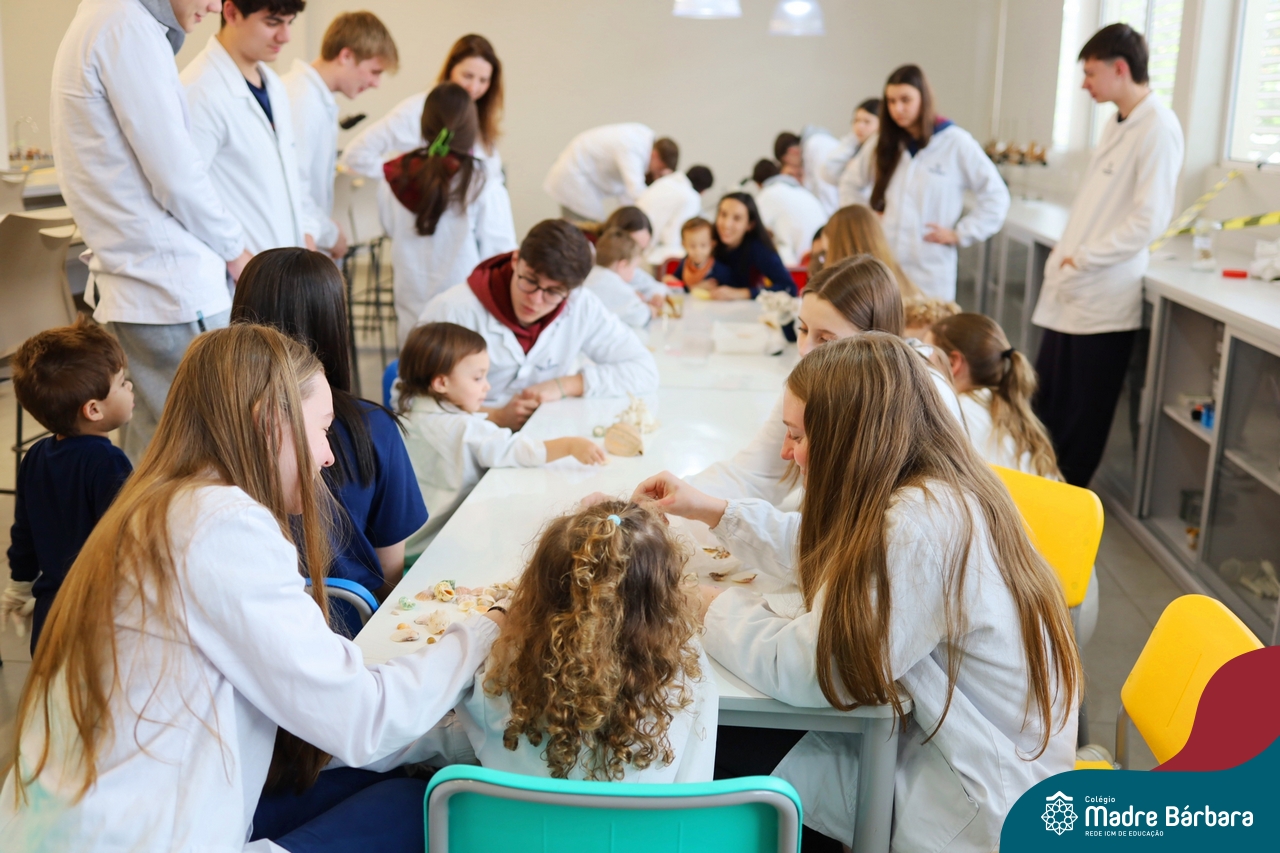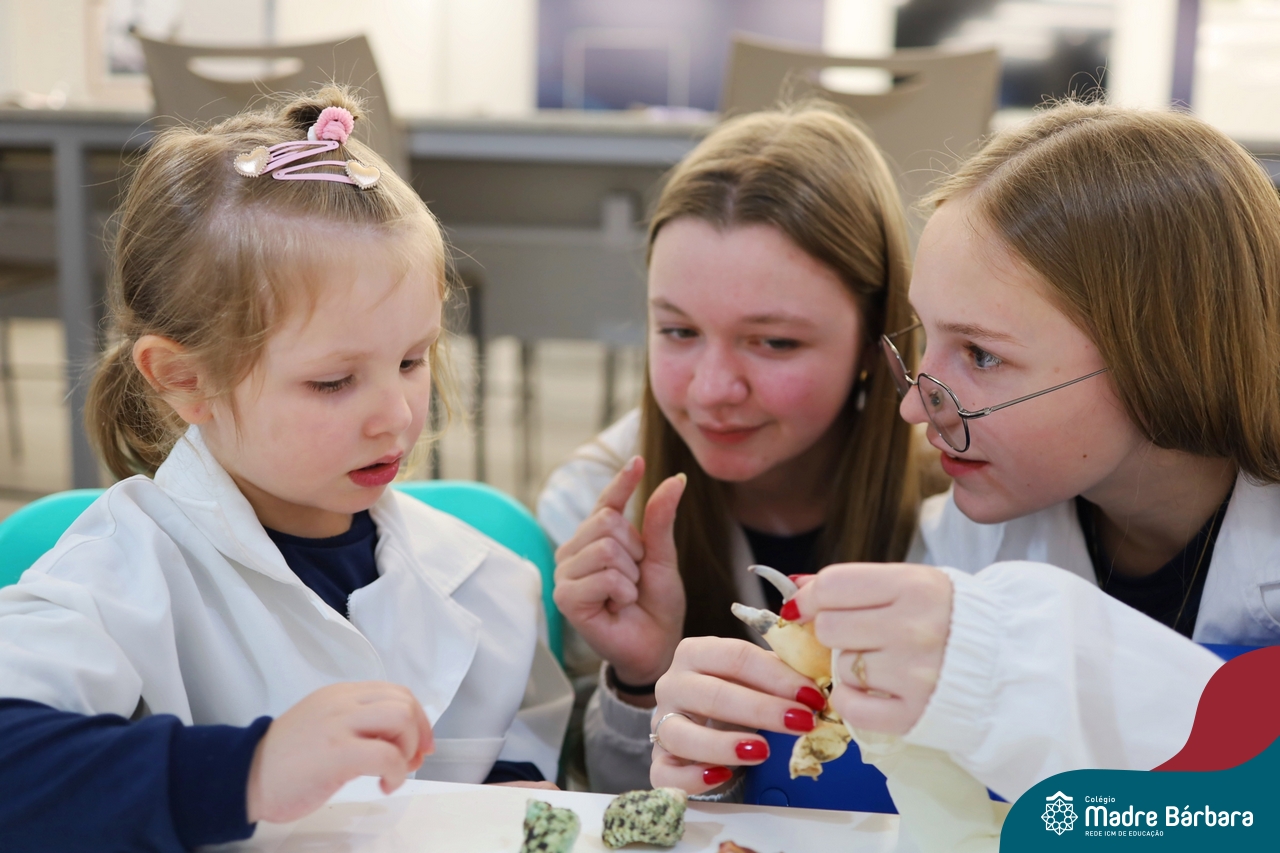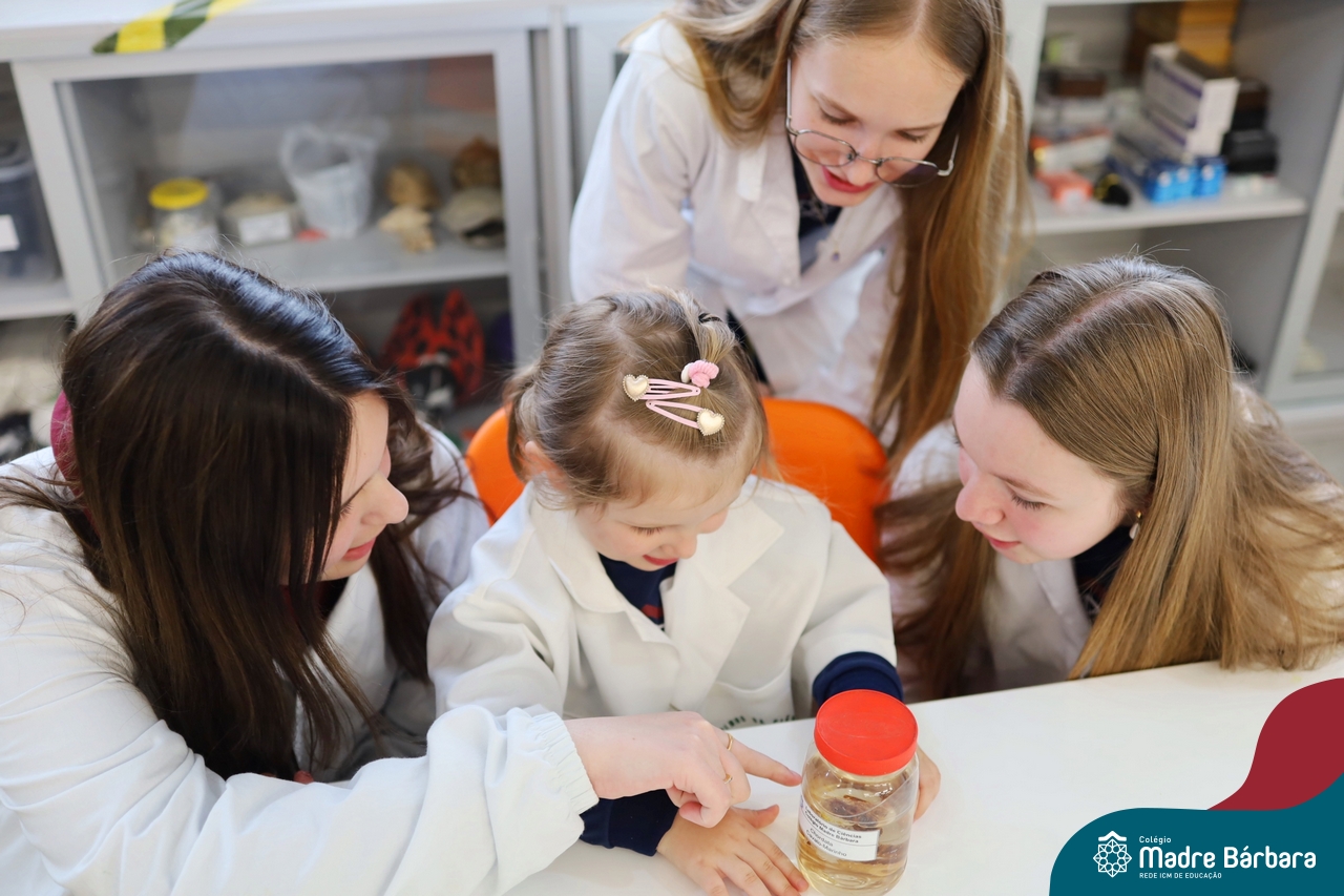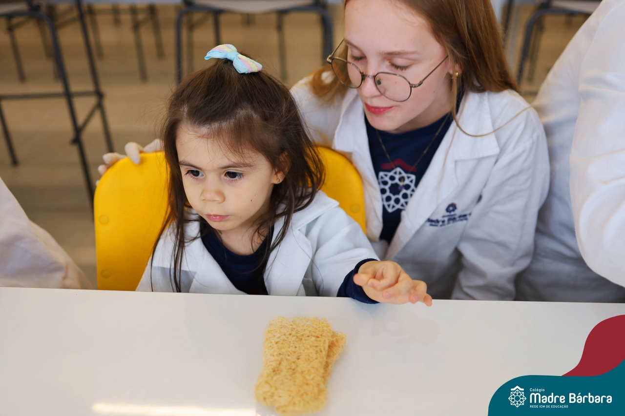 Na tarde do dia 08 de outubro, as crianças do nível 2B puderam ser cientistas no Laboratório de Ciências. Junto com os estudantes do 2°ano do Ensino Médio, vivenciaram um momento de troca de conhecimento sobre a vida marinha. Foi uma tarde de muito encantamento e descobertas sobre o fundo do mar!