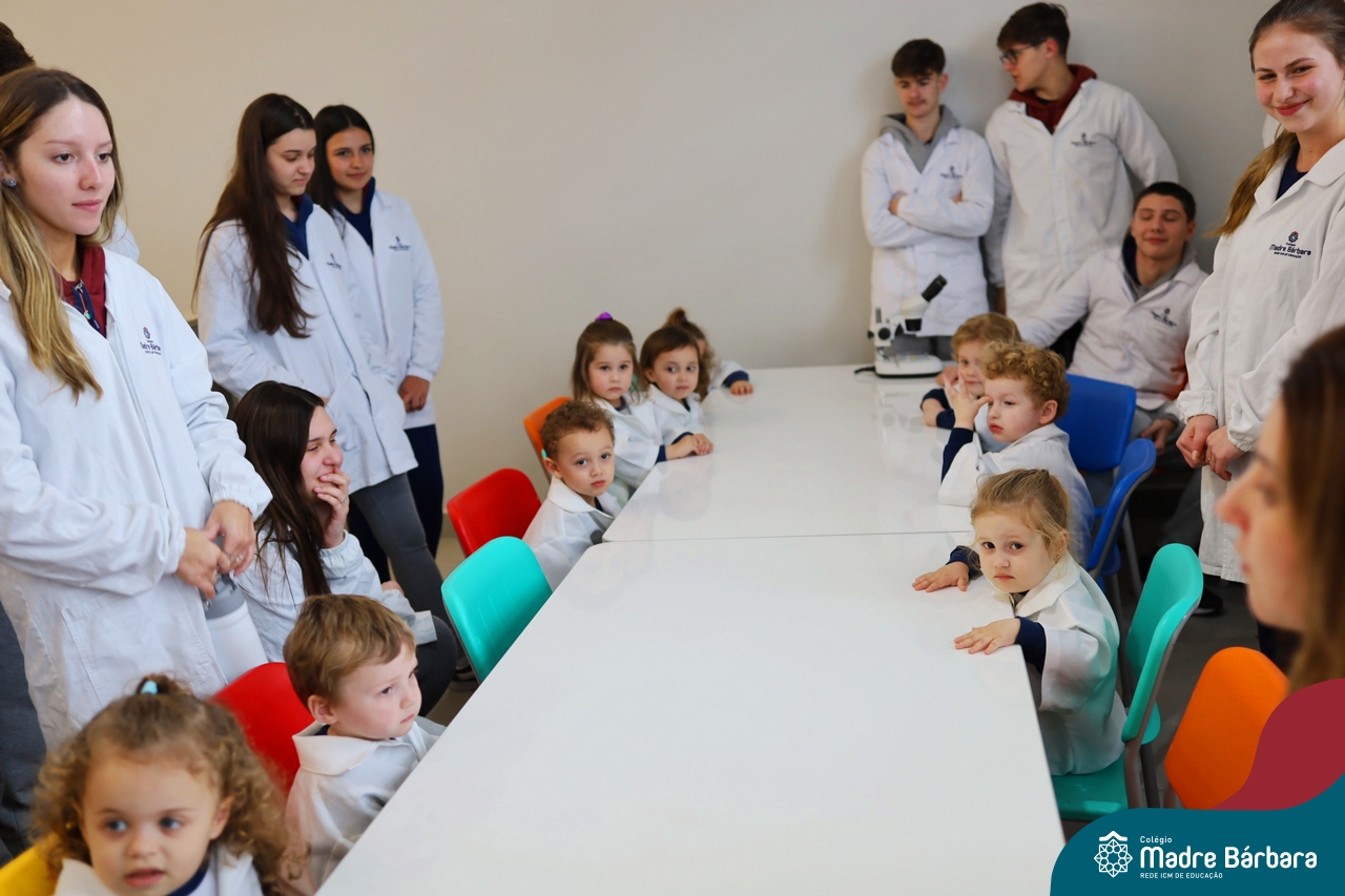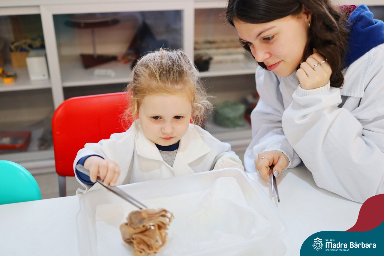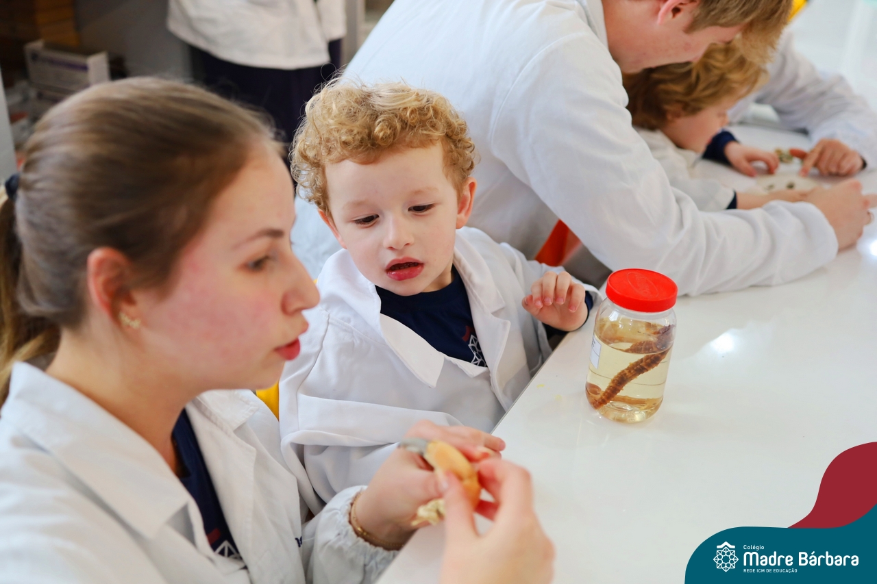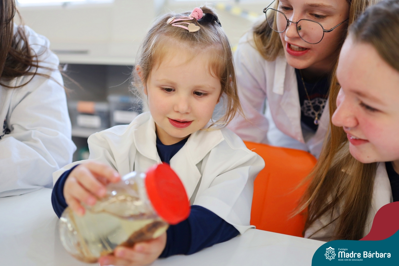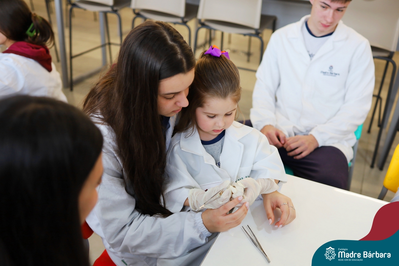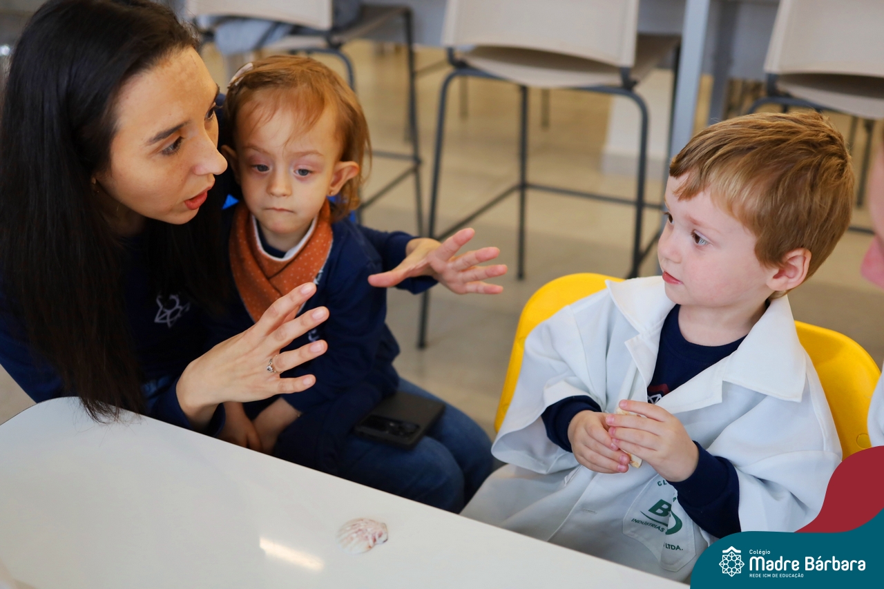 Na tarde do dia 08 de outubro, as crianças do nível 2B puderam ser cientistas no Laboratório de Ciências. Junto com os estudantes do 2°ano do Ensino Médio, vivenciaram um momento de troca de conhecimento sobre a vida marinha. Foi uma tarde de muito encantamento e descobertas sobre o fundo do mar!